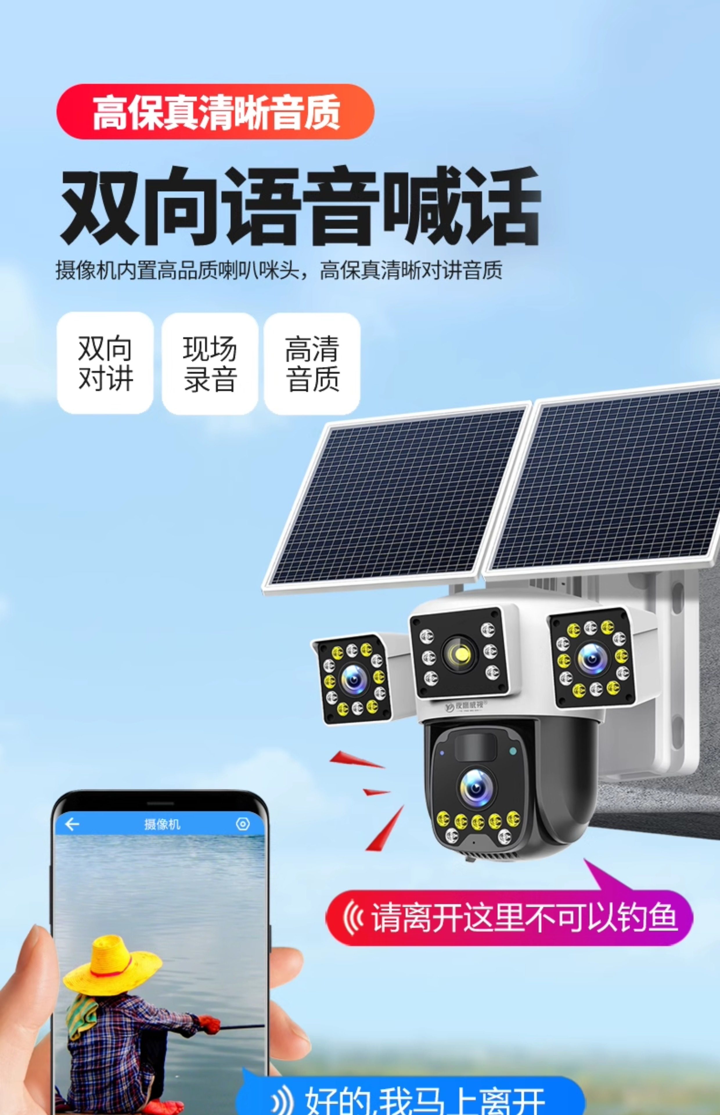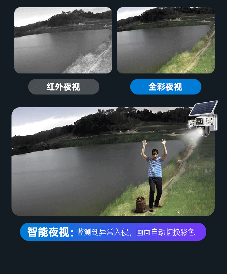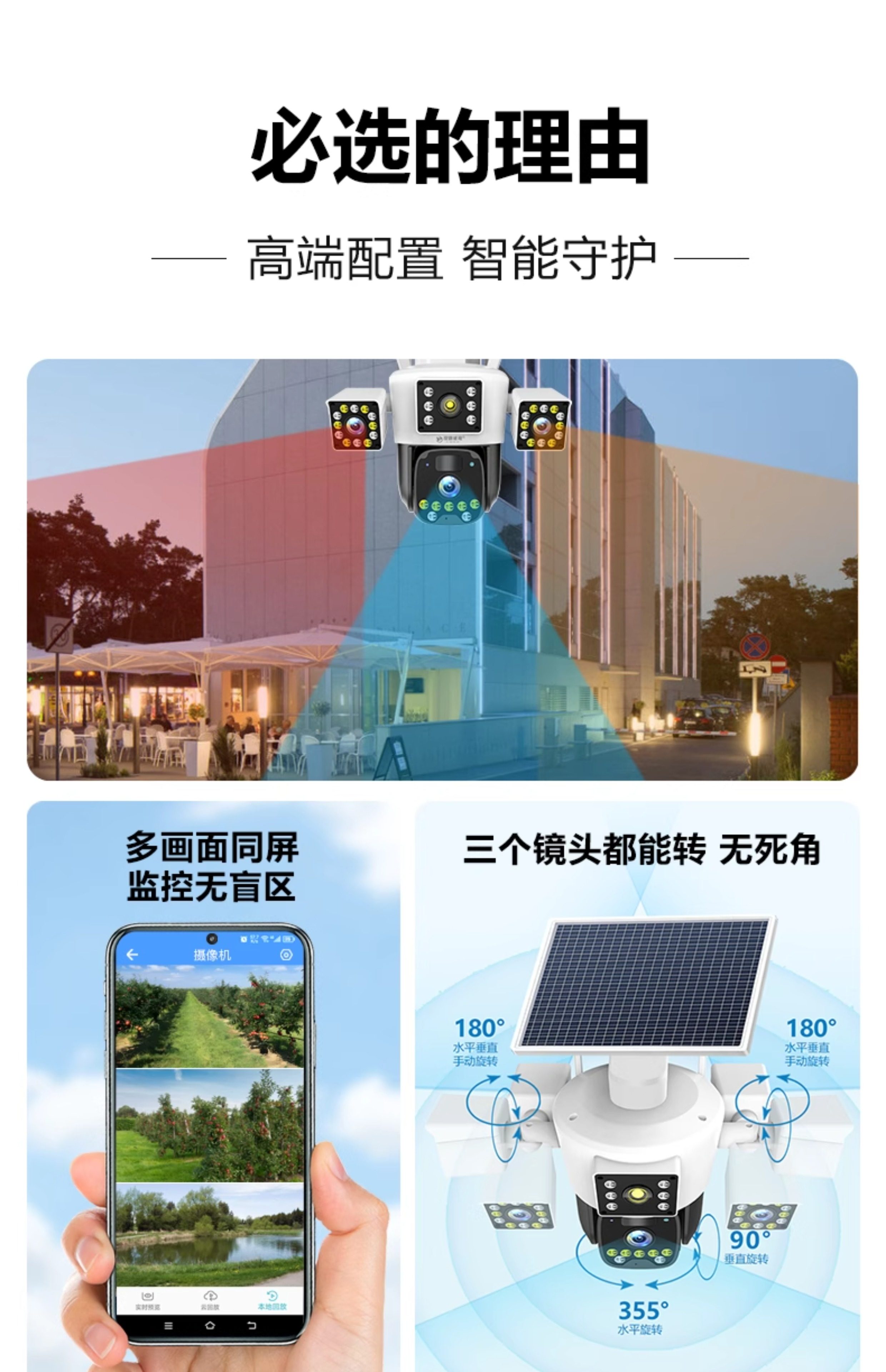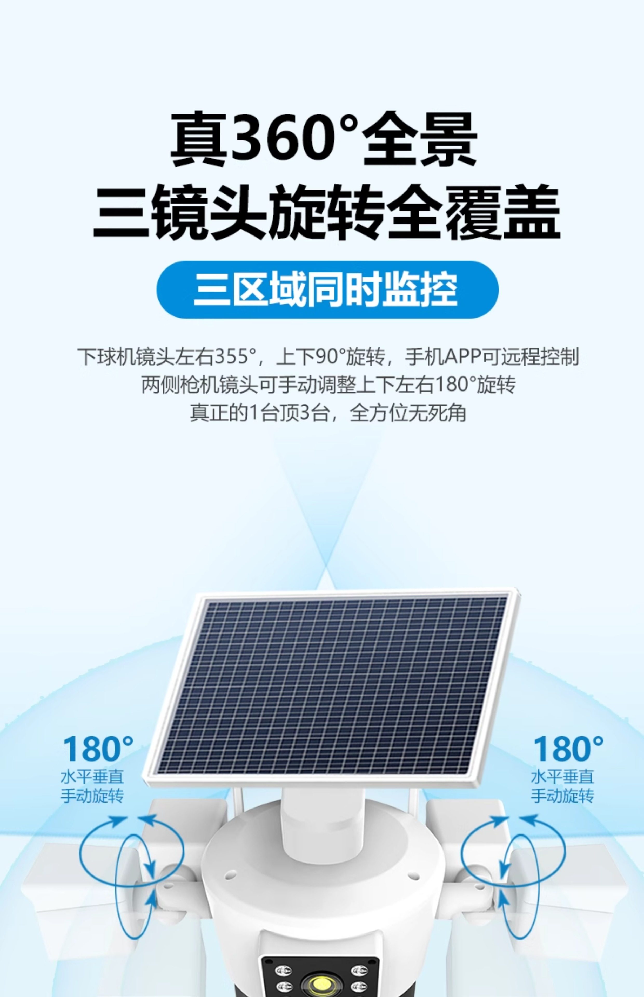 Solar Surveillance Camera 360 Degrees Without Blind Spots Mobile Phone Remote Without Network Home Outdoor Three Lenses