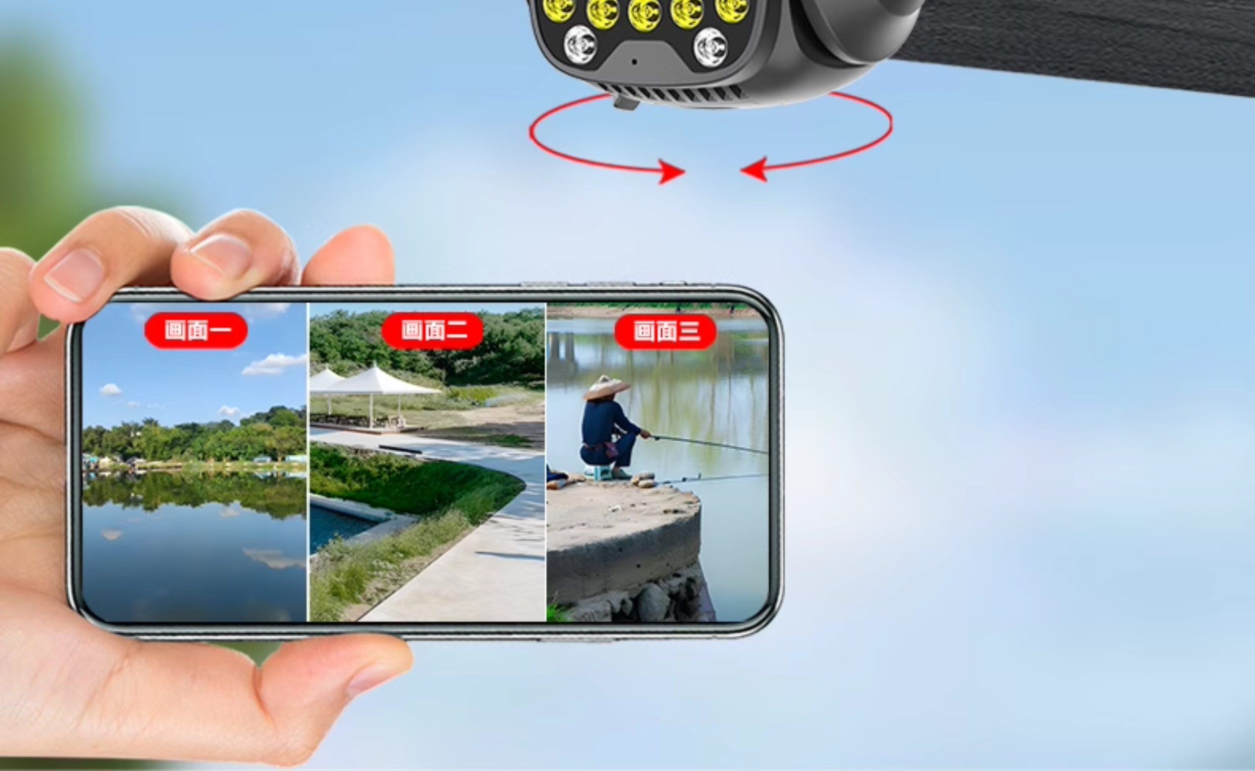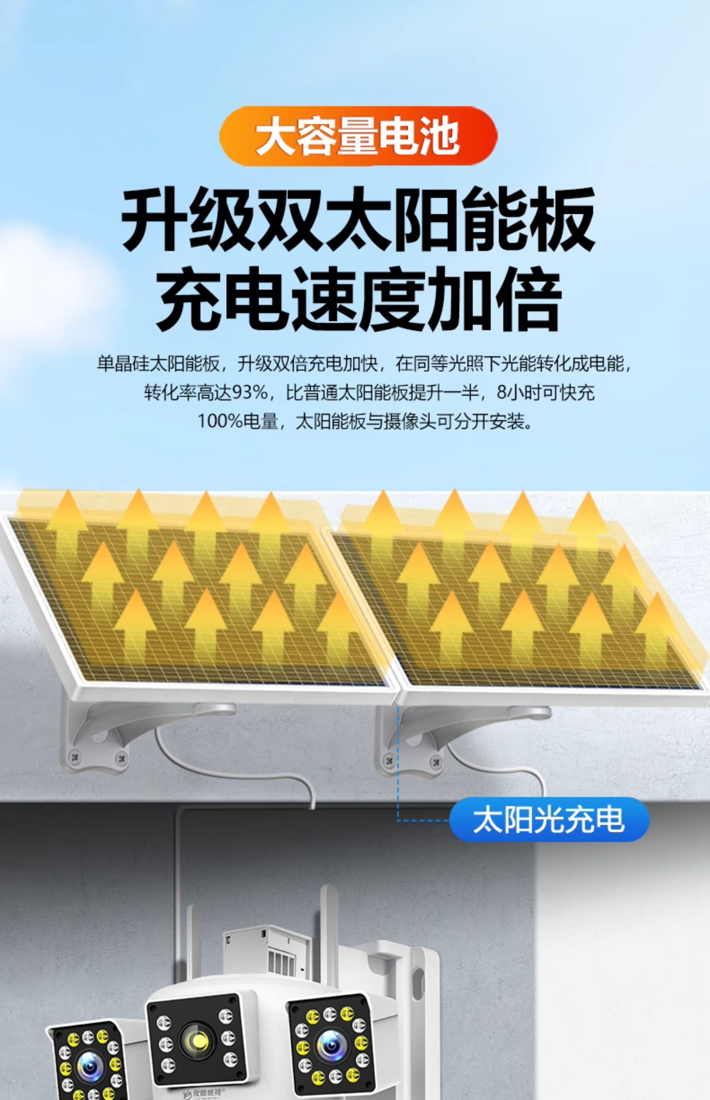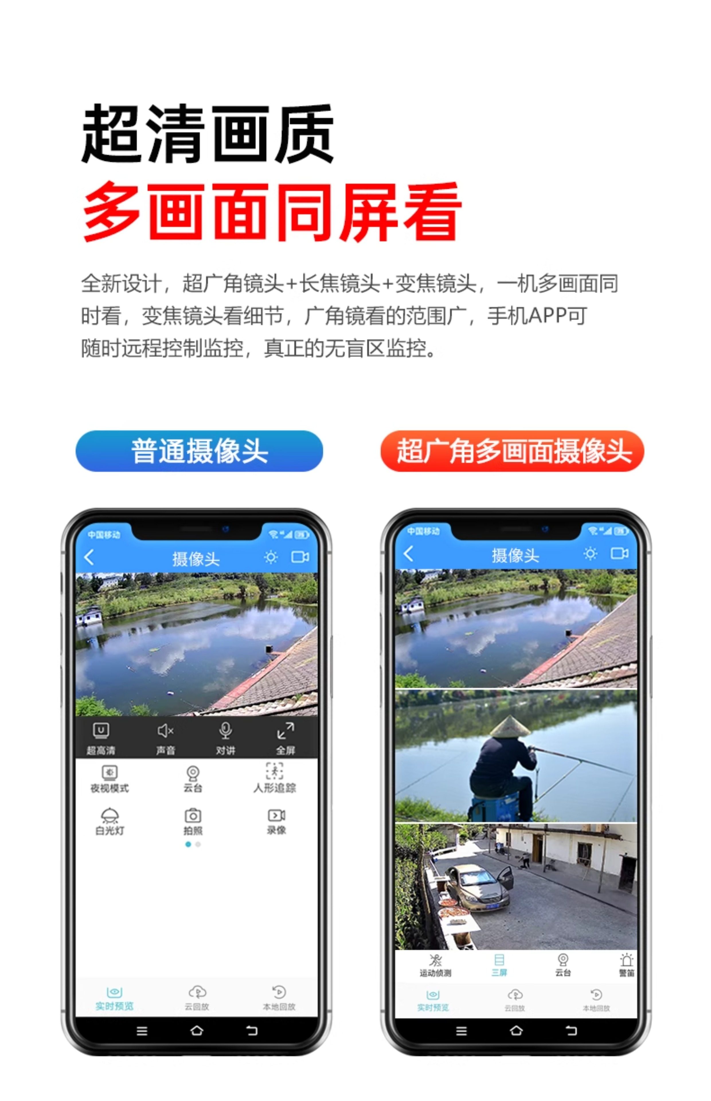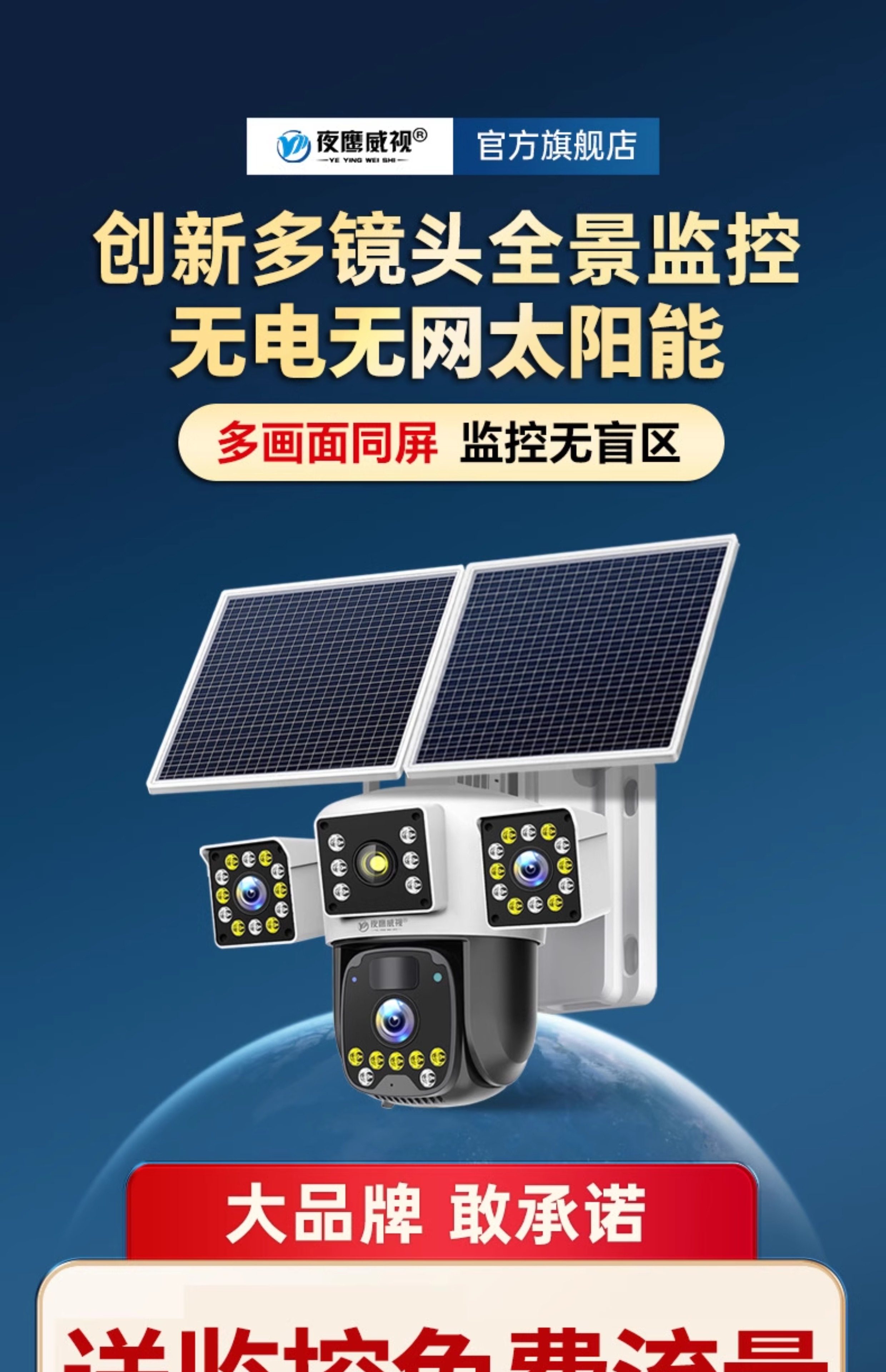 Solar Surveillance Camera 360 Degrees Without Blind Spots Mobile Phone Remote Without Network Home Outdoor Three Lenses