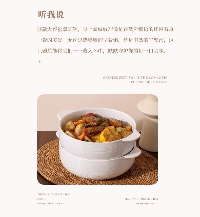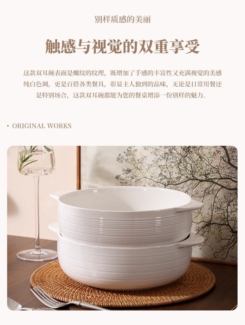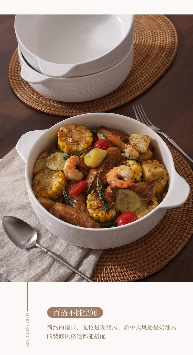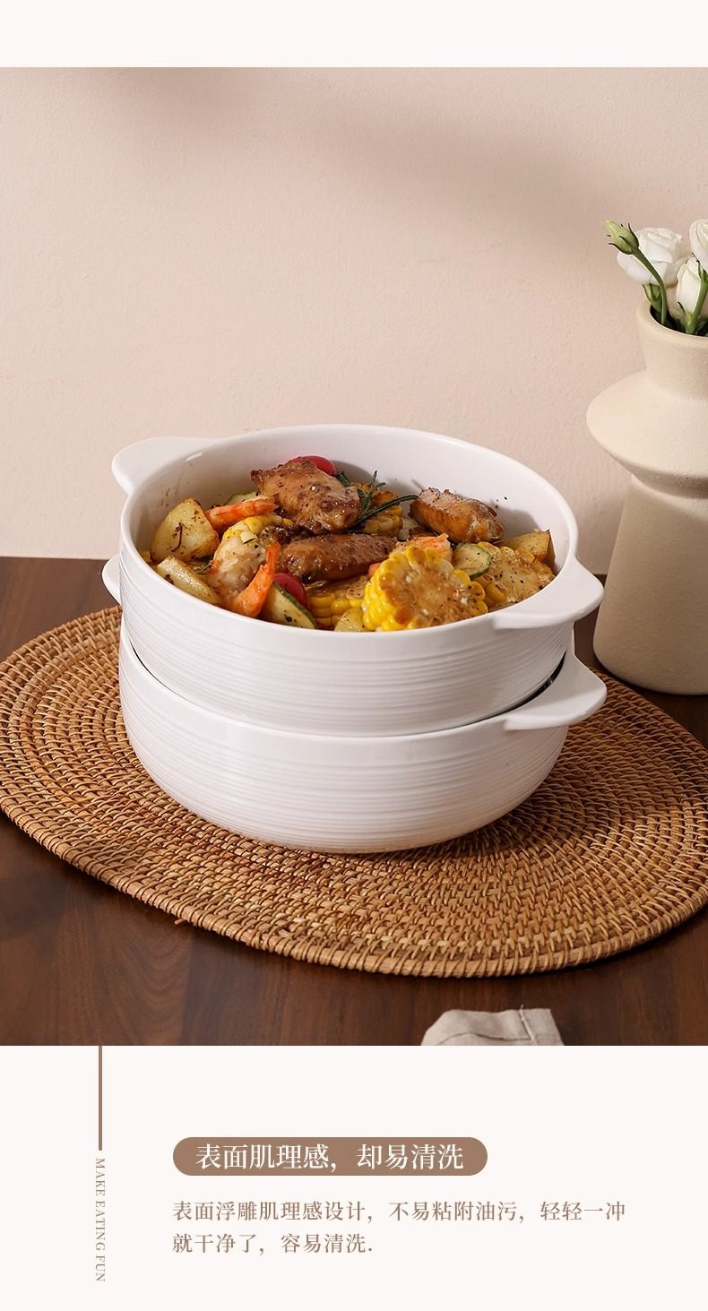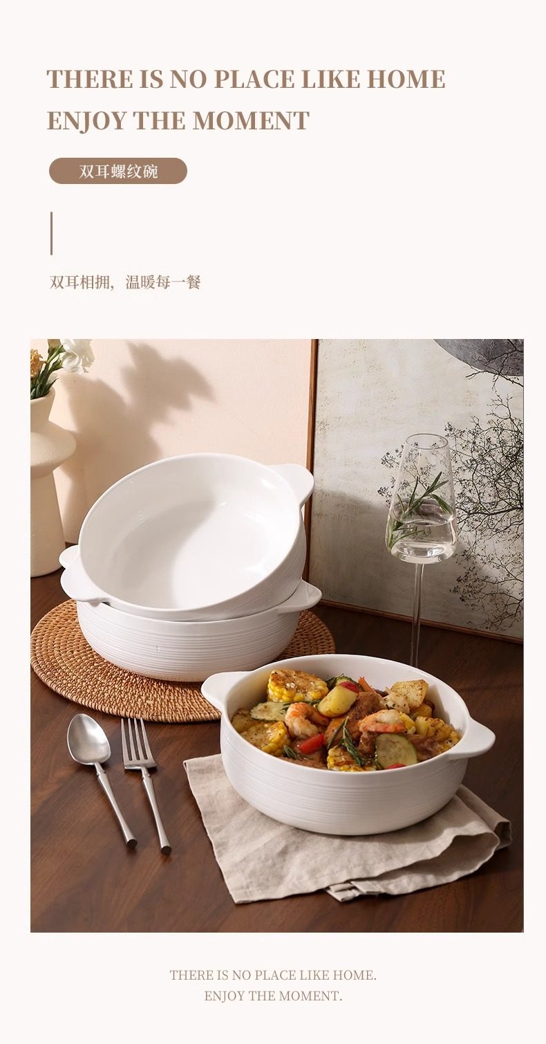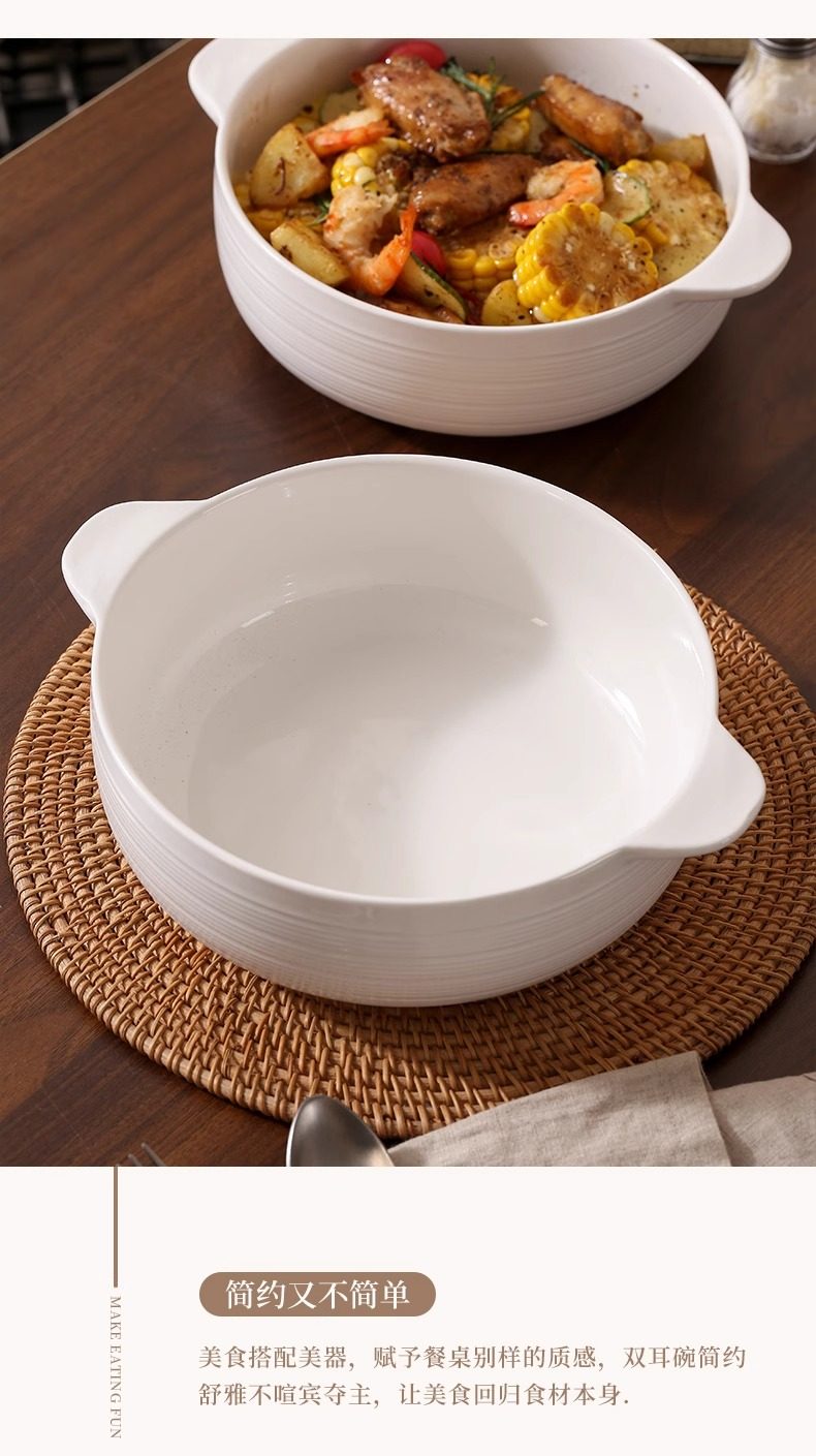 | Color Classification | 10.5inch Double-Eared Striped Soup Bowl,10.5inch Double-Eared Striped Soup Bowl (Comes with a Large Spoon),Pure White Spoon |