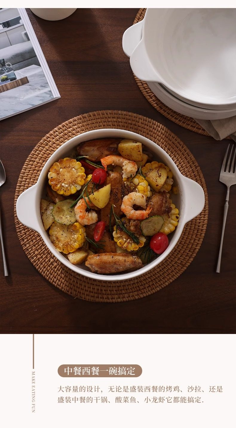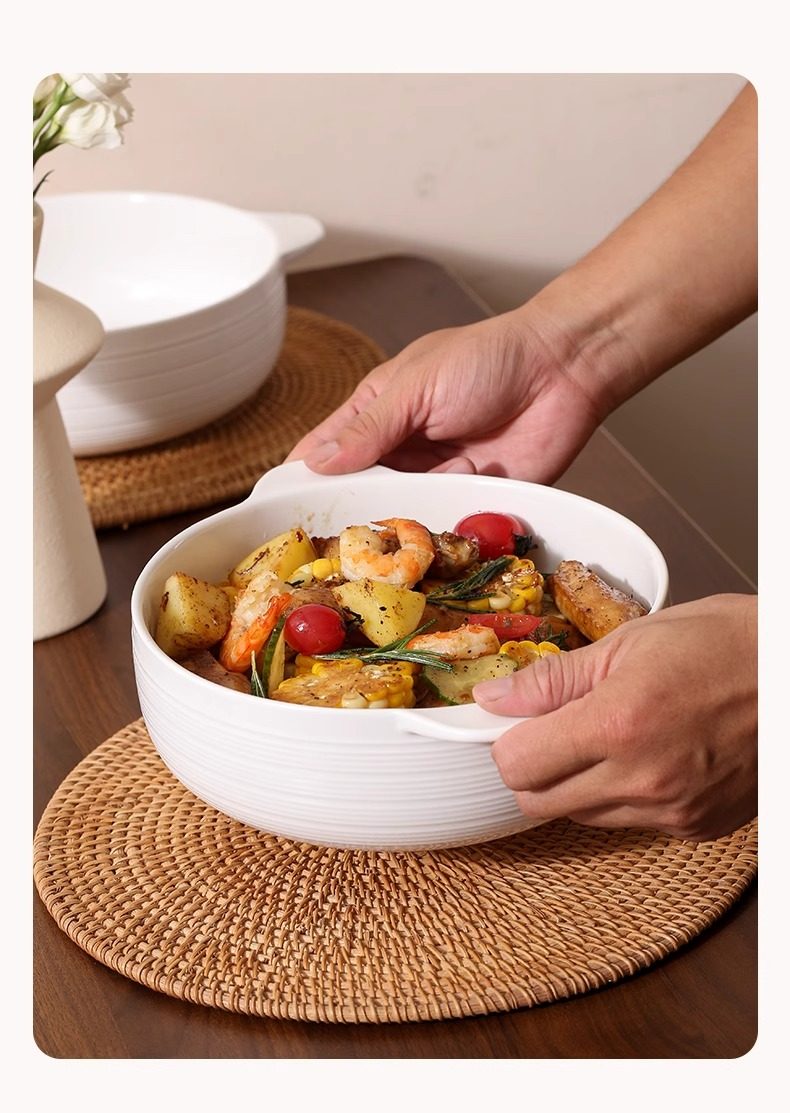 Double-Eared Soup Bowl for Home Use, 2025 New Model, Ceramic Instant Noodle Bowl, Large Capacity Baking Bowl, High-Value Soup Basin, Underglaze Color Tableware