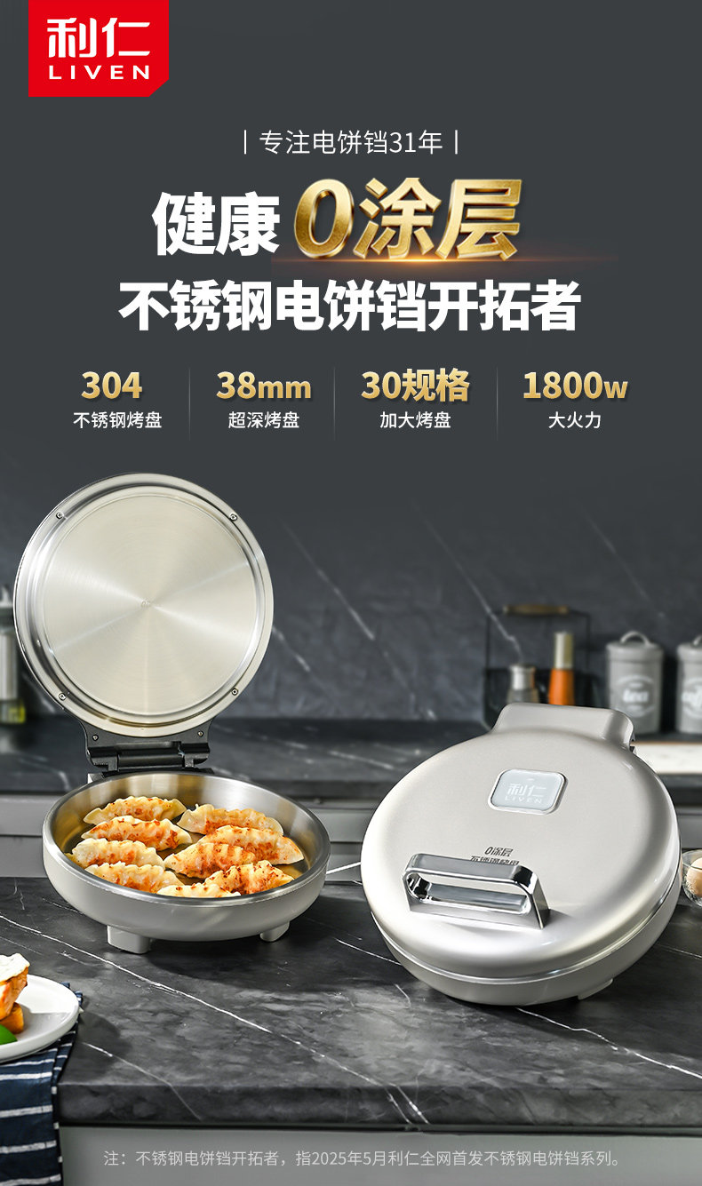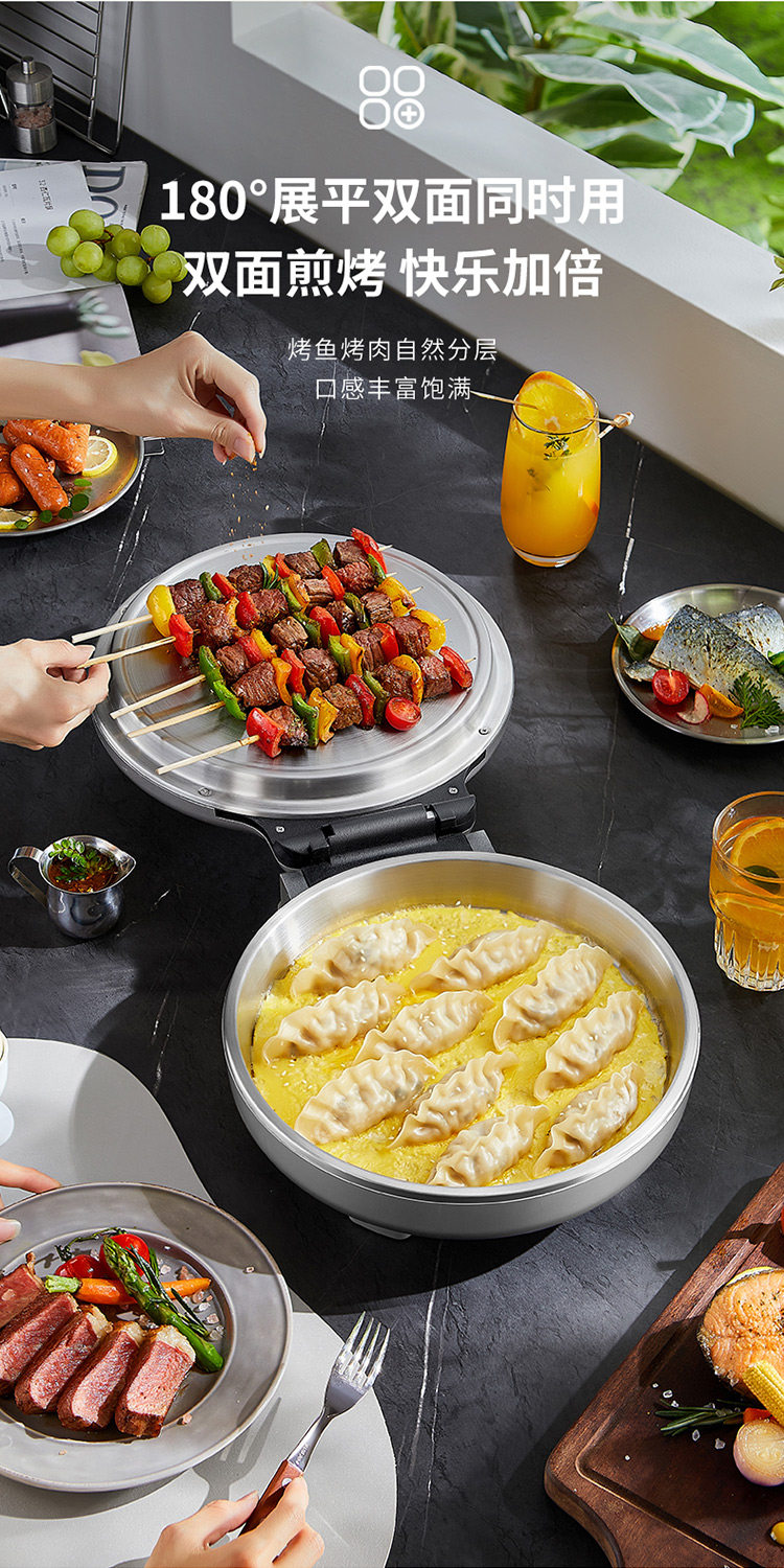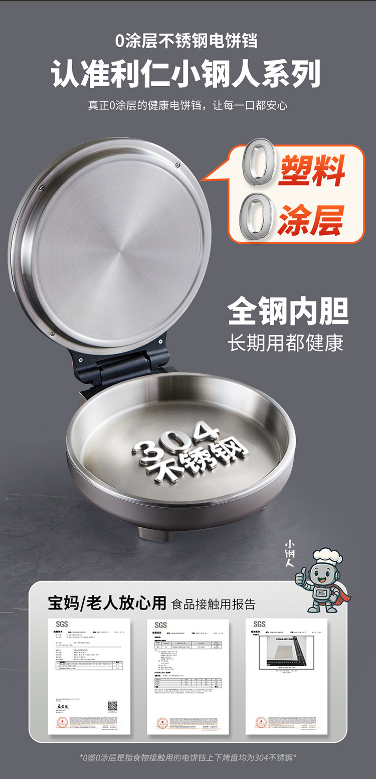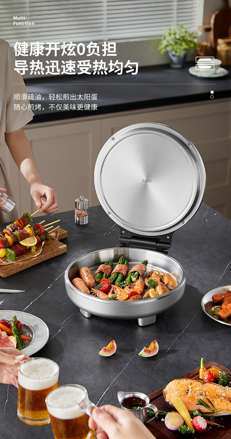 Liren Xiaogangren Stainless Steel Electric Griddle for Home Use, 0-Coating, Double-Sided Heating, Multifunctional Electric Frying Pan, New Model for Making Pancakes