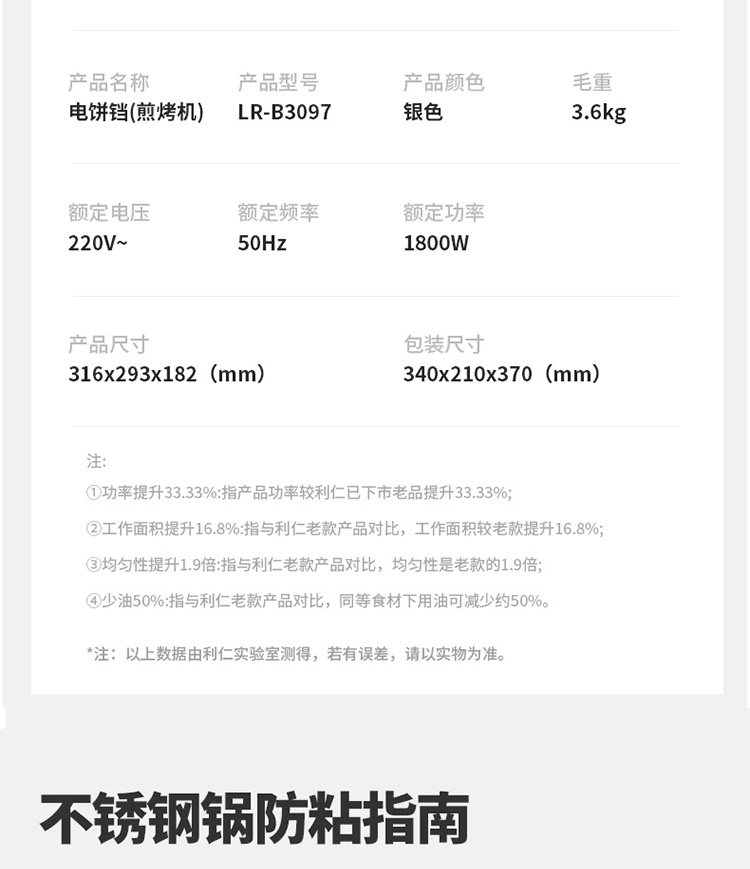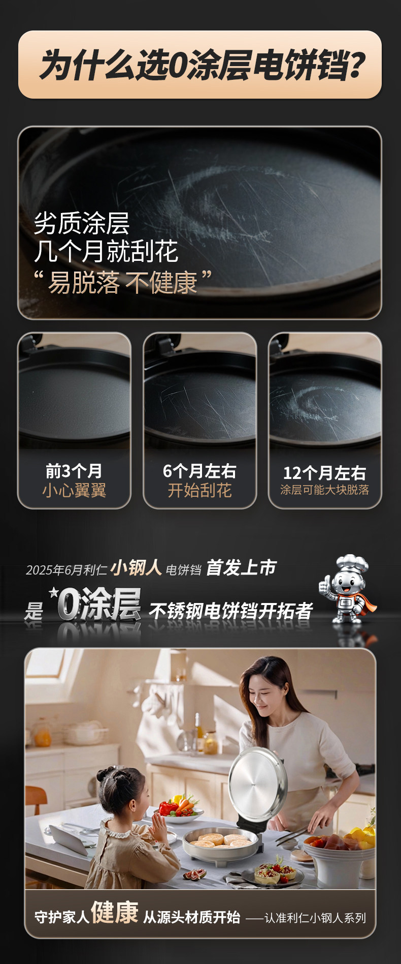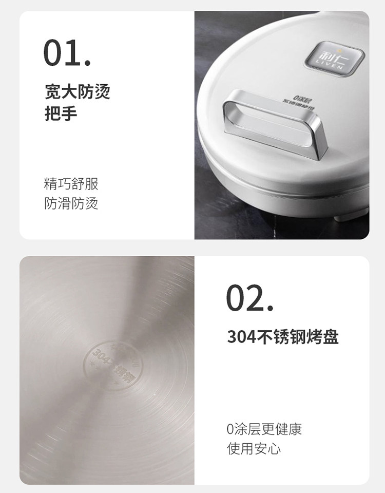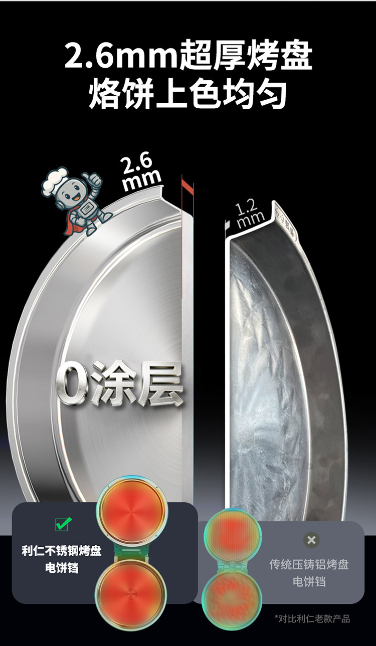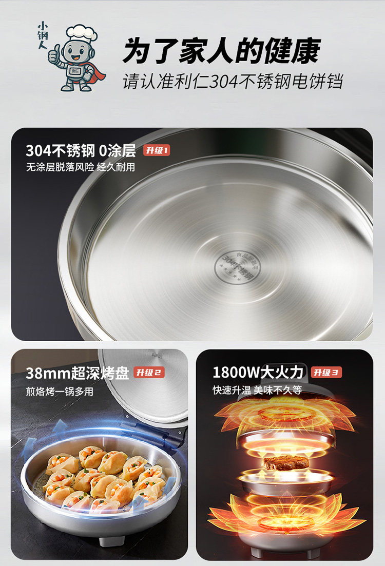 Liren Xiaogangren Stainless Steel Electric Griddle for Home Use, 0-Coating, Double-Sided Heating, Multifunctional Electric Frying Pan, New Model for Making Pancakes