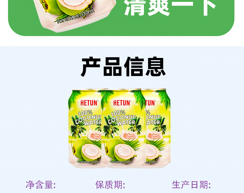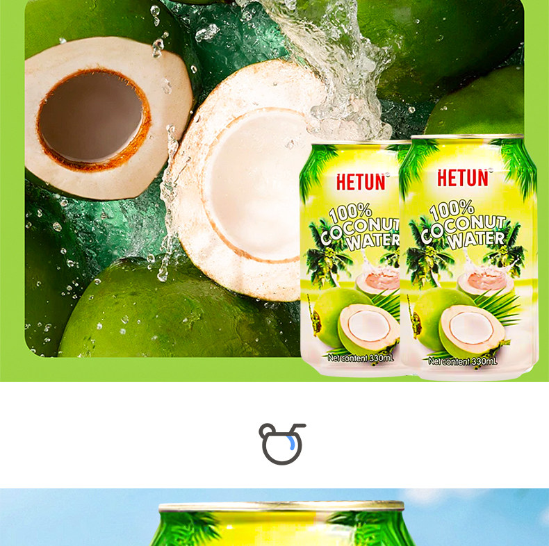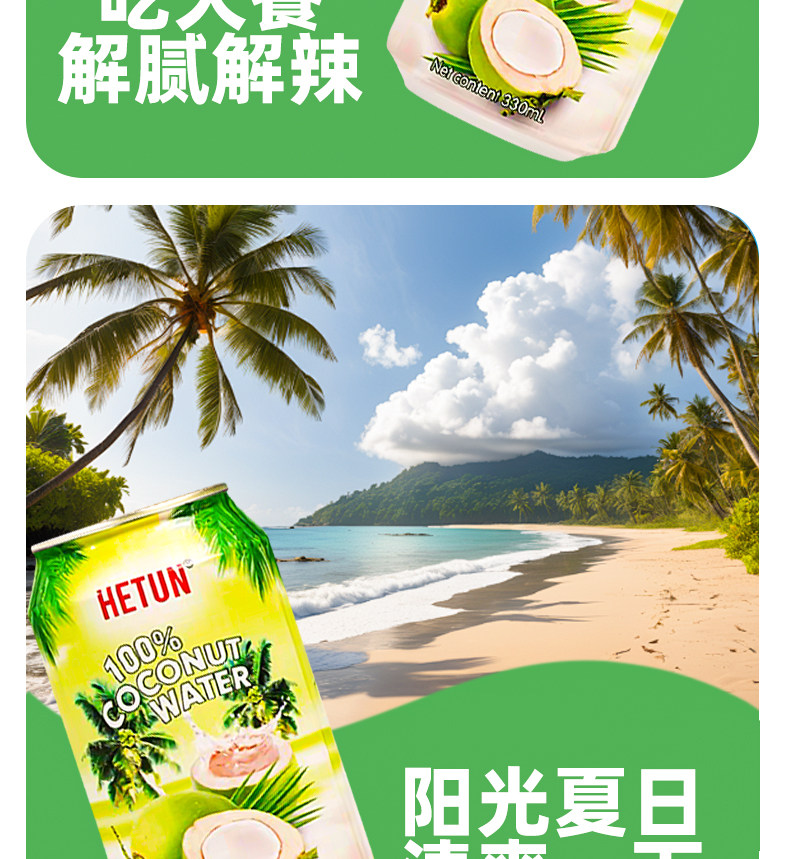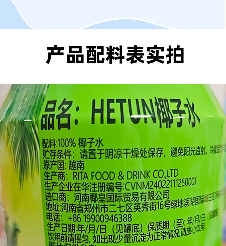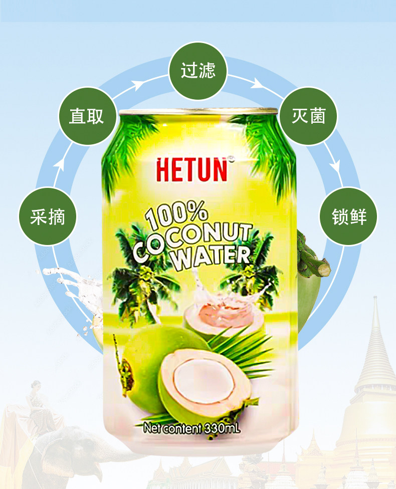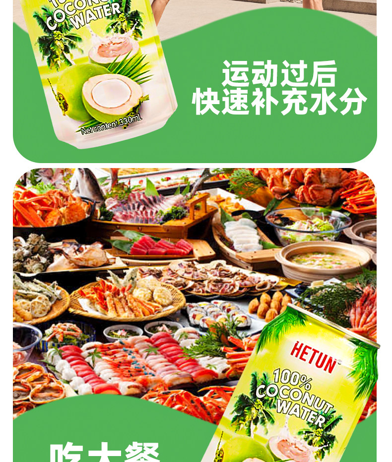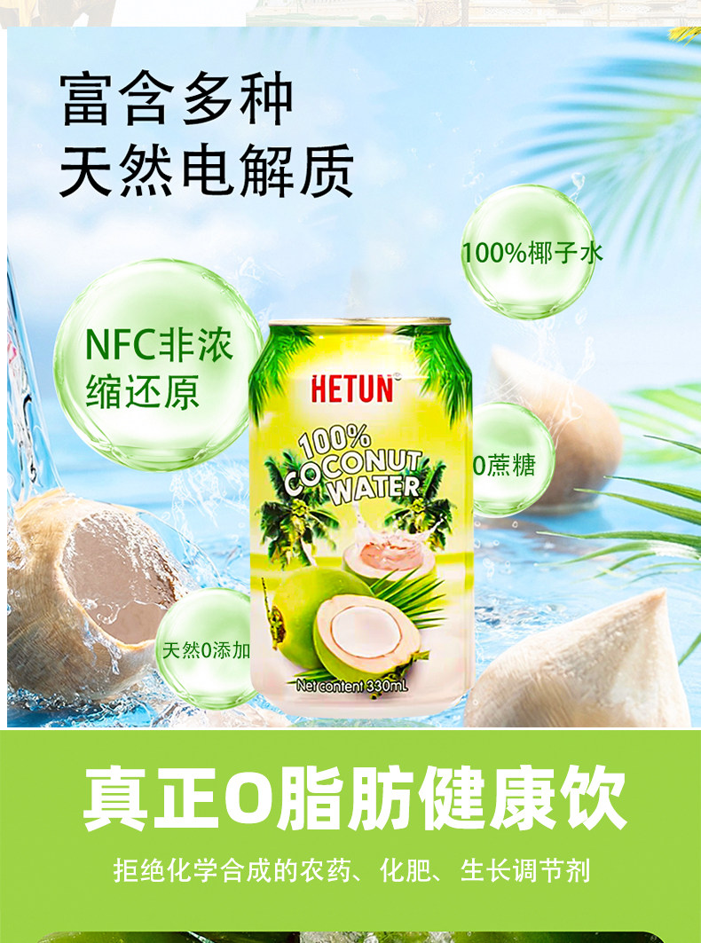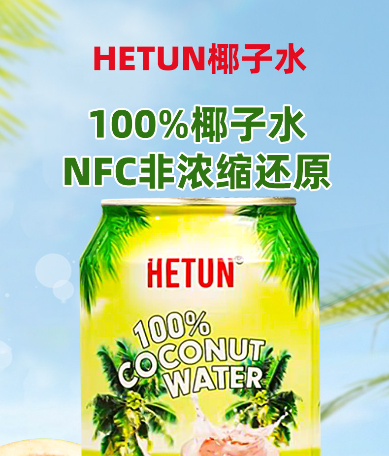 Hetun Vietnam Imported 100% Coconut Water Is Rich in Natural Electrolytes, Nfc Coconut Juice, Coconut Green Water, 0-Fat Beverage