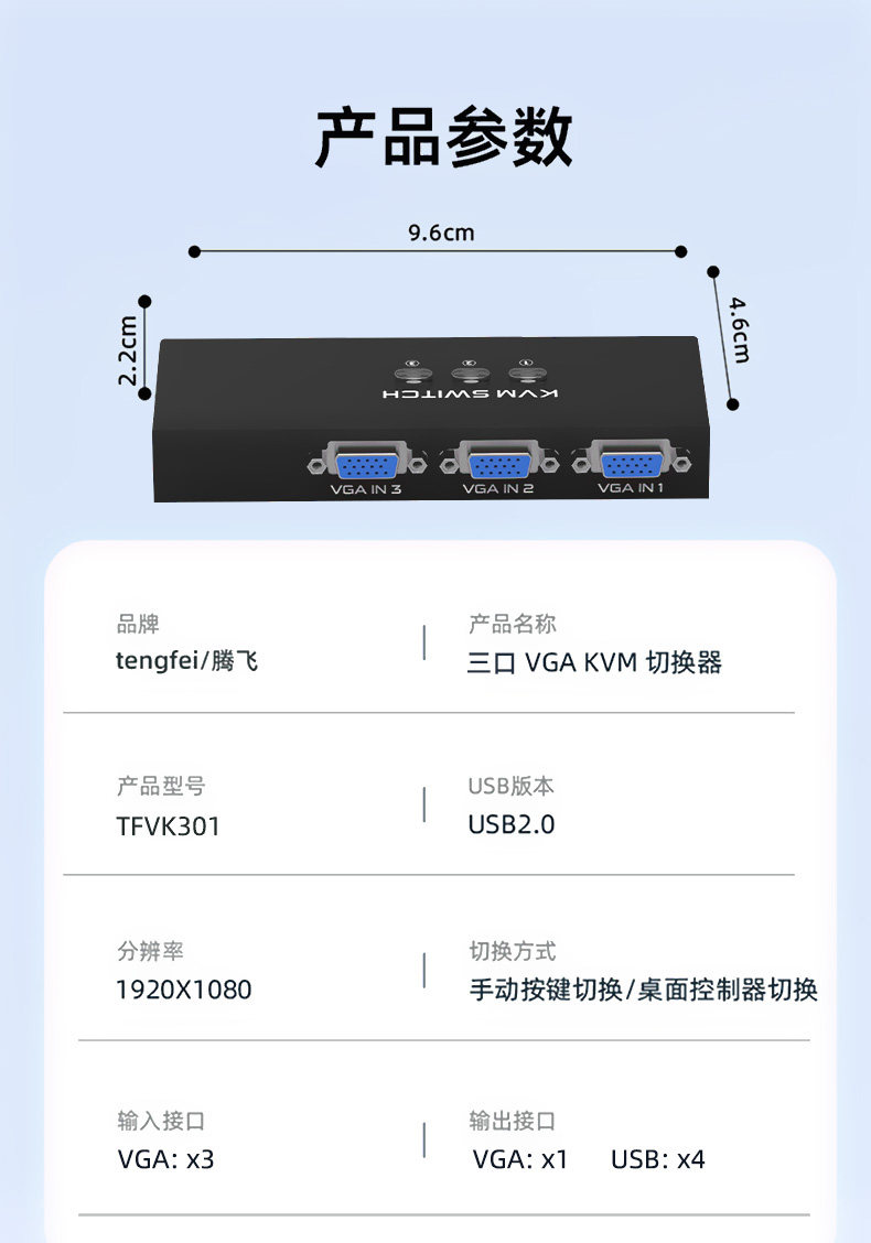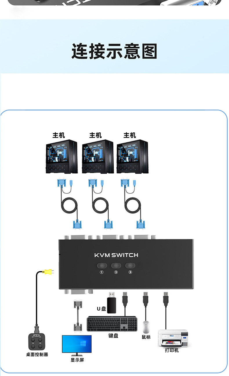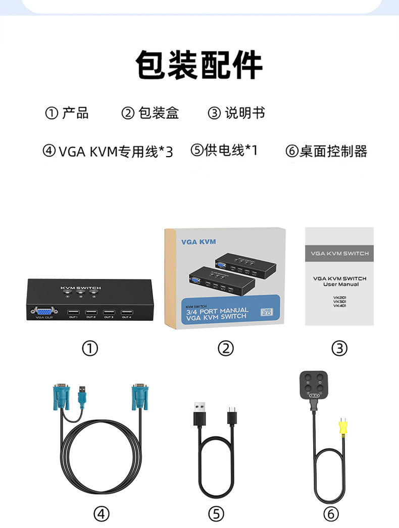 | Color Classification | [3 in and 1 Out] Button/Desktop Control Switching (with 3 Kvm Cables Desktop Controller) |