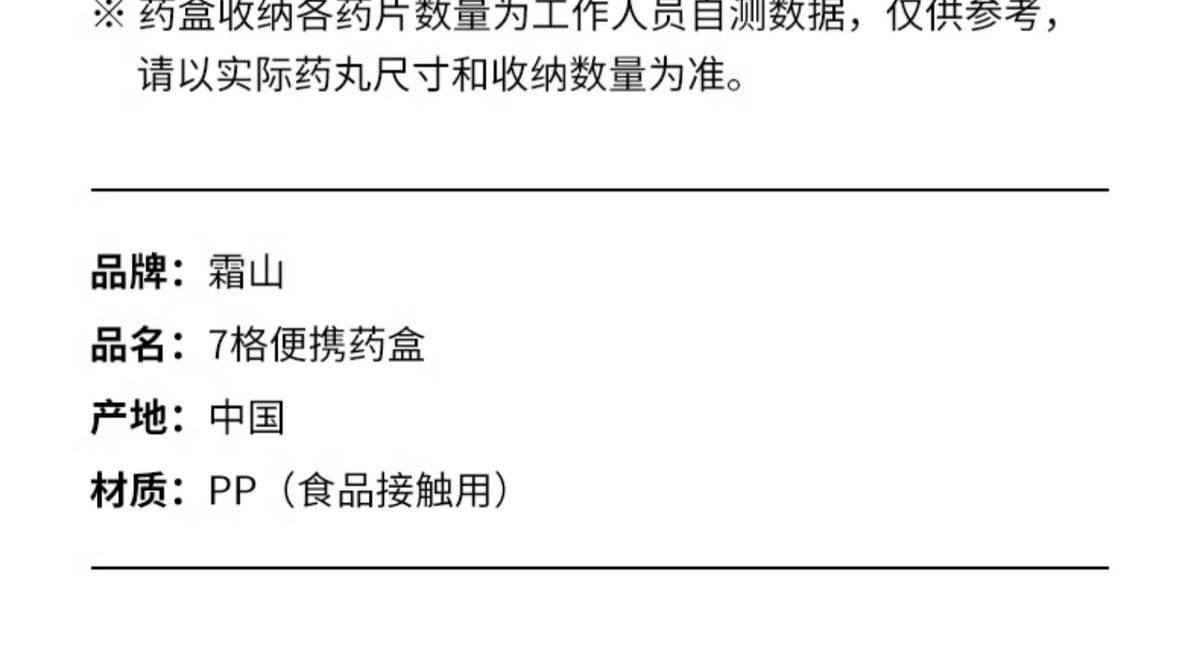 Shuangshan Portable Pill Box Seven Days a Week Packing Box Pill Capsule Classification Box Mini Portable Medication Storage Box