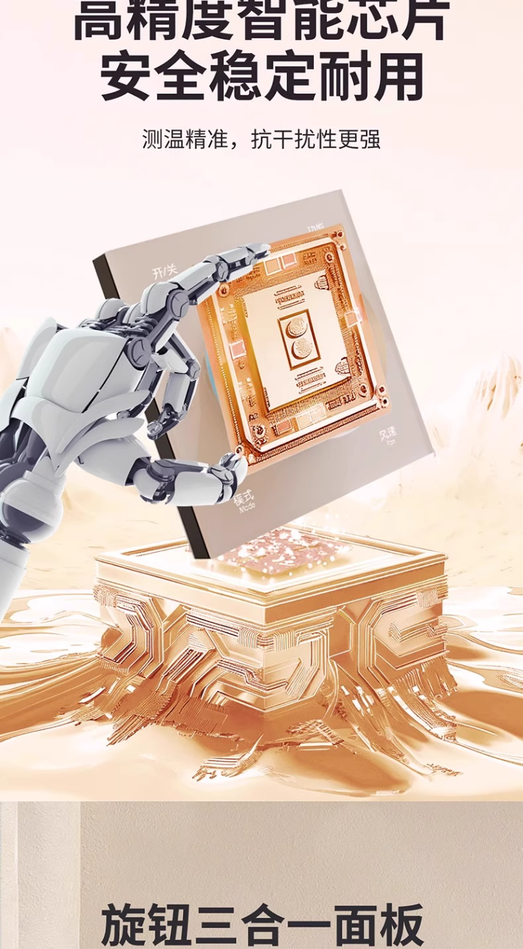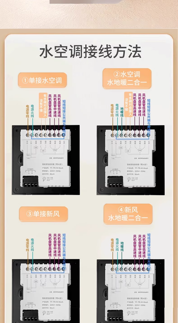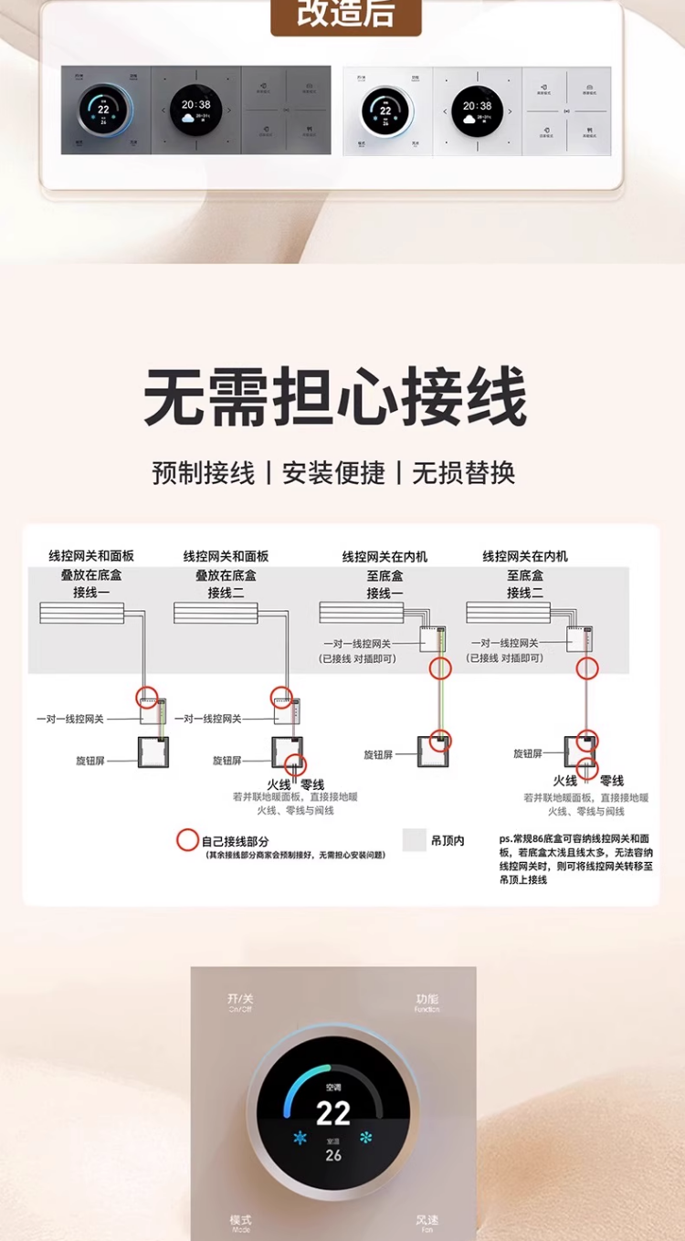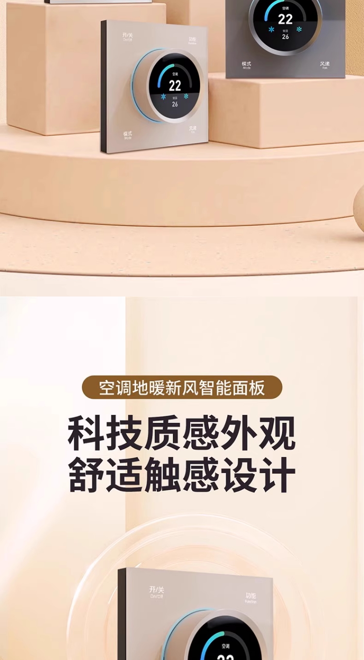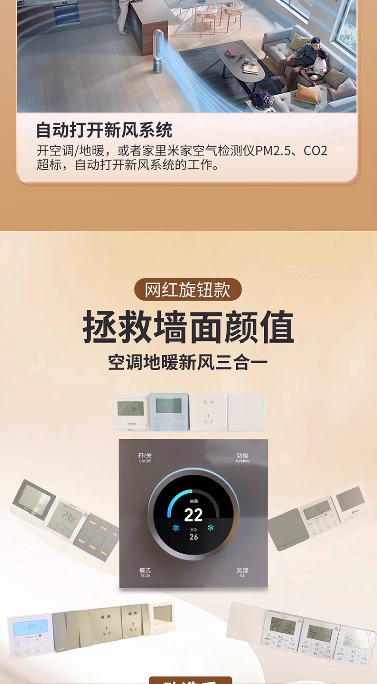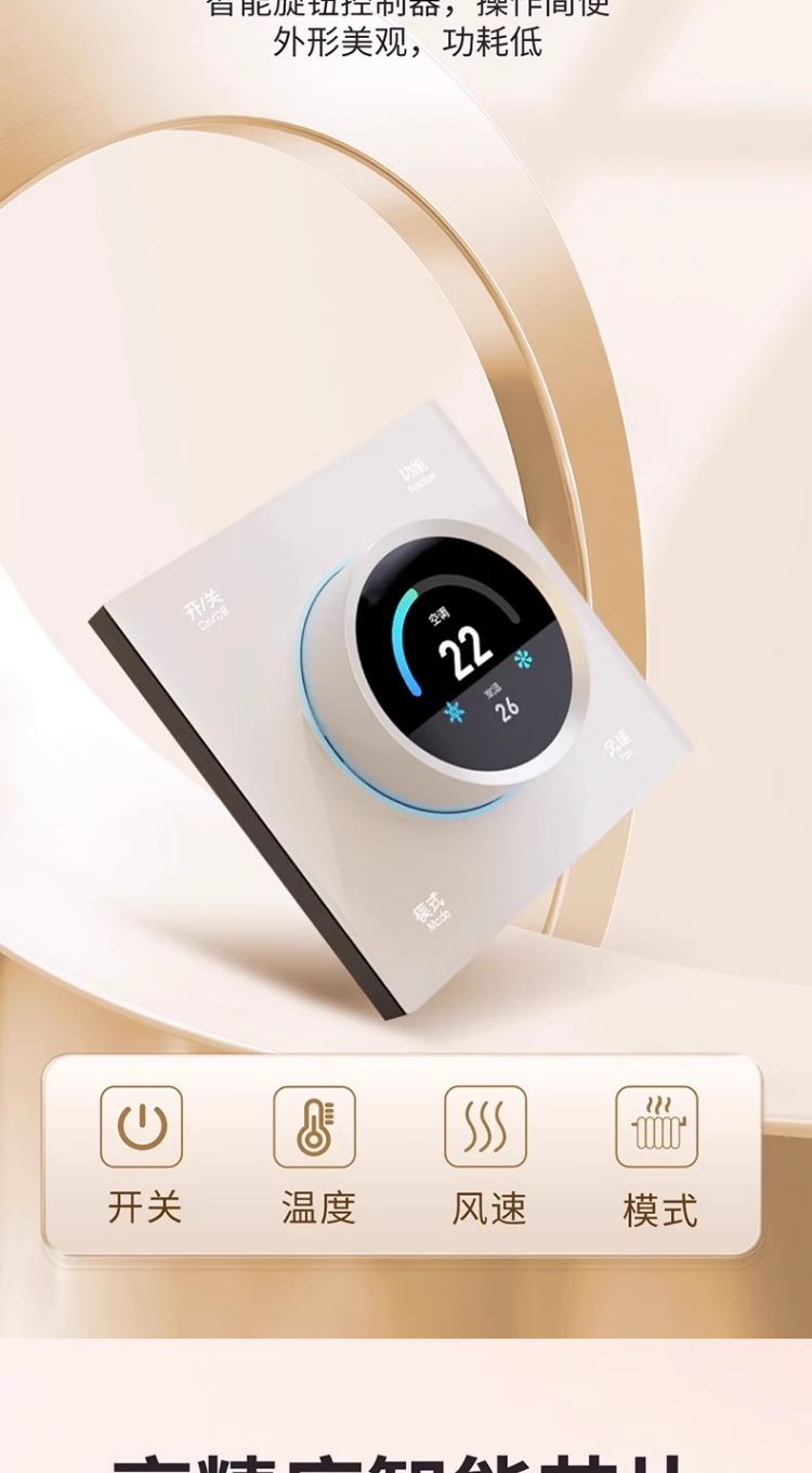 Smart Panel with Knob Screen, Temperature Controller, Bluetooth Mesh 2.0, Central Air Conditioning, Floor Heating, Fresh Air, Three-In-One