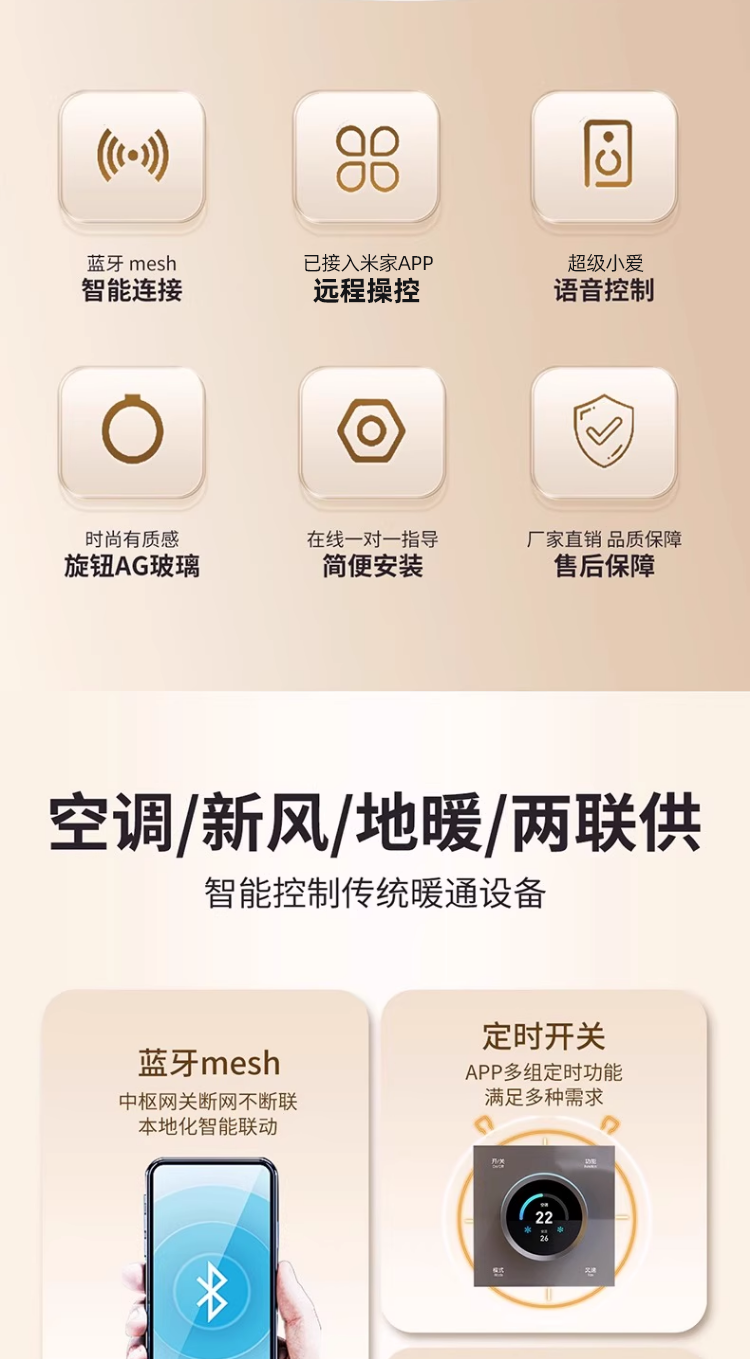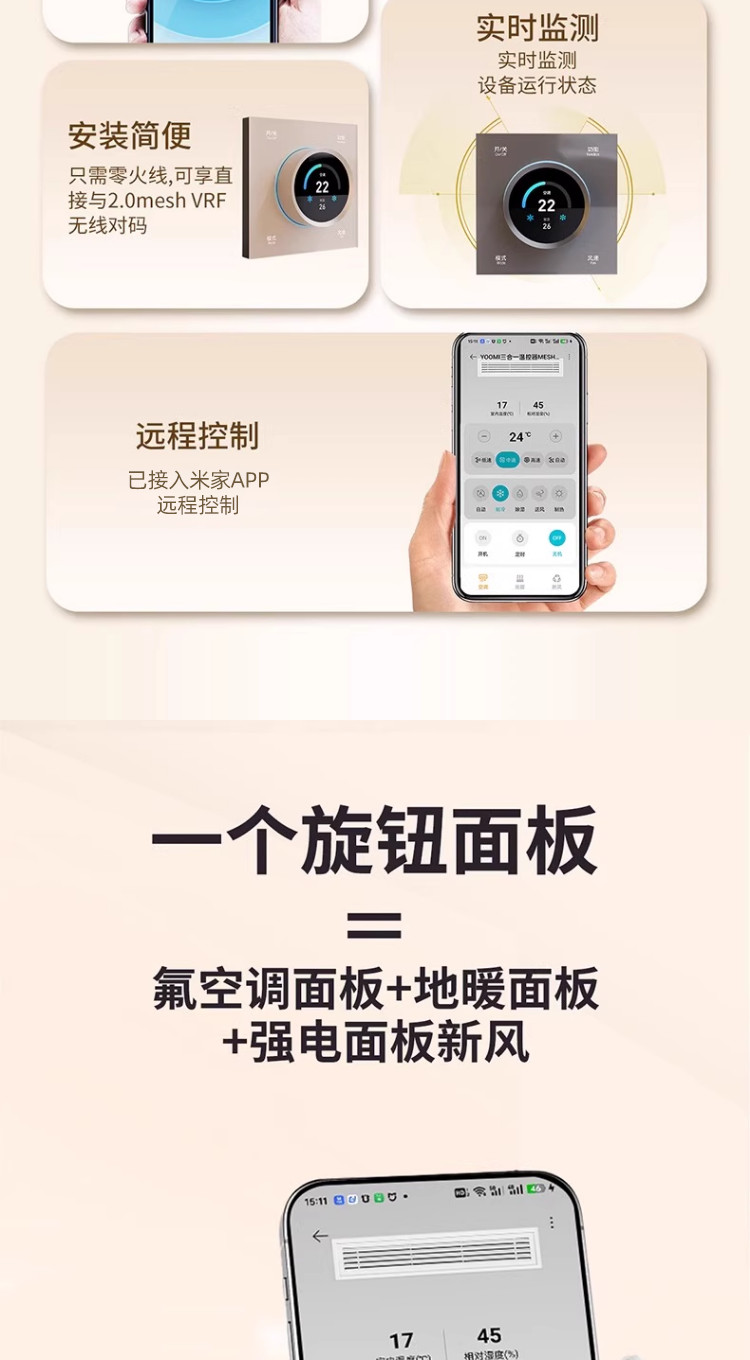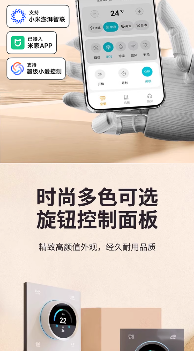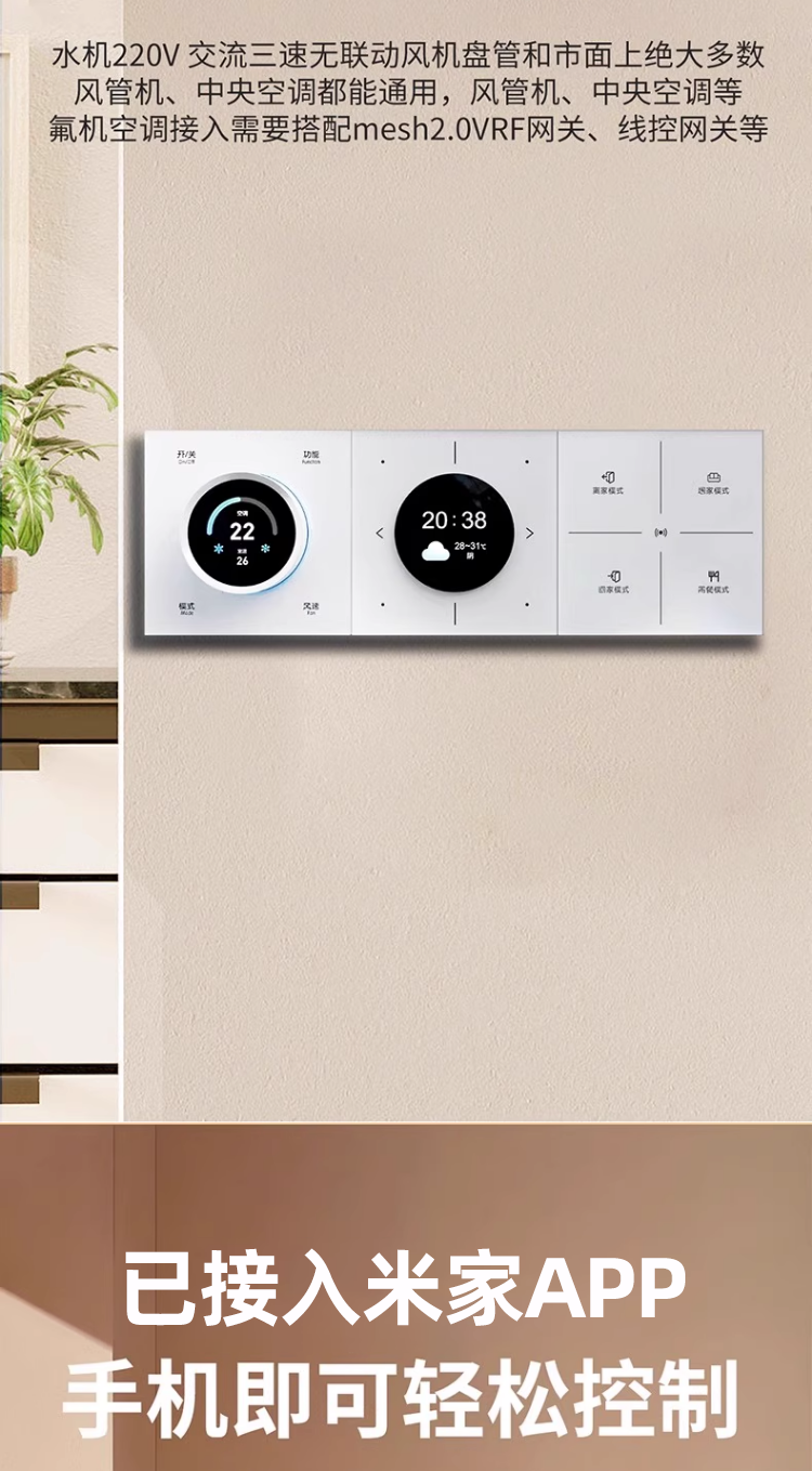 | Color Classification | Multi-Split Systems Are Compatible with the Latest Vrf and Knob-Based [Local Wireless Pairing] Technology. One Vrf Unit Can Replace Multiple Smaller Indoor Units. [Contact Customer Service for Details.],--The Knob of Ag Glass Is the Real Mesh2.0--,[Single Panel] Already Connected to Mijia App Mesh Version 2.0 (Ag Glass Model) 3-in-1 Knob (Starry Sky Gray),【Single Panel】Mijia App Connected Mesh 2.0 Version (Ag Glass Model) 3-in-1 Knob (Pearl White),[Single Panel] Already Connected to Mijia App Mesh Version 2.0 (Ag Glass Model) 3-in-1 Knob (Cream Gold),Buy the Kit and Directly Replace Your Existing Panel,【Bundle】Mijia App Connected Mesh 2.0 Version (Ag Glass Edition) 3-in-1 Knob (Space Gray) + Wired Control Gateway,【Bundle】Mijia App Connected Mesh 2.0 Version (Ag Glass Edition) 3-in-1 Knob (Pearl White) + Wired Control Gateway,【Bundle】Mijia App Connected Mesh 2.0 Version (Ag Glass Edition) 3-in-1 Knob (Cream Gold) + Wired Control Gateway,Today's Flash Mesh2.0 Vrf [4 Internal Units],Today's Flash Mesh2.0 Vrf [5 Internal Units],Today's Flash Mesh2.0 Vrf [6 Internal Units],[Single Panel] Already Connected to Mijia App Mesh Version 2.0 (Ag Glass Model) 3-in-1 Knob (Starry Sky Gray) 1,[Single Panel] Already Connected to Mijia App Mesh Version 2.0 (Ag Glass Model) 3-in-1 Knob (Pearl White) 1,[Single Panel] Already Connected to Mijia App Mesh Version 2.0 (Ag Glass Model) 3-in-1 Knob (Cream Gold)) 1,【Single Panel】Mijia App Connected, Home Mesh 2.0 Version (Ag Glass Model), 3-in-1 Knob (Space Gray) X 2,[Single Panel] Already Connected to Mijia App Mesh Version 2.0 (Ag Glass Model) 3-in-1 Knob (Pearl White) 2,[Single Panel] Already Connected to Mijia App Mesh Version 2.0 (Ag Glass Model) 3-in-1 Knob (Cream Gold)) 2,[Single Panel] Already Connected to Mijia App Mesh Version 2.0 (Ag Glass Model) 3-in-1 Knob (Starry Sky Gray) 3,[Single Panel] Already Connected to Mijia App Mesh Version 2.0 (Ag Glass Model) 3-in-1 Knob (Pearl White) 3,[Single Panel] Already Connected to Mijia App Mesh Version 2.0 (Ag Glass Model) 3-in-1 Knob (Cream Gold)) 3,Today's Flash Mesh2.0Vrf [6 Internal Units],1 |