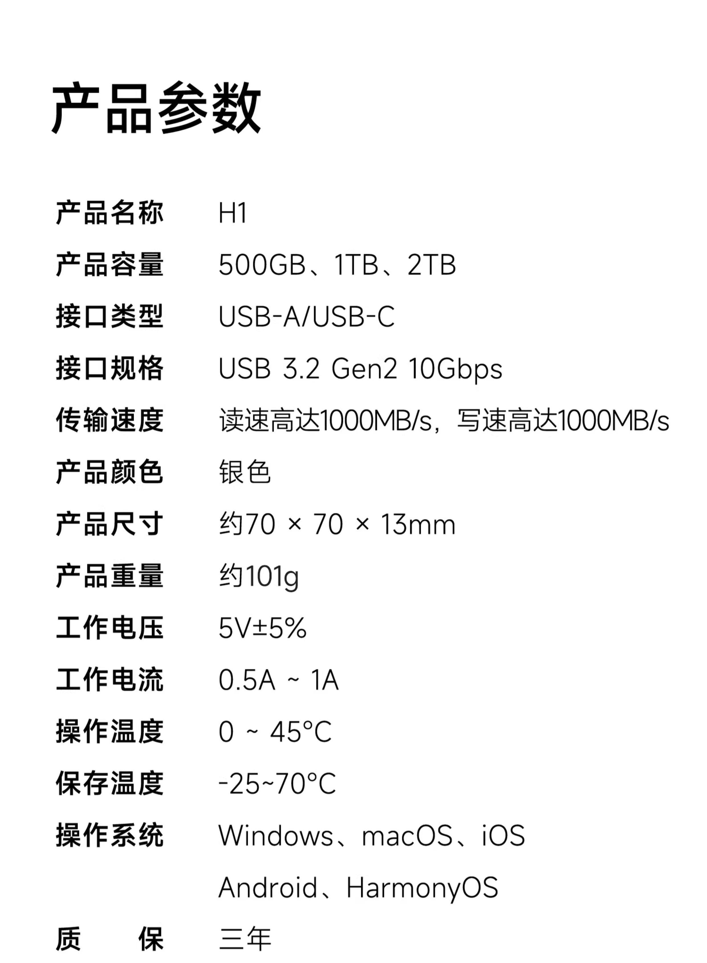 | Transfer Speed | 1000-2000MB/s |