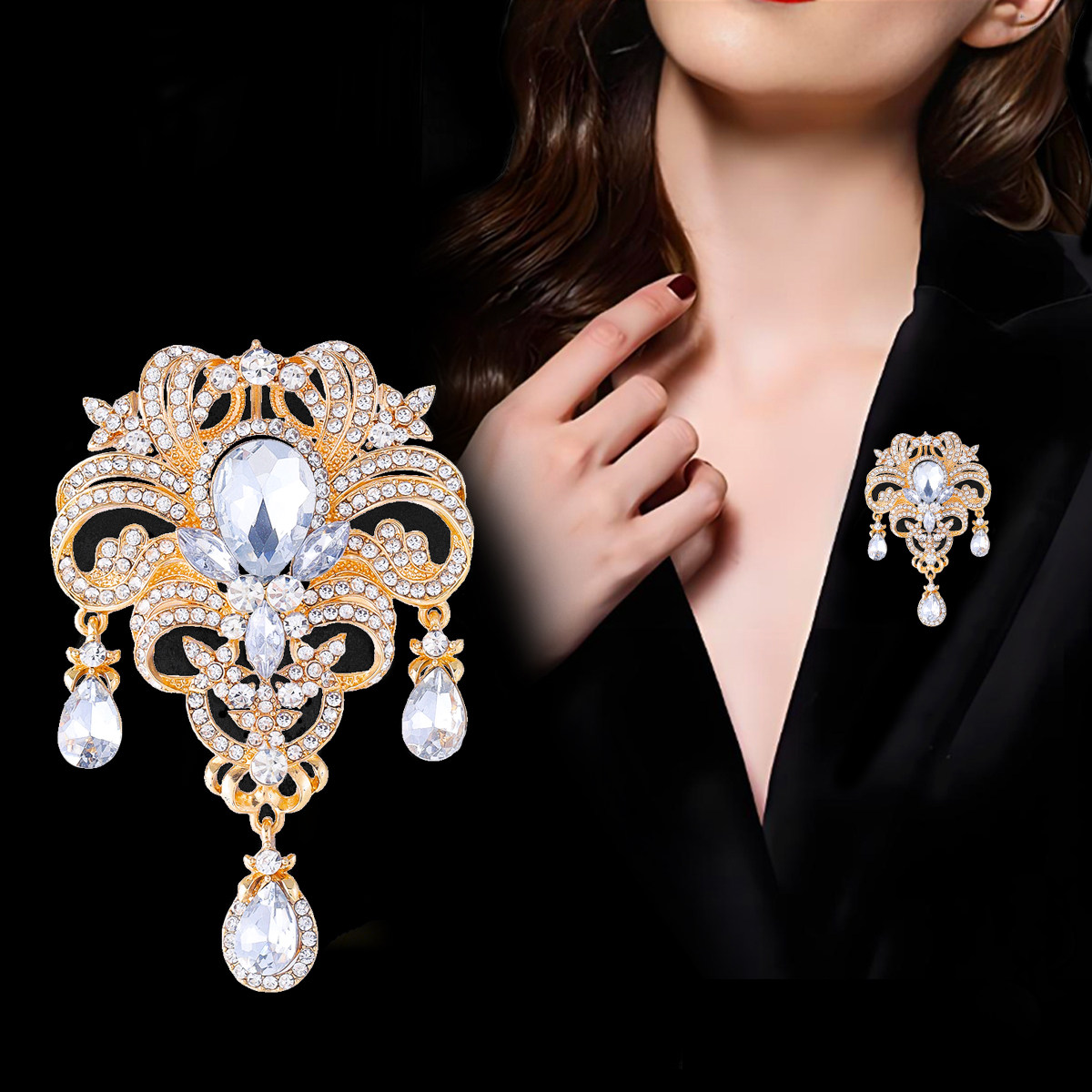 European and American Retro Elegant Crystal Glass Brooch, High-End Banquet Dress Accessories, Brooch, Corsage, Anti-Exposure Jewelry