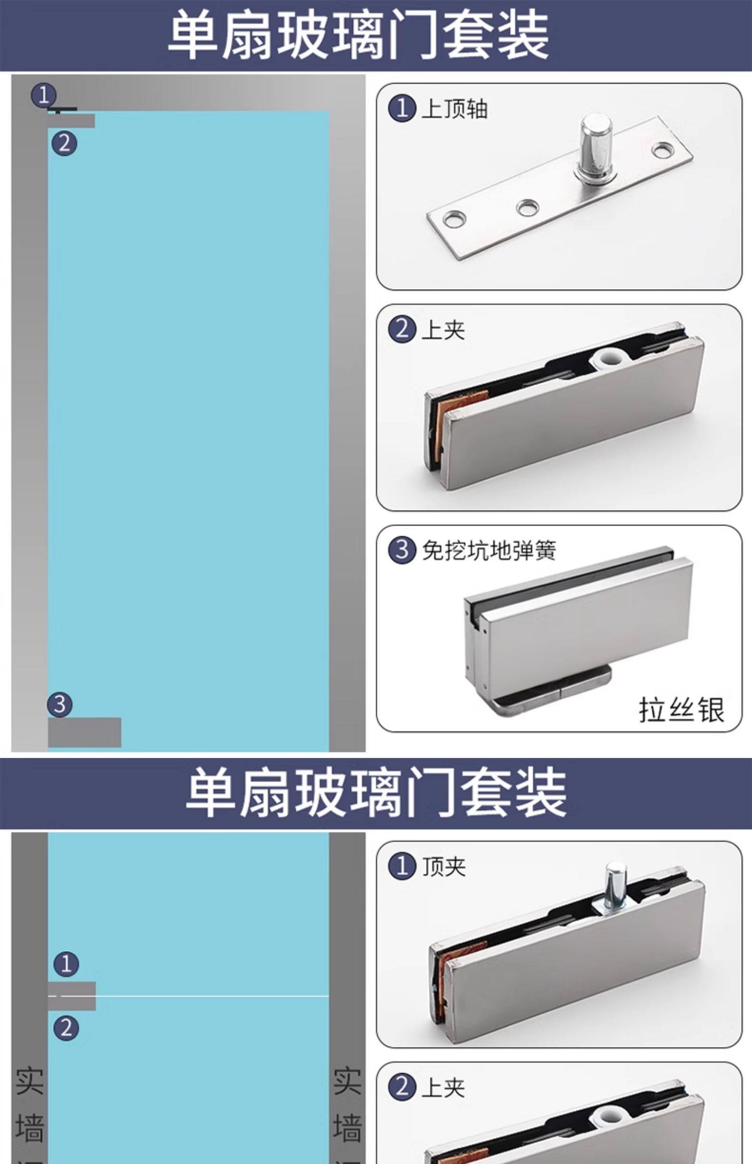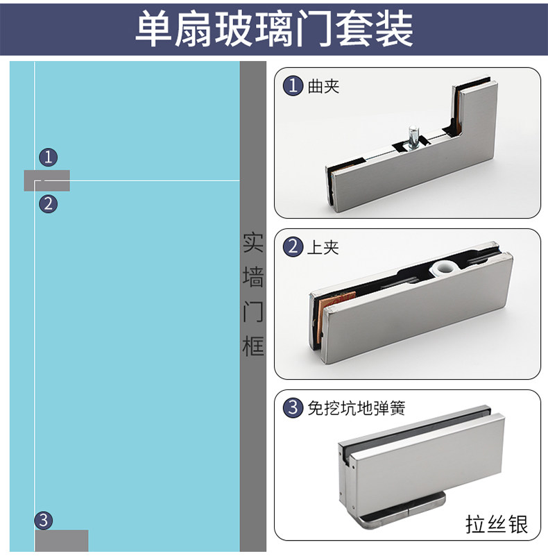 No-Dig Floor Spring Frameless Glass Door Hidden Floor Spring Hydraulic Door Clamp Ceiling and Floor Hinge Black