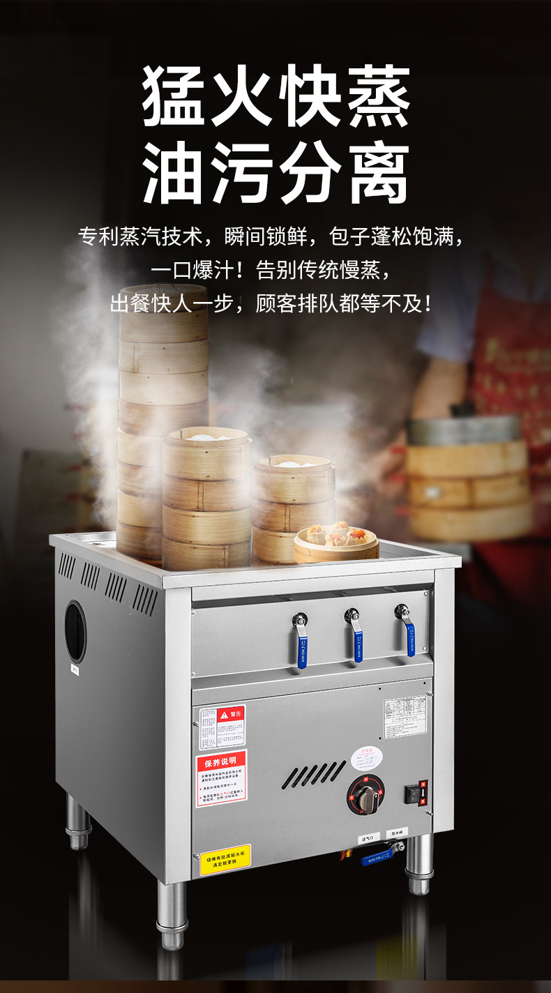 Steamed Bun Oven Commercial Pure Electric Breakfast Shop Gas Stall Natural Gas New Small Steamed Bun Oil-Water Separated Steamed Bun Machine