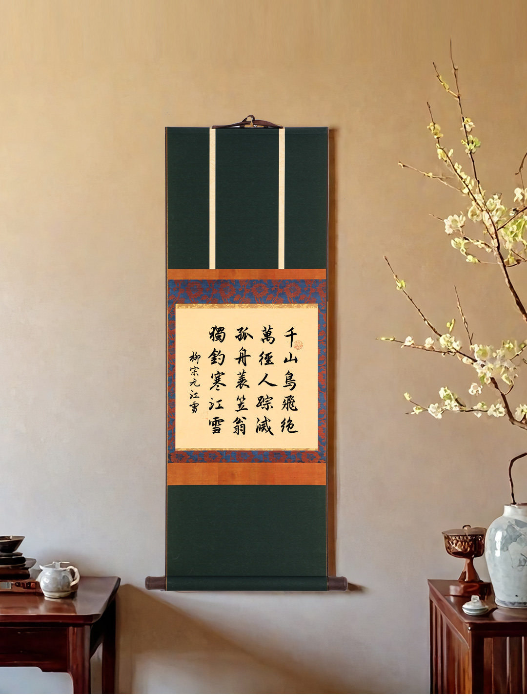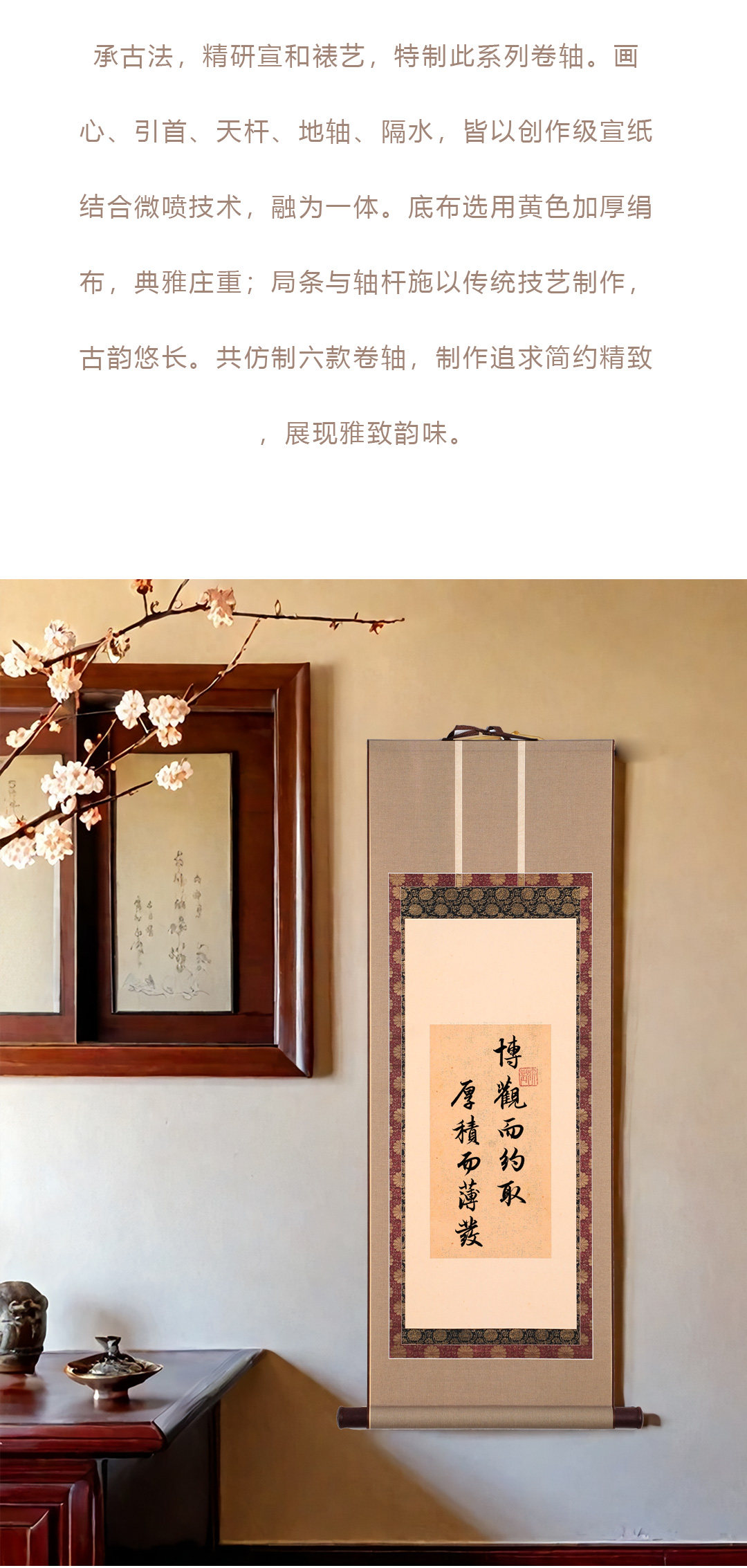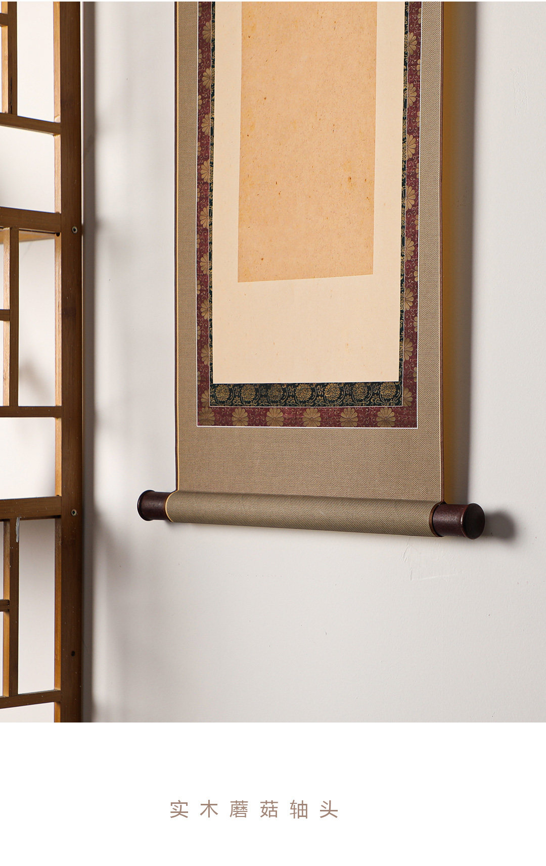 High-End Japanese-Style Xuanhe Scroll with Blank Xuan Paper, Micro-Printed Small Script Calligraphy, Zen Scroll, Semi-Raw Chinese-Style Tea Hanging Scroll for Study, Tea Room, Tea Space Decoration