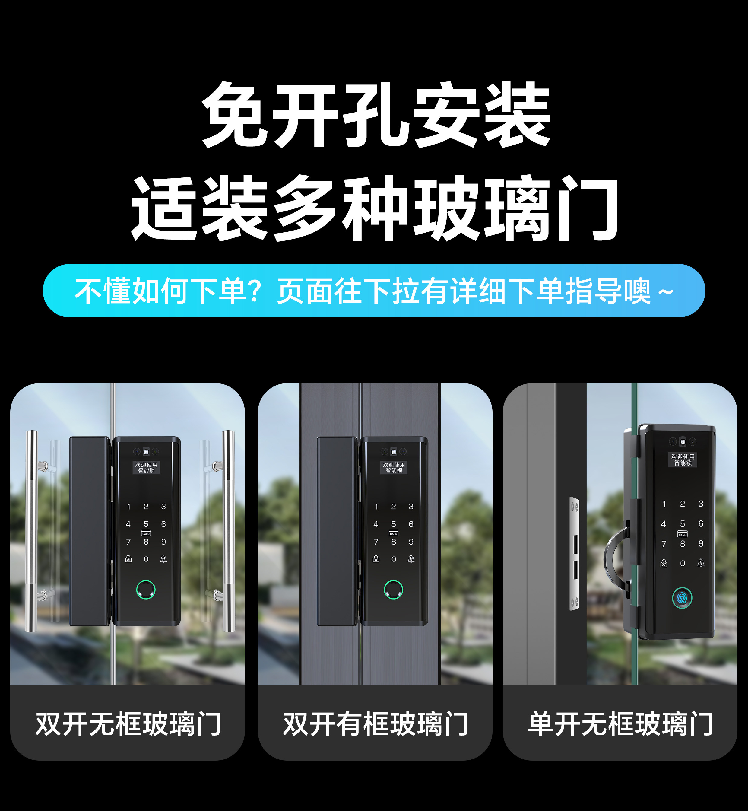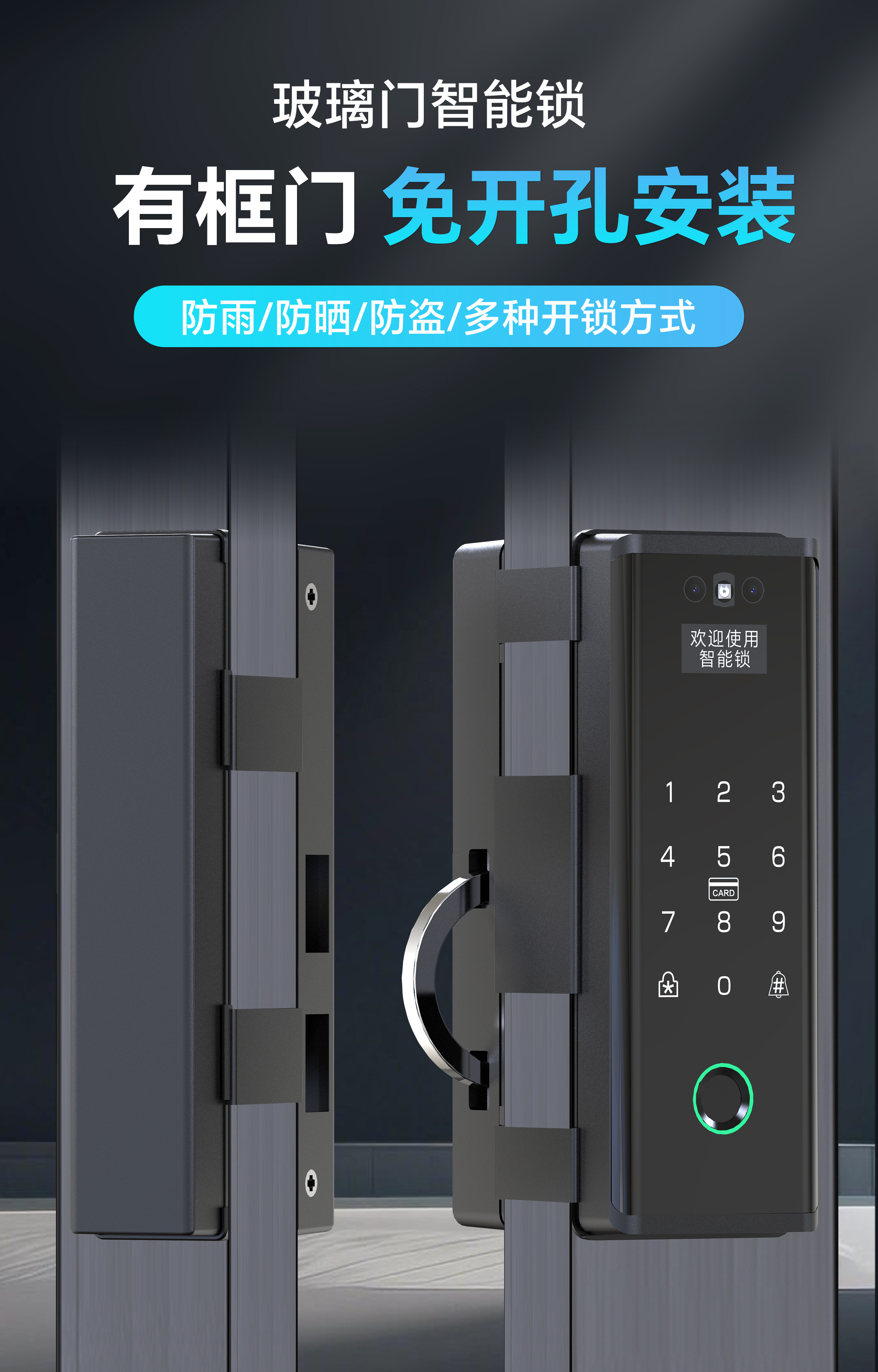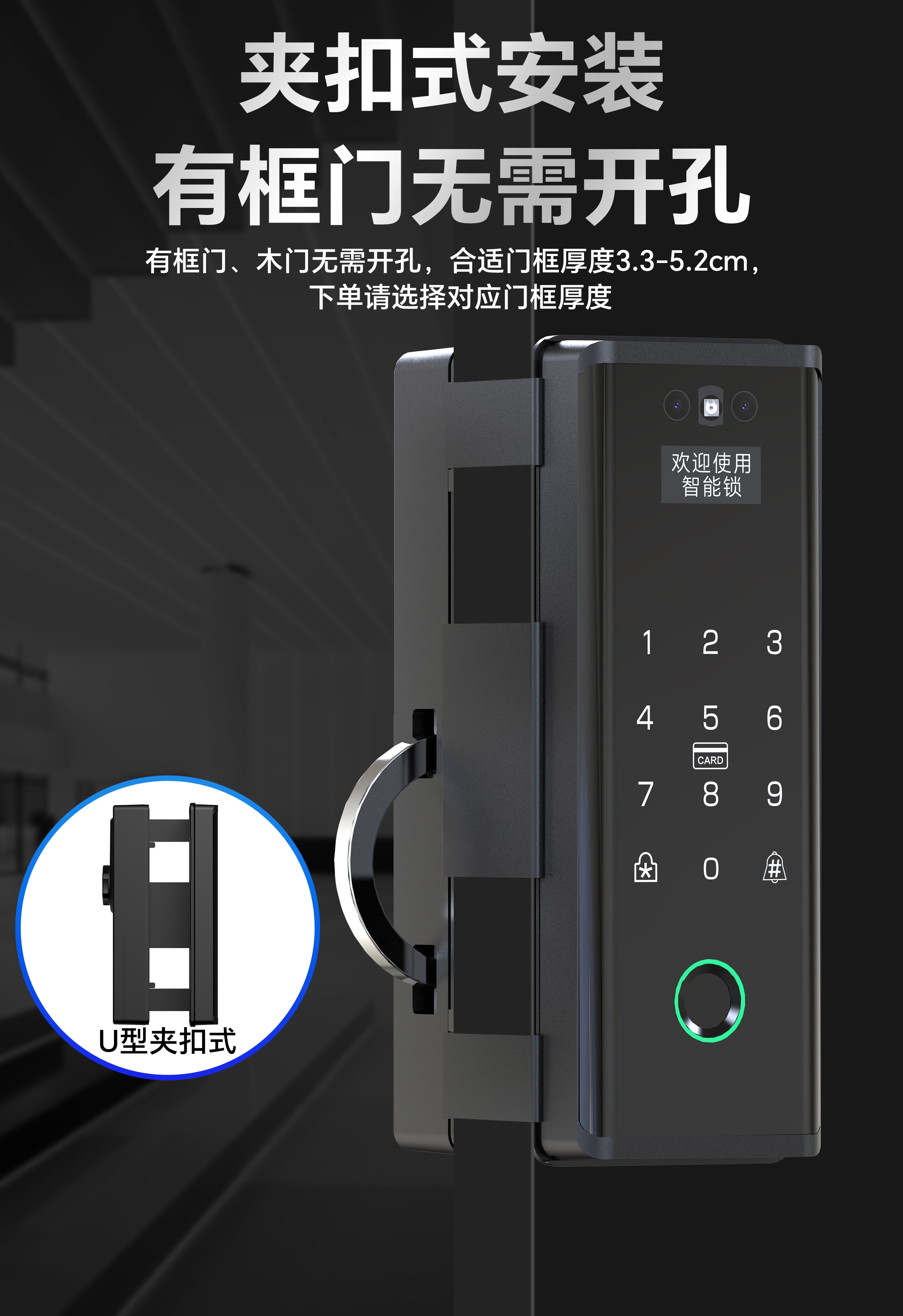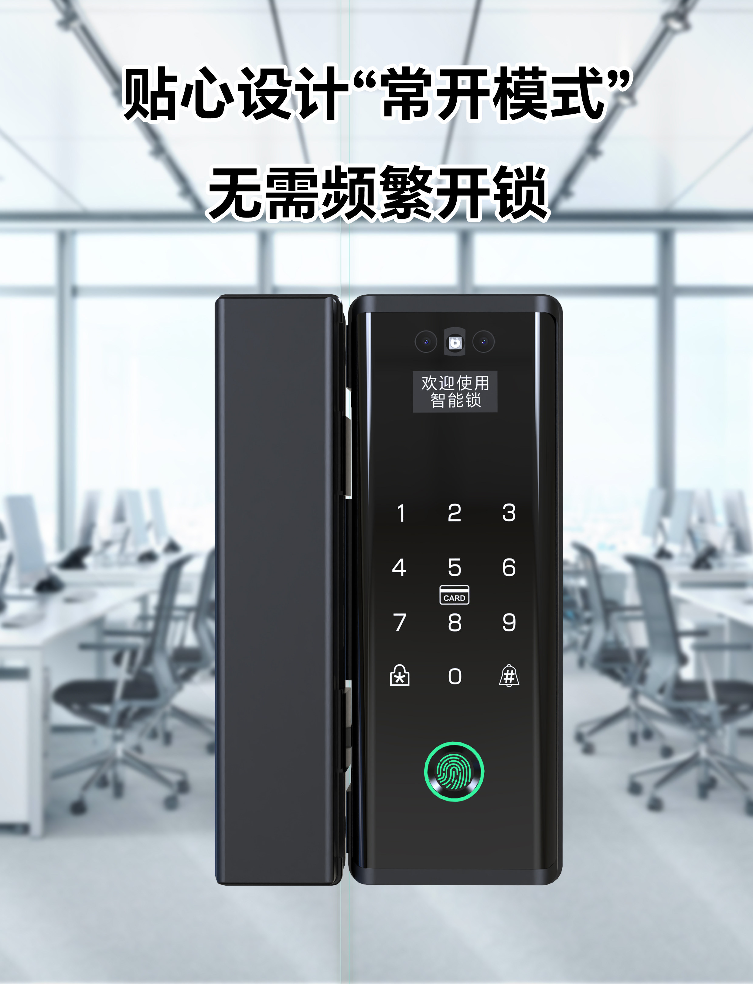 Kfc Door Smart Lock with Face Recognition, Framed Glass Door Password Lock, Aluminum Alloy Door Double-Open/Single-Open Fingerprint Lock