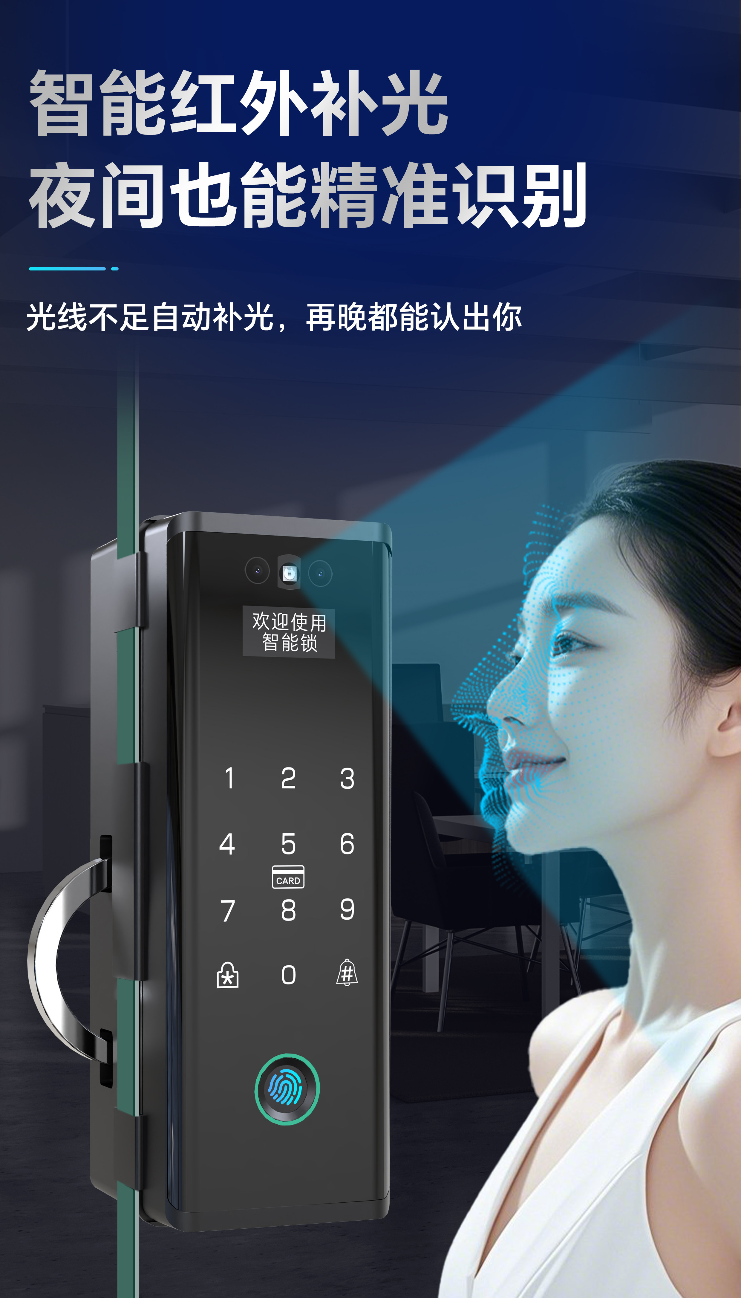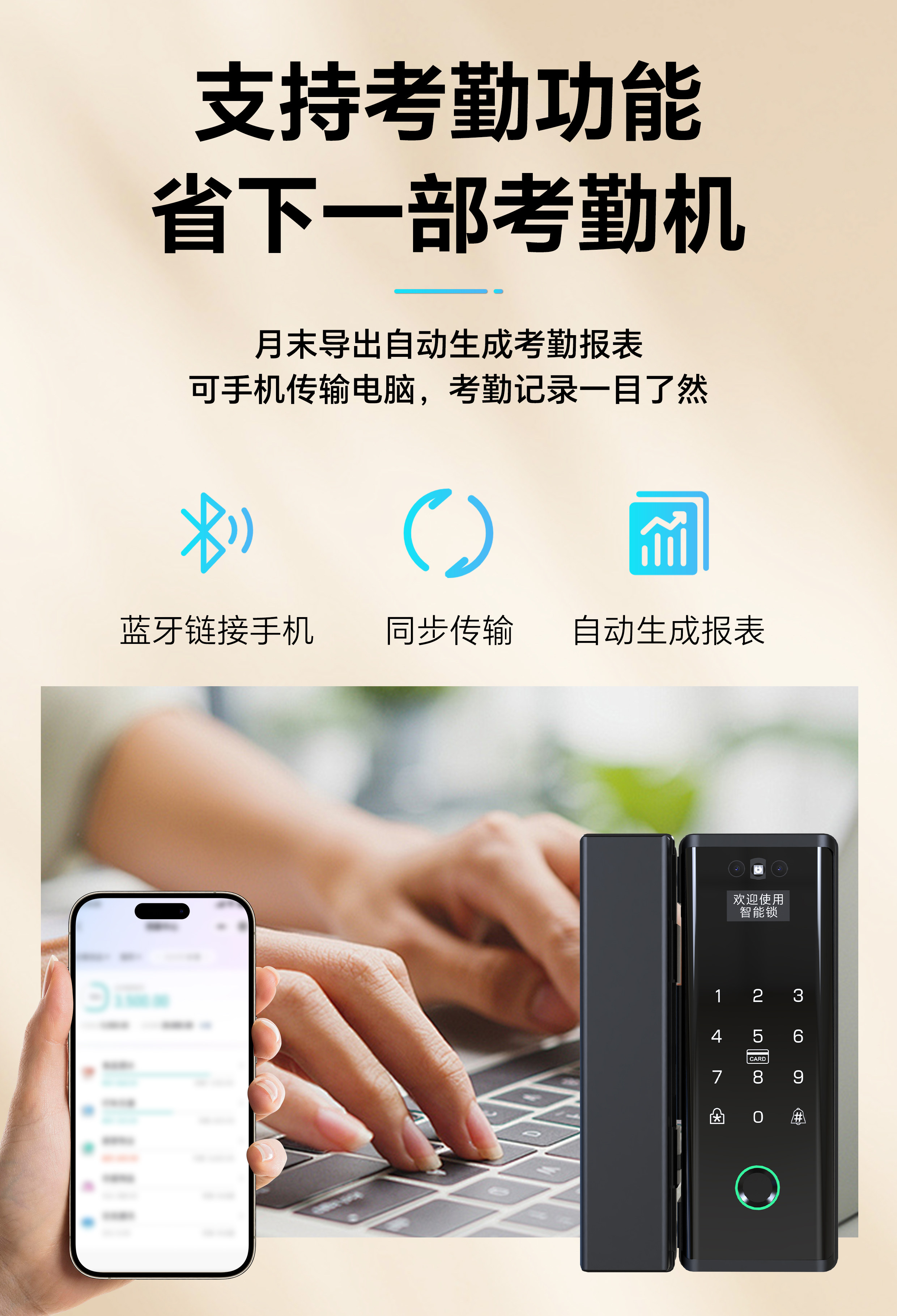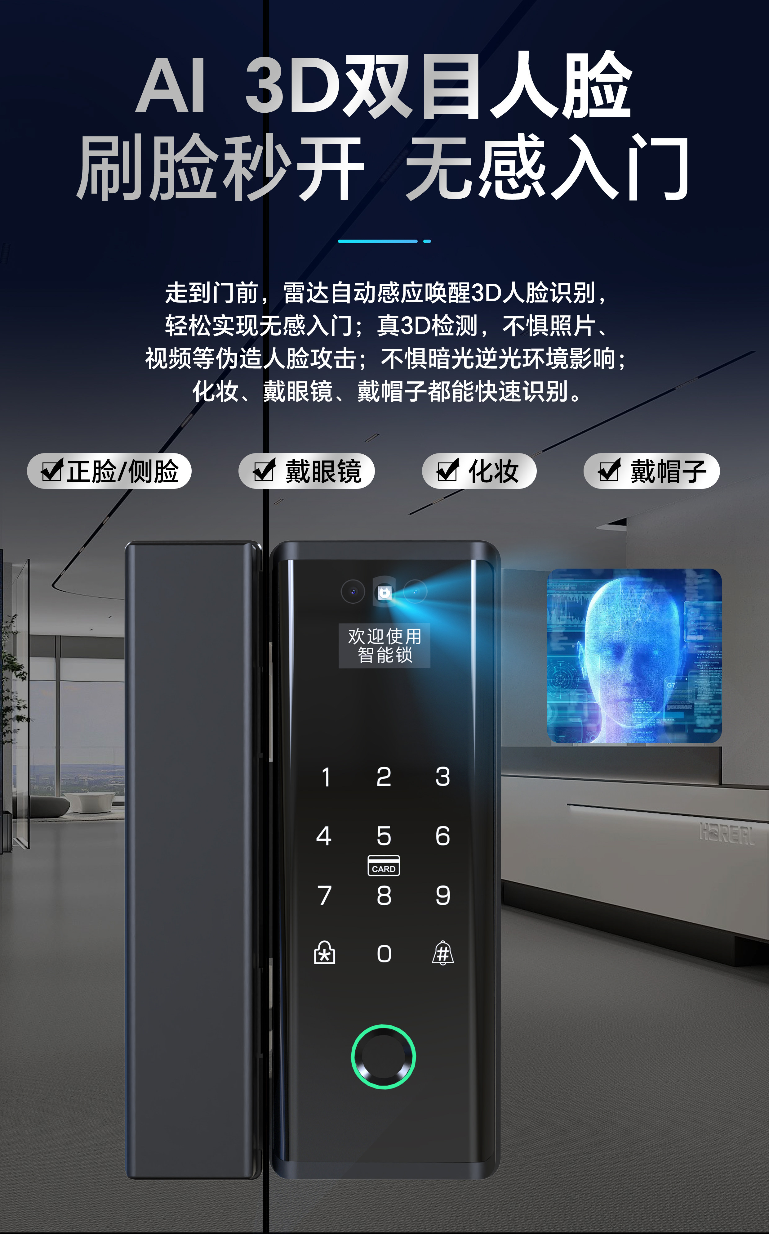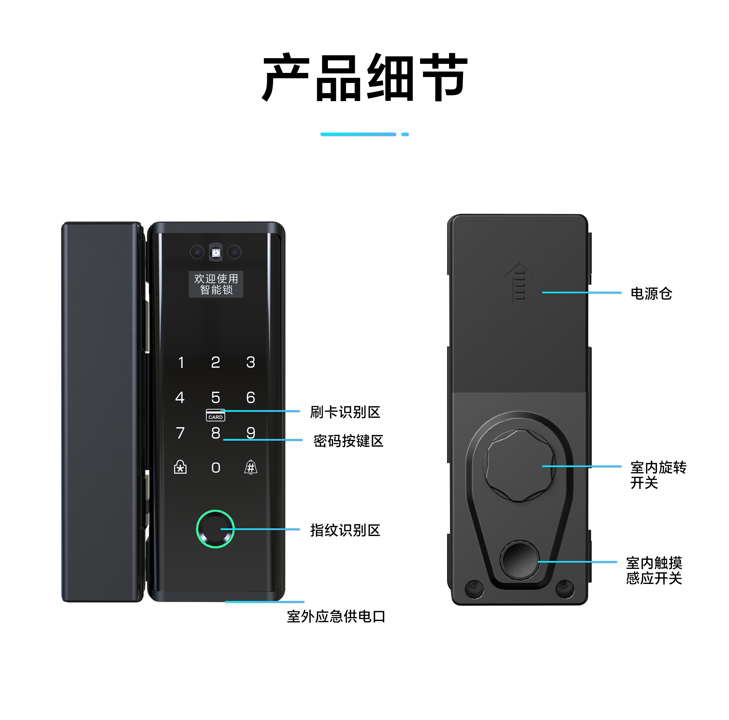 Kfc Door Smart Lock with Face Recognition, Framed Glass Door Password Lock, Aluminum Alloy Door Double-Open/Single-Open Fingerprint Lock