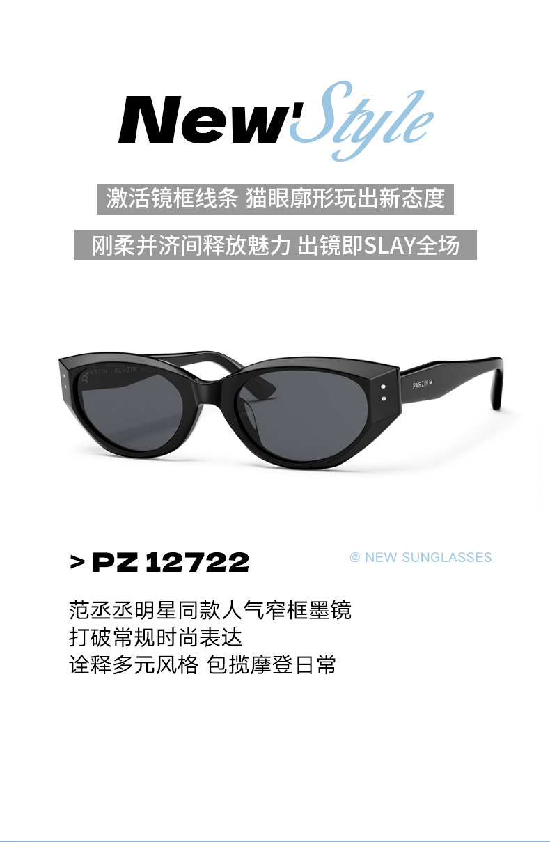 Parson Cat-Eye Small Frame Sunglasses for Women, Fan Chengcheng Celebrity Style, Retro Versatile Sun Protection Sunglasses for Men Pz12722