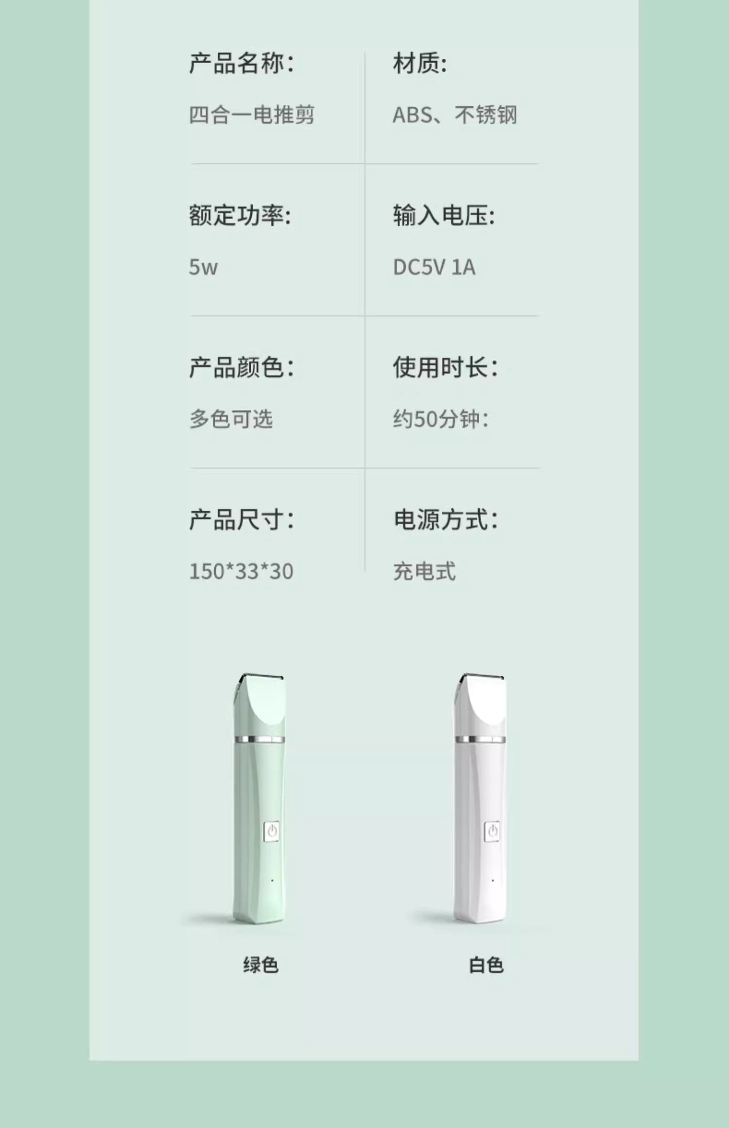 | Electric Clipper Model | Rechargeable |