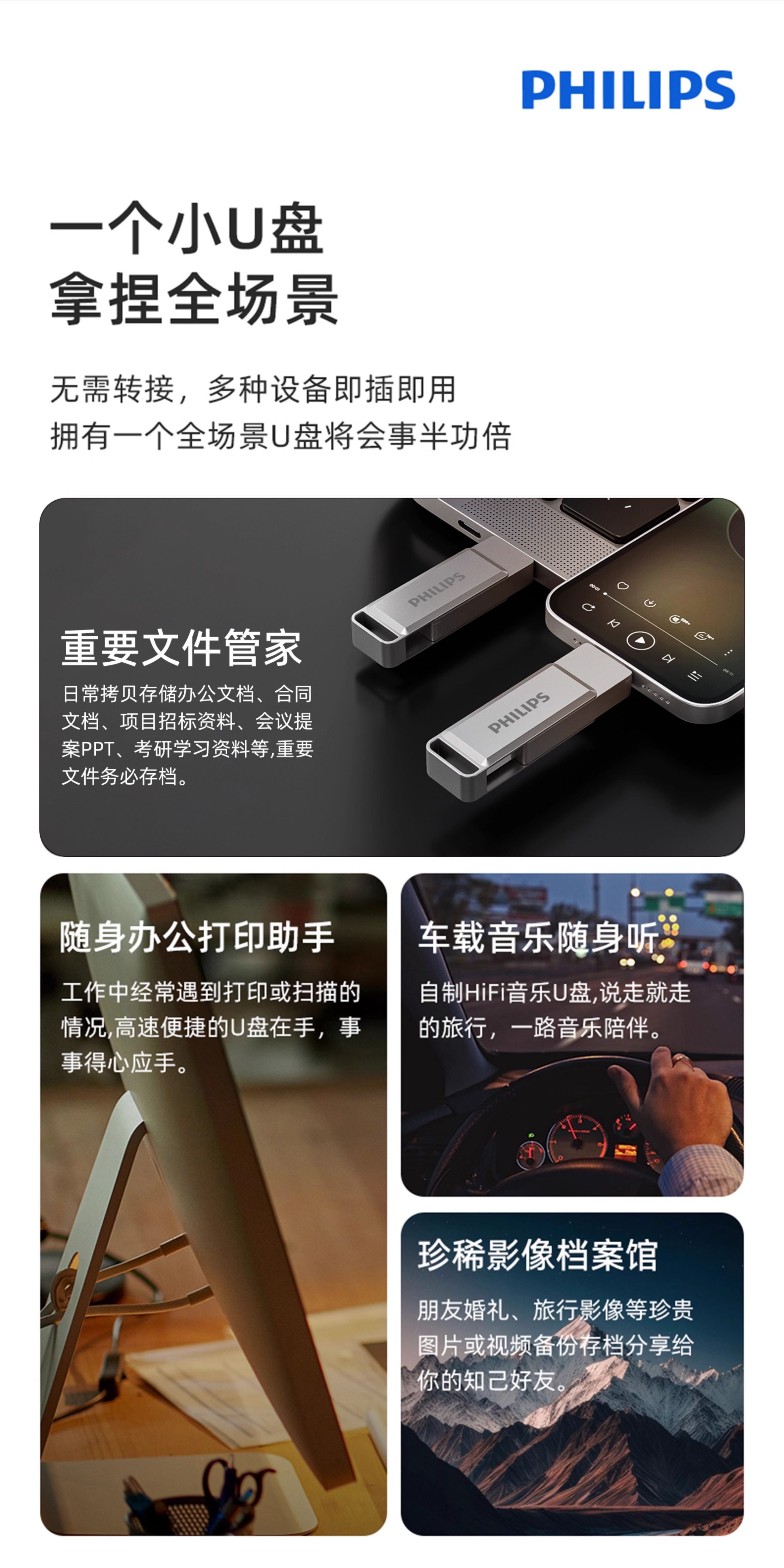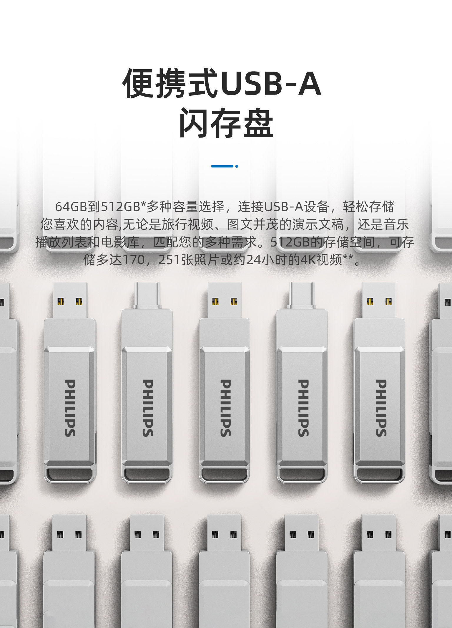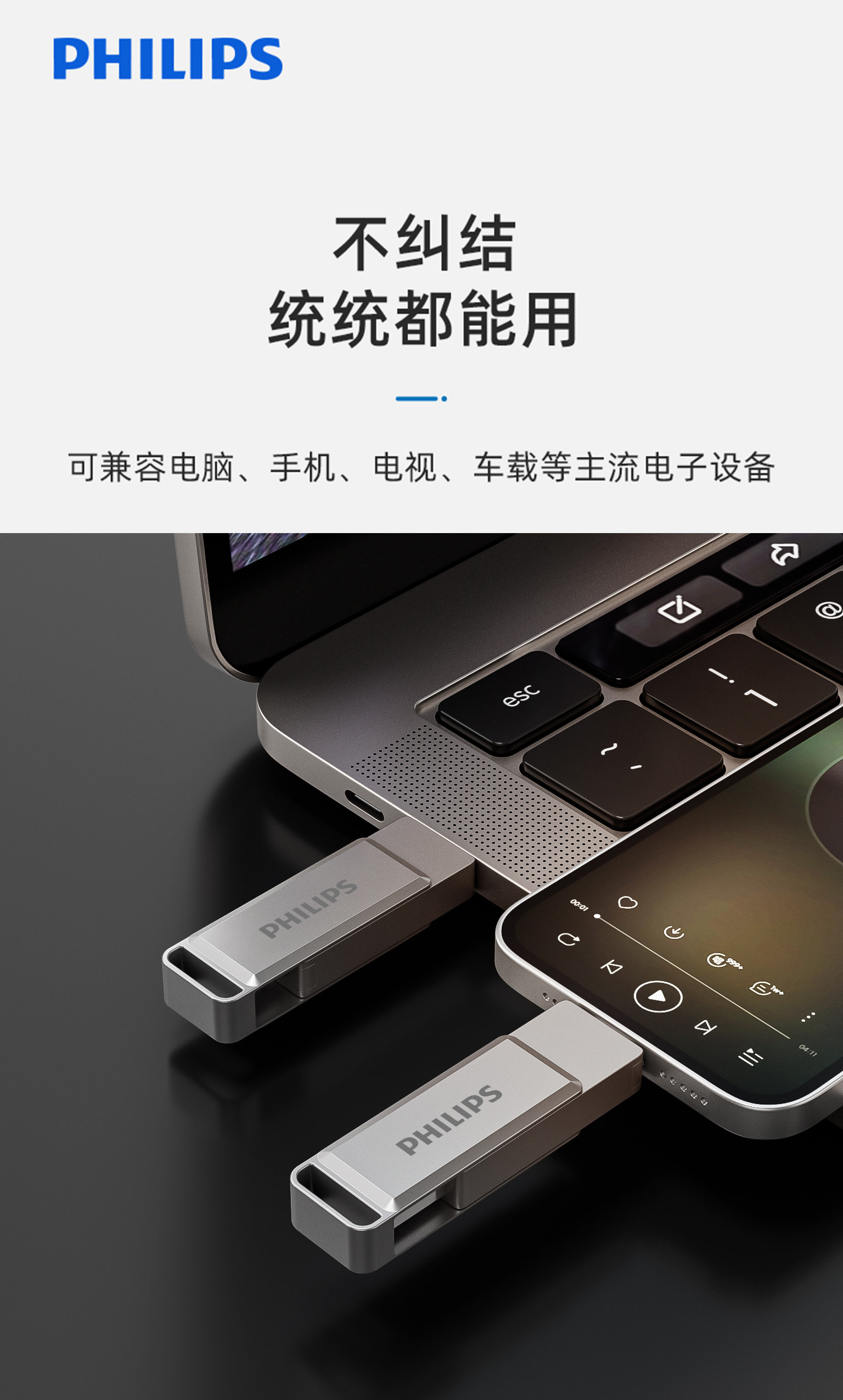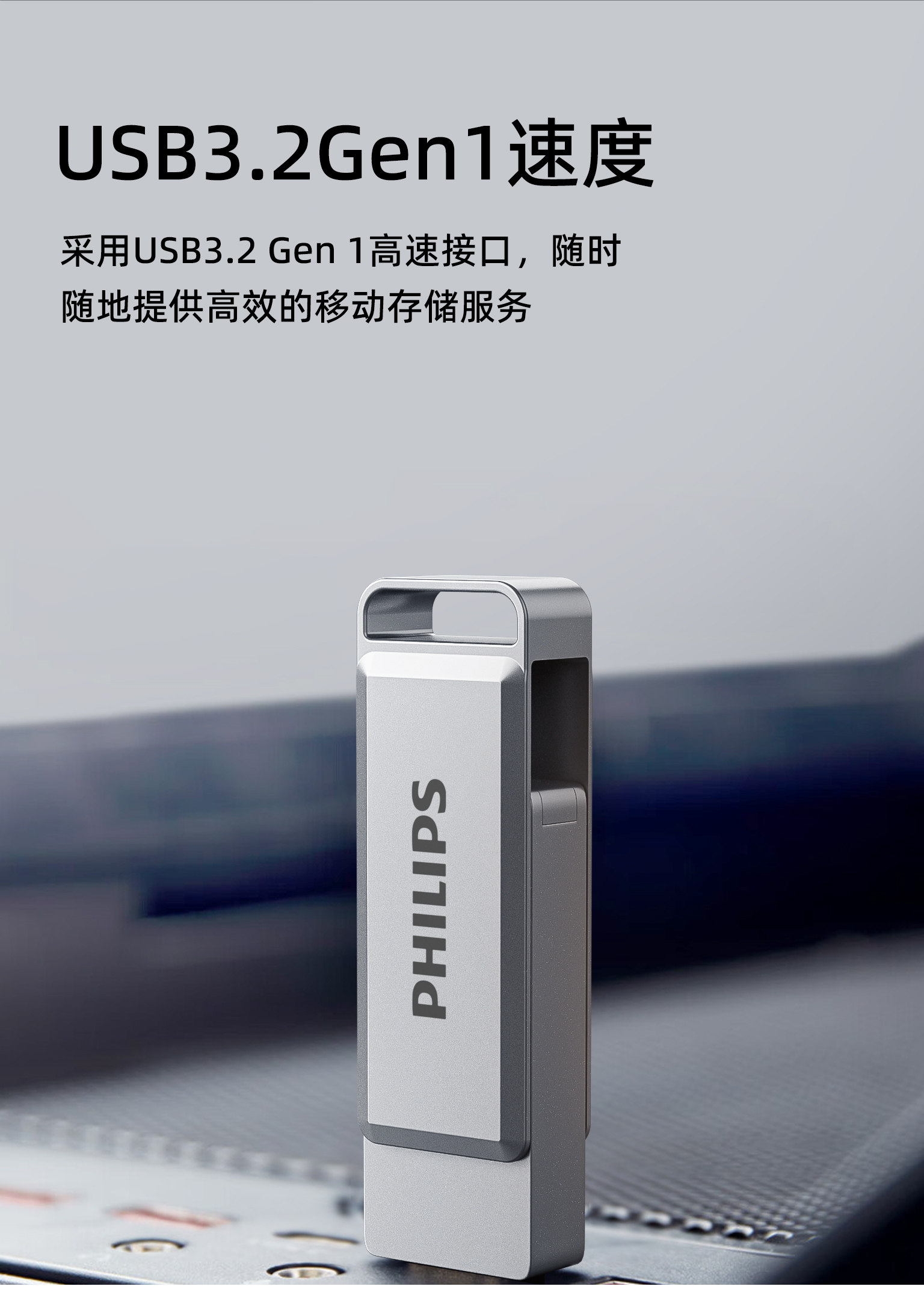 Philips High-Speed USB Flash Drive Typec Dual Interface Large Capacity Huawei Mobile Phone Computer USB Flash Drive Official Genuine 64g
