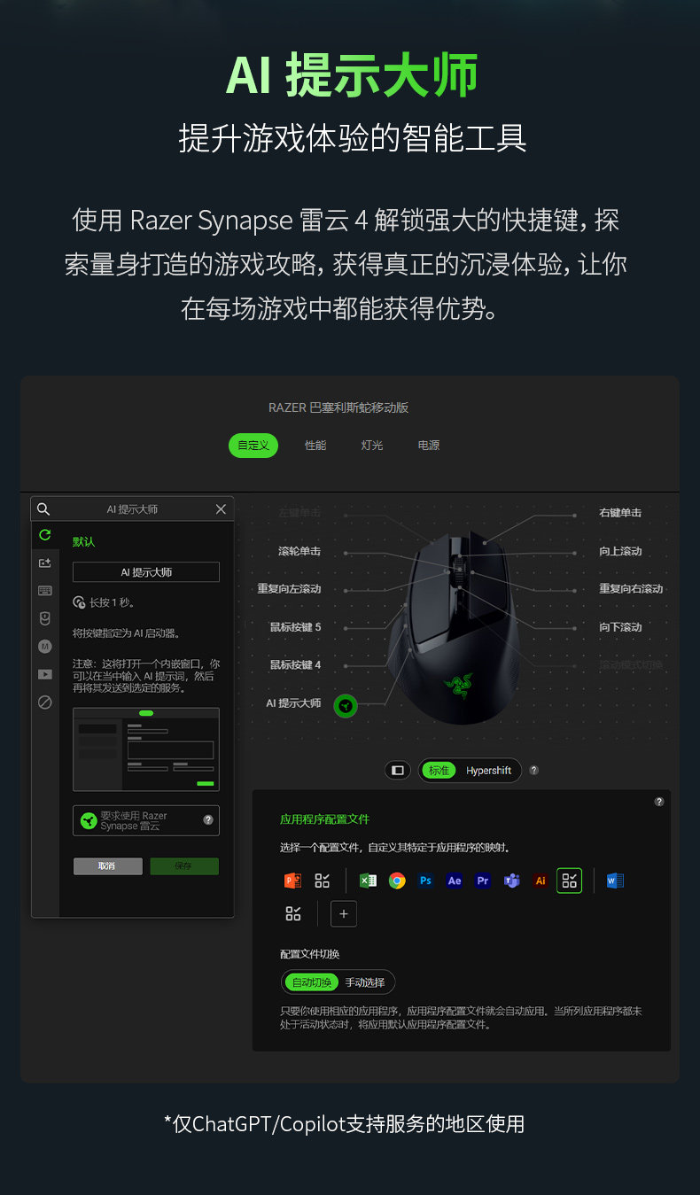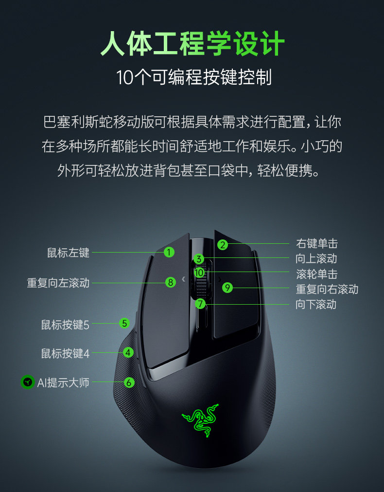 Razer Basilisk Mobile Edition Tri-Mode Wireless Bluetooth Portable Office Gaming Mouse
