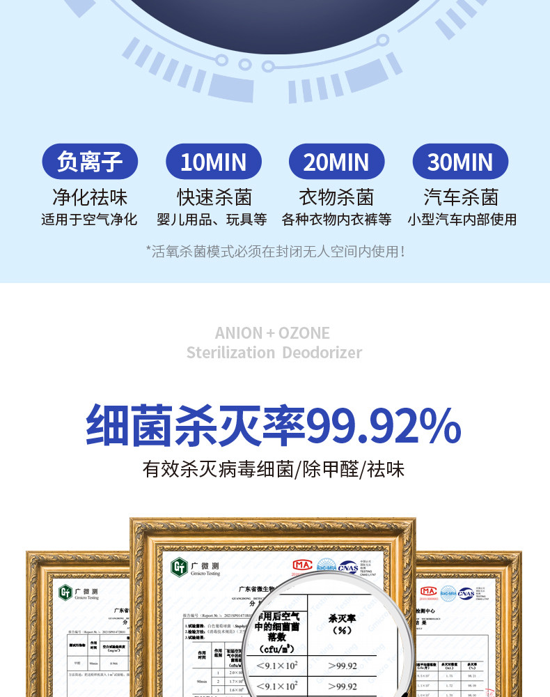 Senmi 908/909 Portable Negative Ion Deodorization and Formaldehyde Removal Car Purifier Wardrobe Disinfection High Concentration Ozone