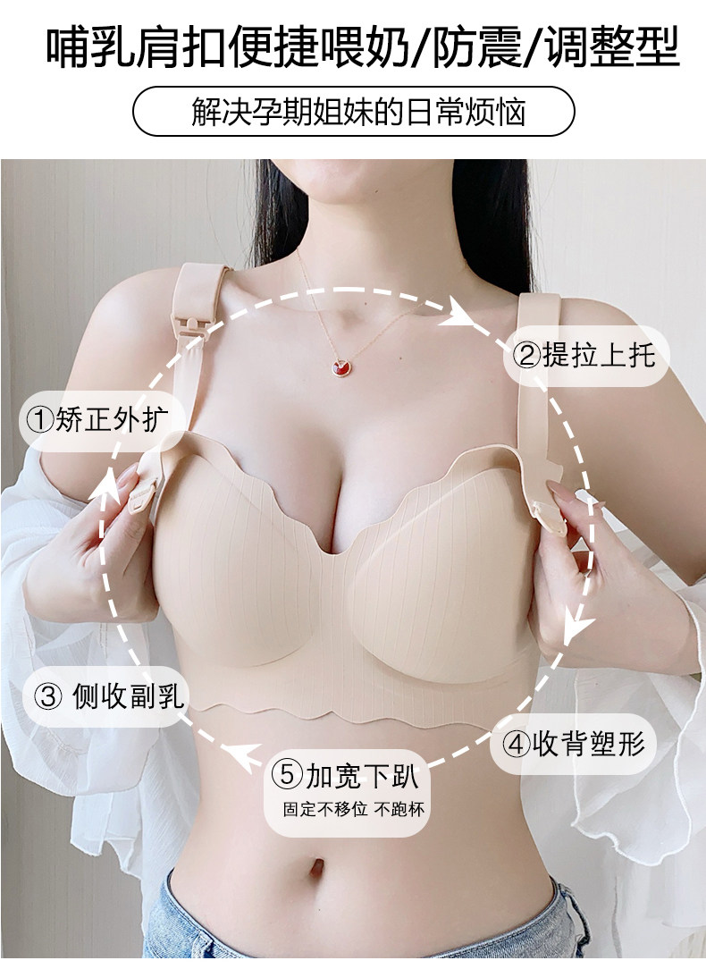 Nursing Bra for Postpartum Breastfeeding, Special Push-Up Anti-Sagging Thin Style, Dual-Use for Pregnant Women, Does Not Tighten the Stomach, Large Size Bra