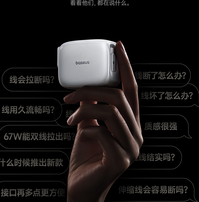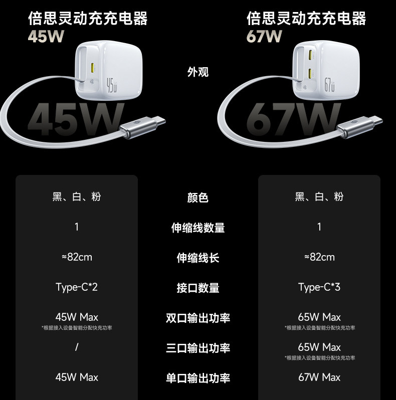 Baseus Smart Charging 45W Retractable Cable Charger Gallium Nitride 67W Comes with Cable Fast Charging Head Suitable for Apple 16 Mobile Phones and Laptops