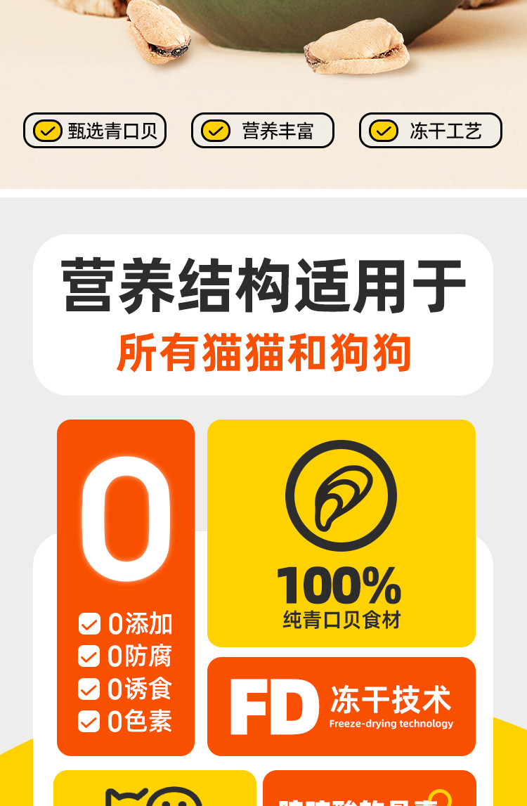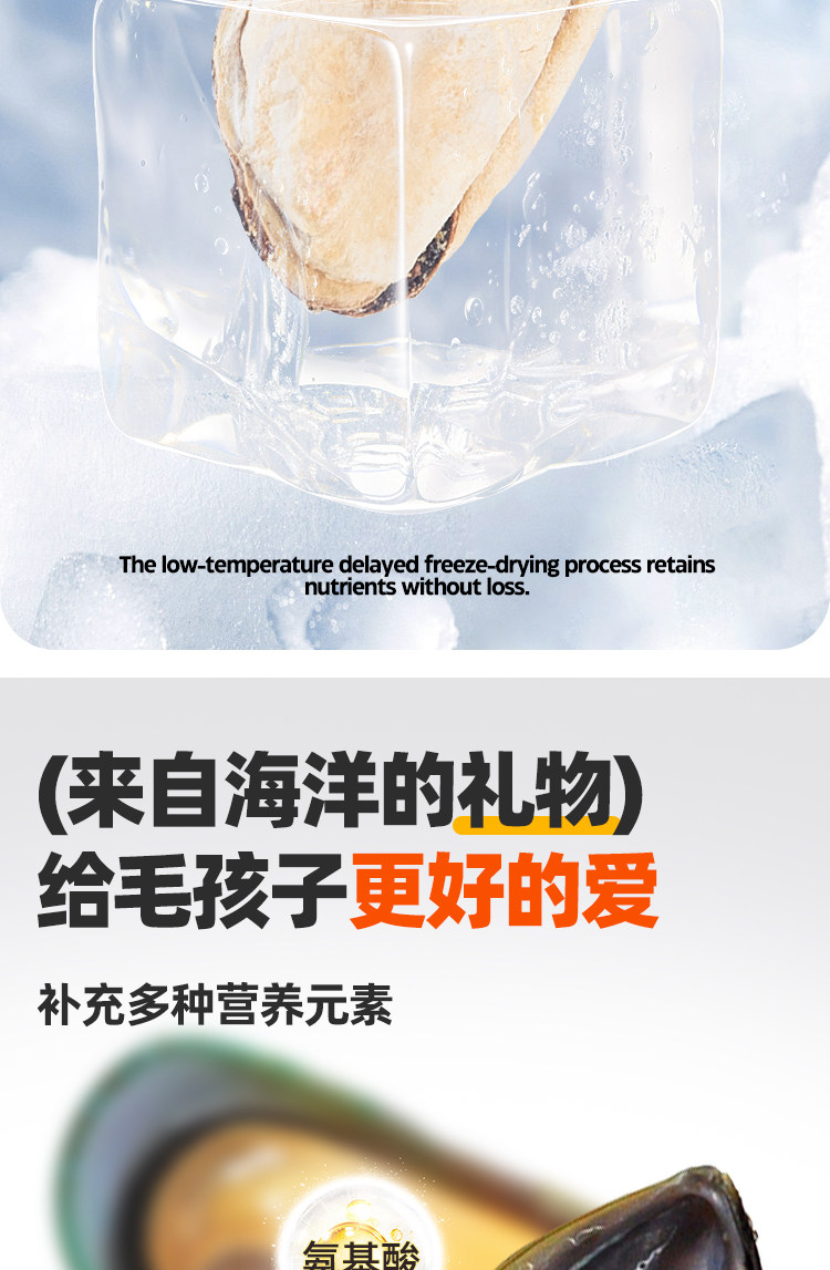 Dog Snacks, Mussels, Freeze-Dried Mussels, Pet Joint Care, Chondroitin Supplement, Molar Nutrition Mixed Food Supplement