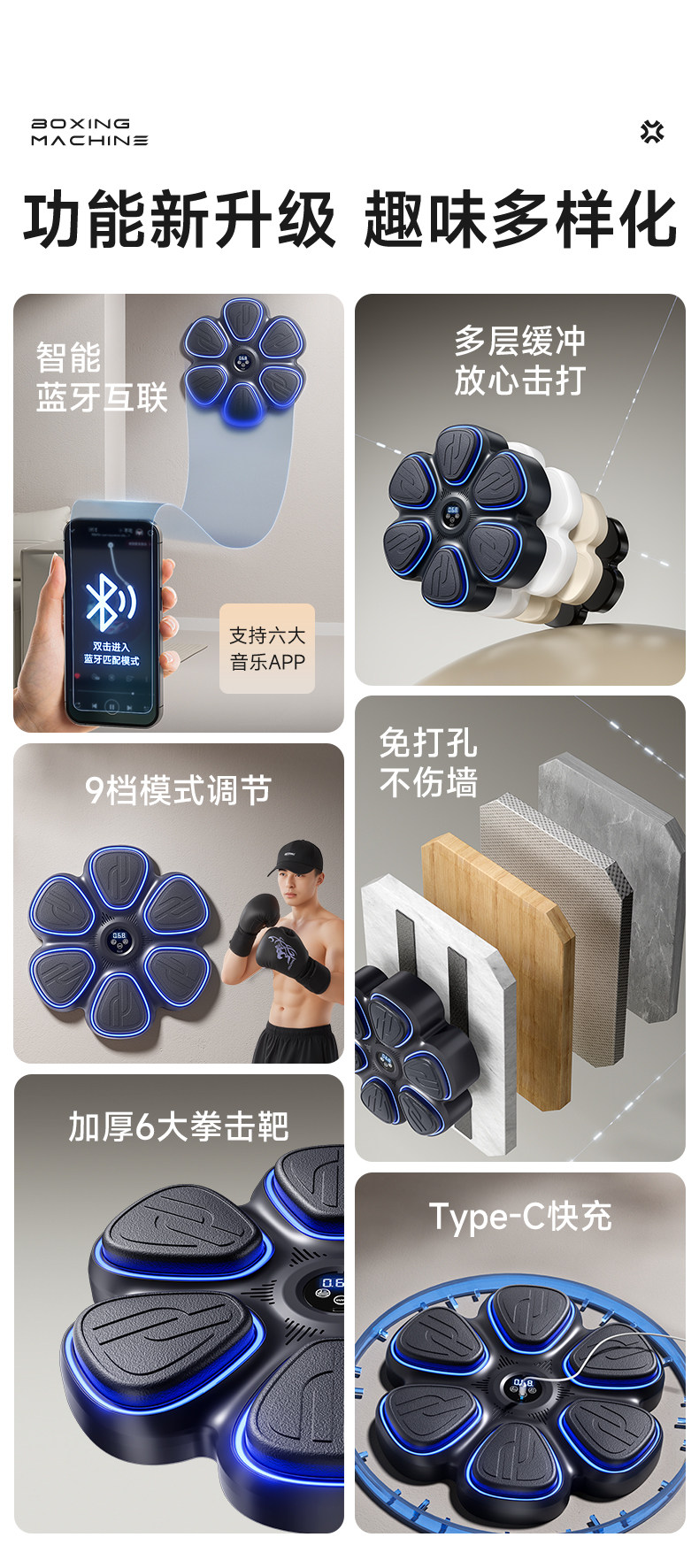 Smart Music Boxing Wall Target for Home Use, a Stress-Relief Tool for Adults and Children, Indoor Fitness Boxing Training Equipment