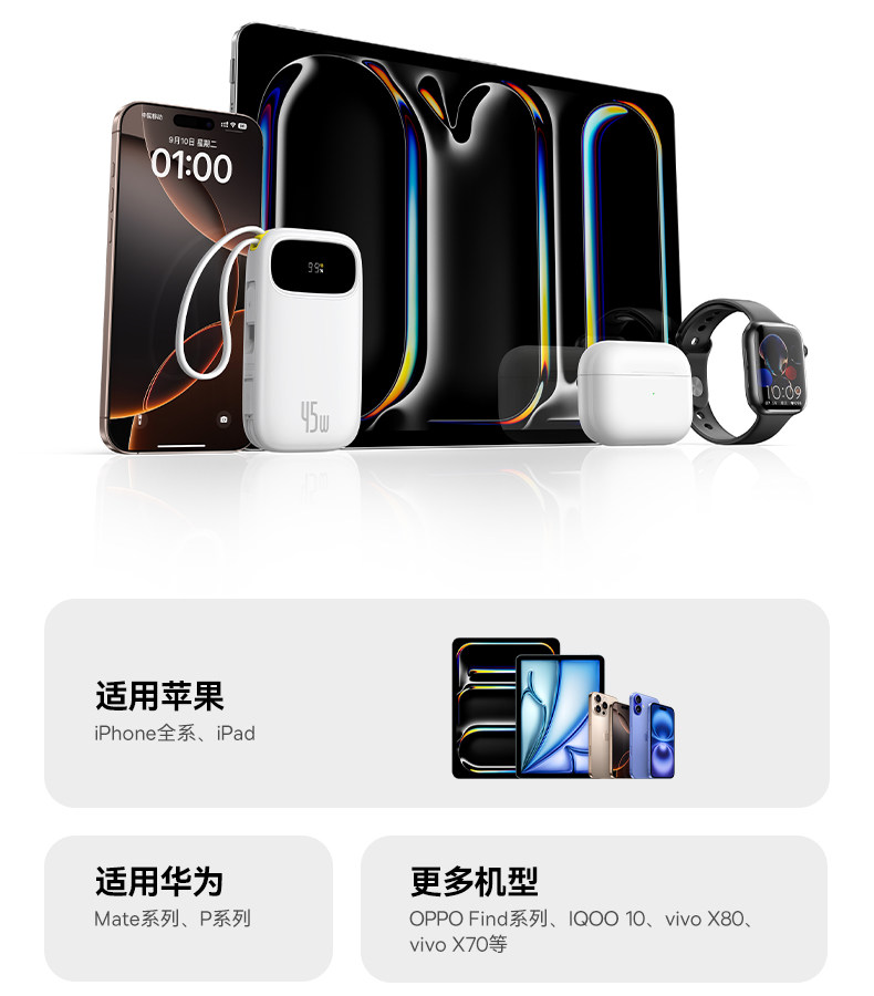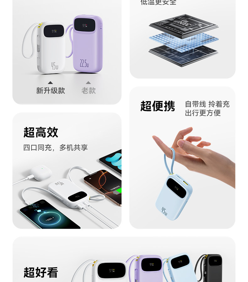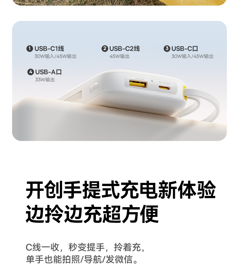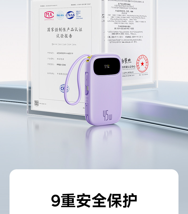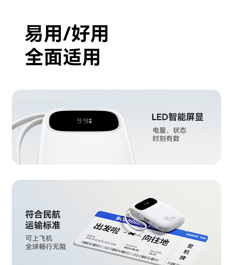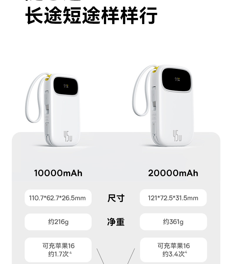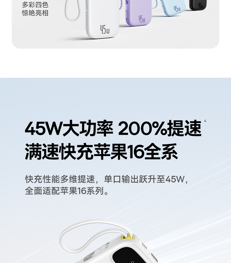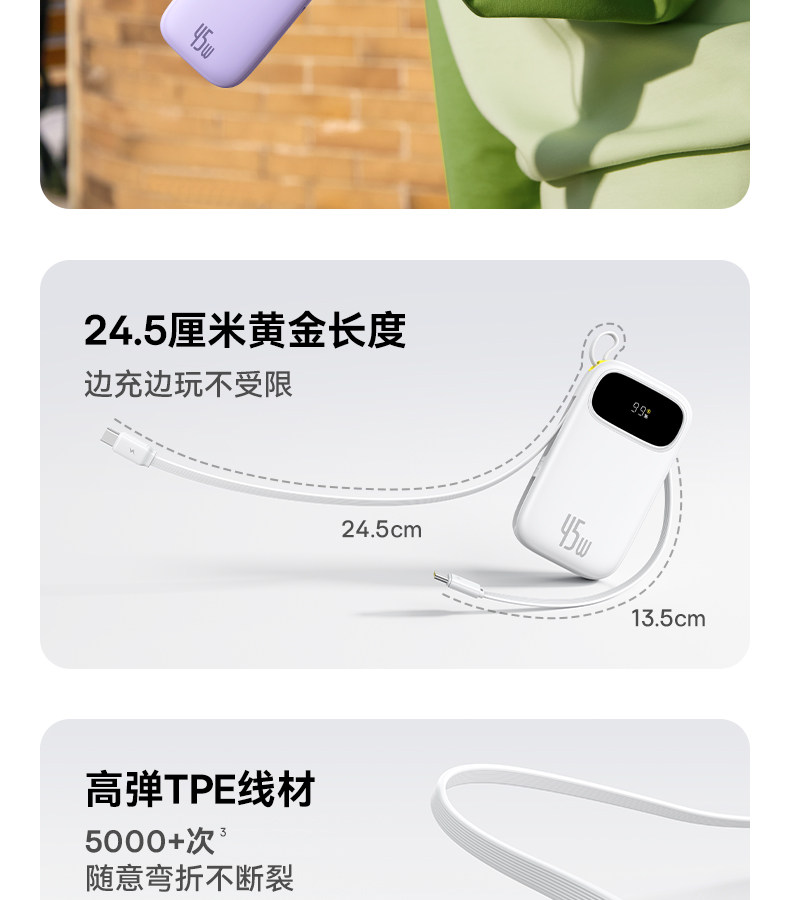 [3C Certification] Baseus 10000Mah Power Bank 2025 New Model Fast Charging Ultra-Thin Compact Portable with Built-In Cable Large Capacity Mobile Power Bank Portable Suitable for Xiaomi Apple 17 Special Genuine Product