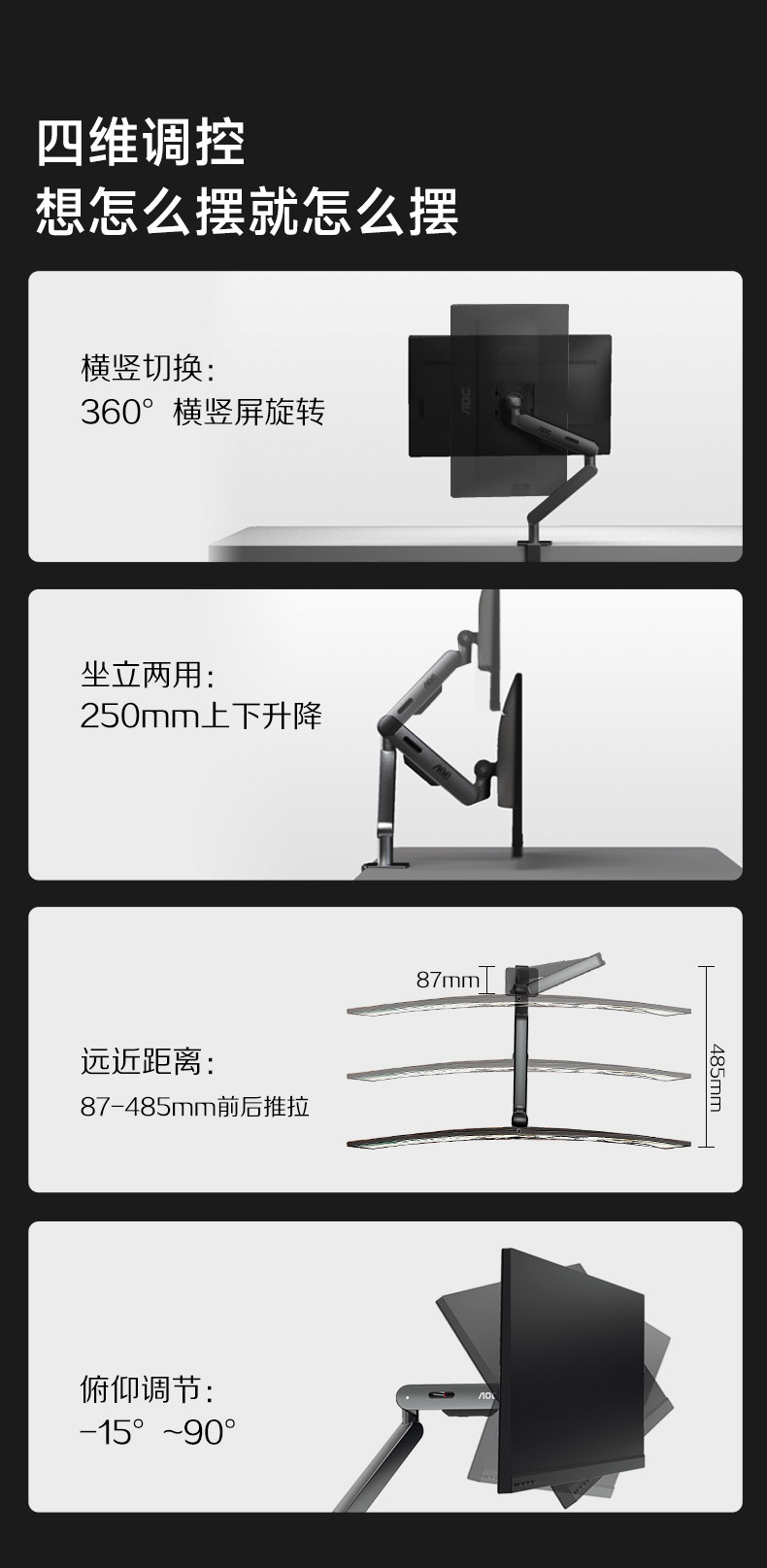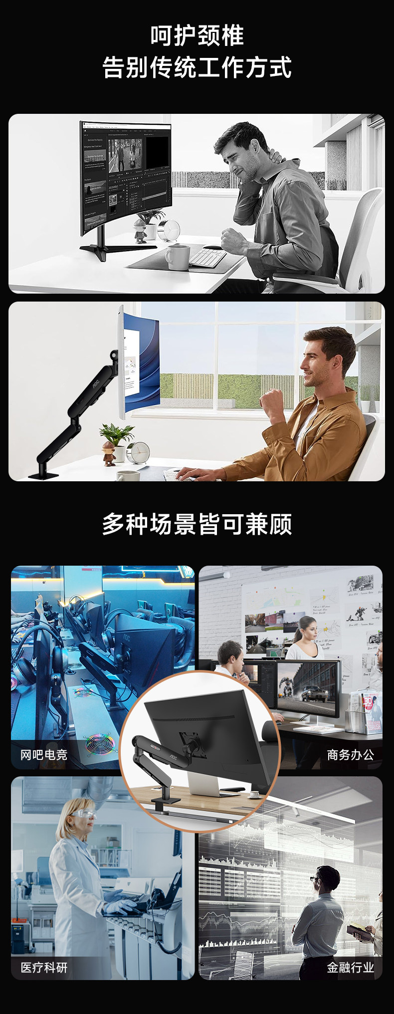 [Discount of 100 on Monitor Purchase, Confirm Receipt and Get a Refund]Aoc Bracket Mechanical Arm Computer Screen Perforated Mount Am500
