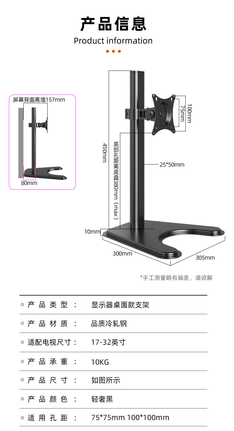 Universal Computer Monitor Stand with Vesa Mount, Adjustable Height, Swivel, and Tilt, Compatible with Aoc, Xiaomi, Hkc