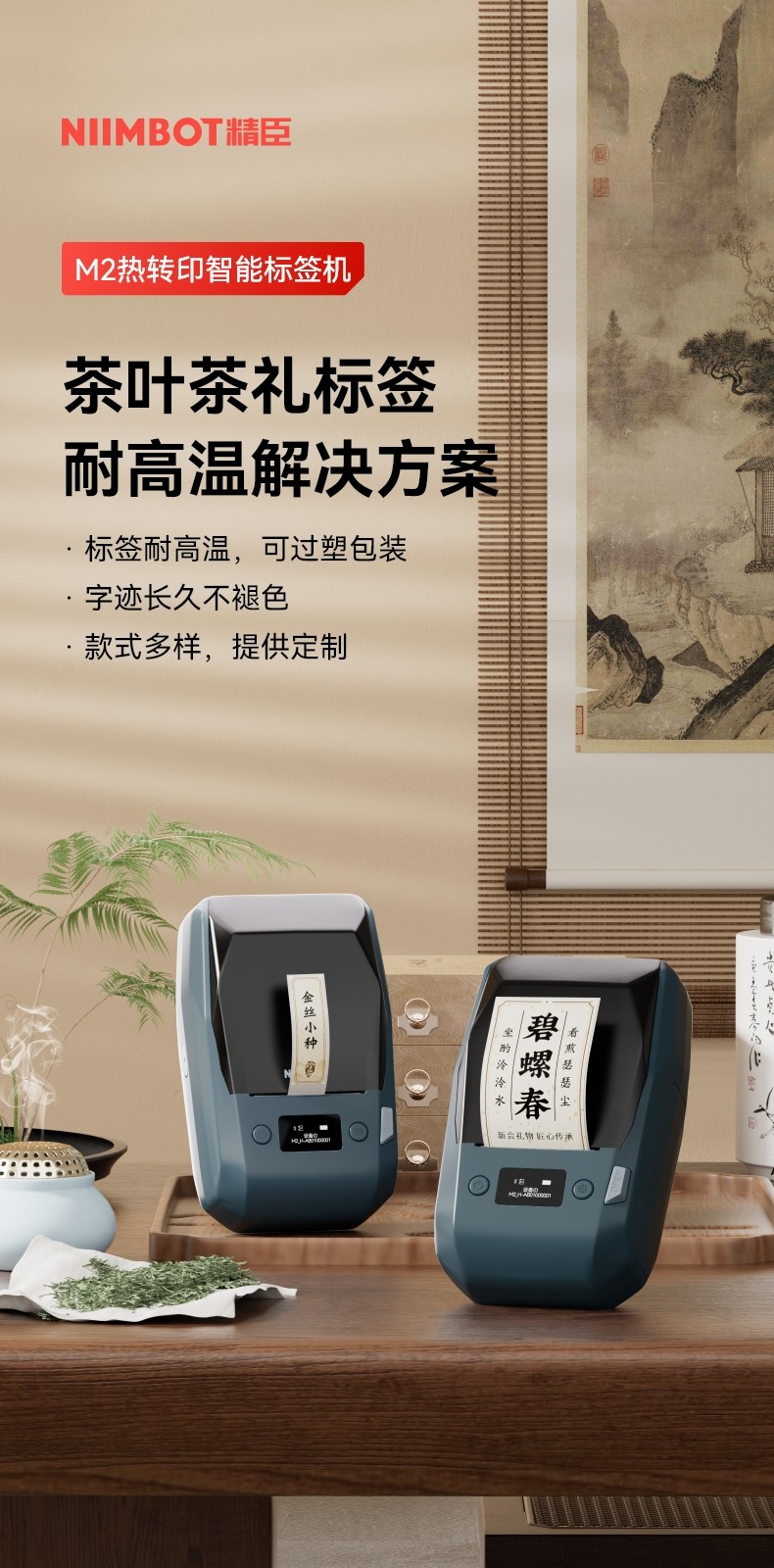Jingchen M2 Tea Label Printer for Pu'Er Tea Cakes, Tea Can Packaging, Sealing Stickers, Pet Durable Gift Box Packaging, High-Temperature Laminated Kraft Paper Stickers, Colorful Labels, Sealing Logos, Trademarks, Price Tags