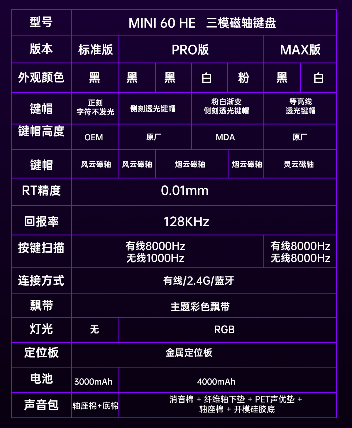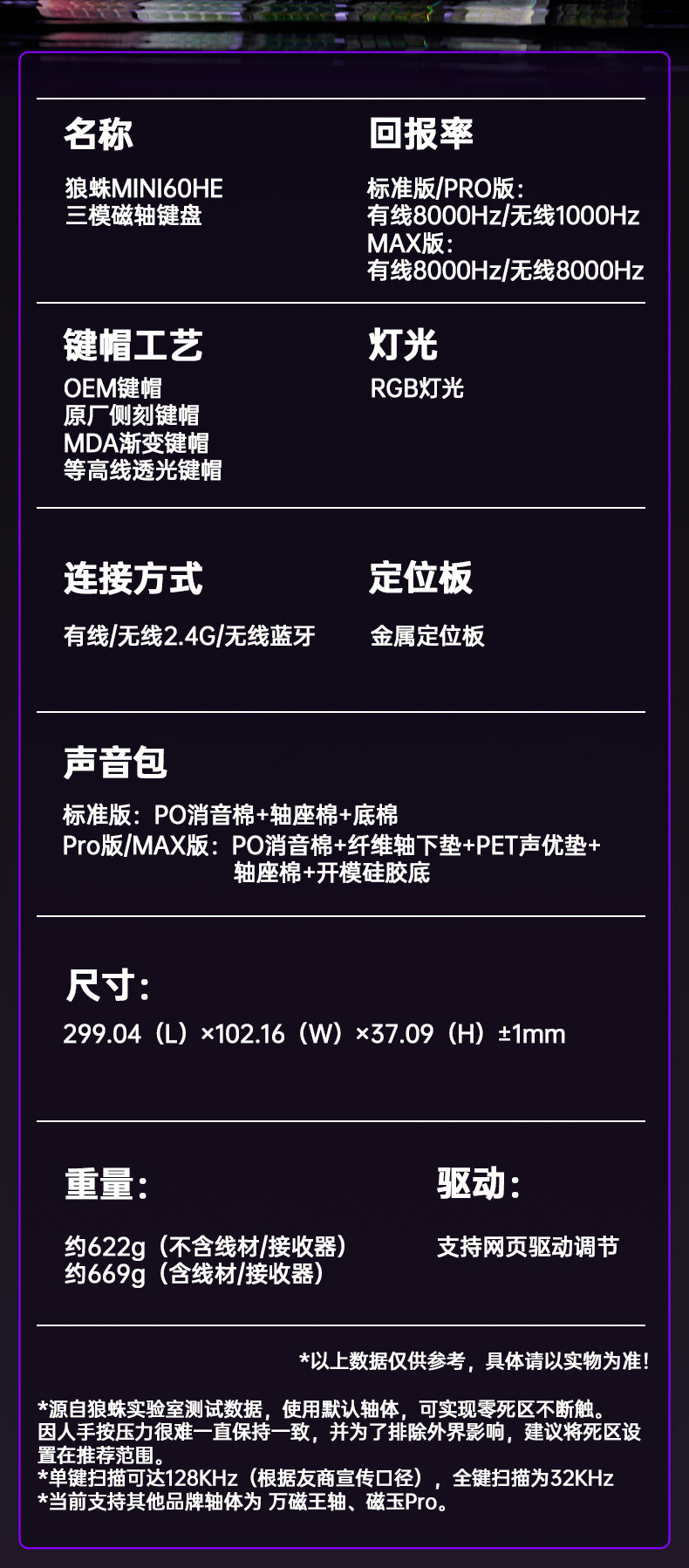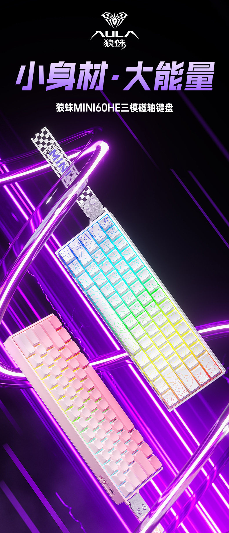 Wolf Spider Mini60 Three-Mode Magnetic Switch Gaming Wireless Keyboard for Computers and Laptops, High-Performance Fps Dedicated Rgb