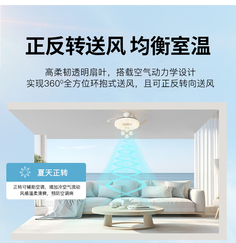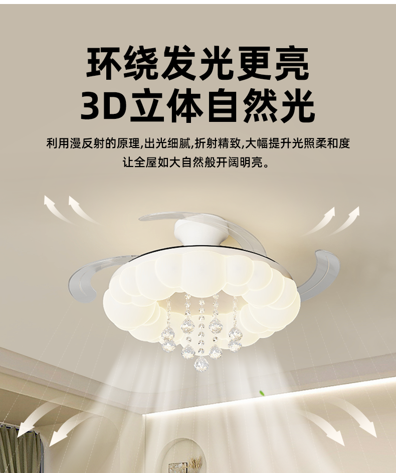 Master Bedroom Invisible Fan Light, Silent Variable Frequency Integrated Fan Light, Cream Style Full Spectrum Eye Protection Dining Room Ceiling Light