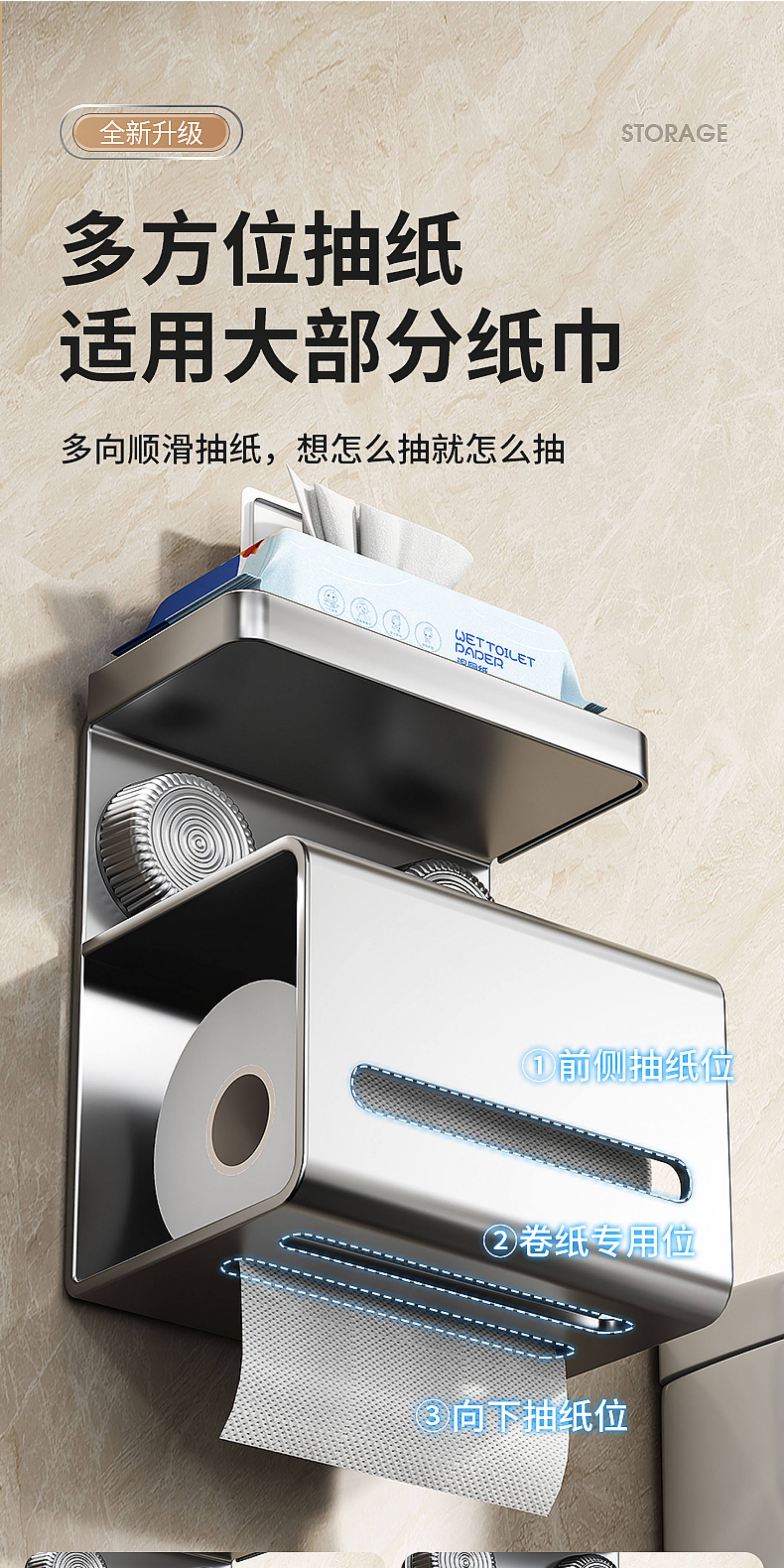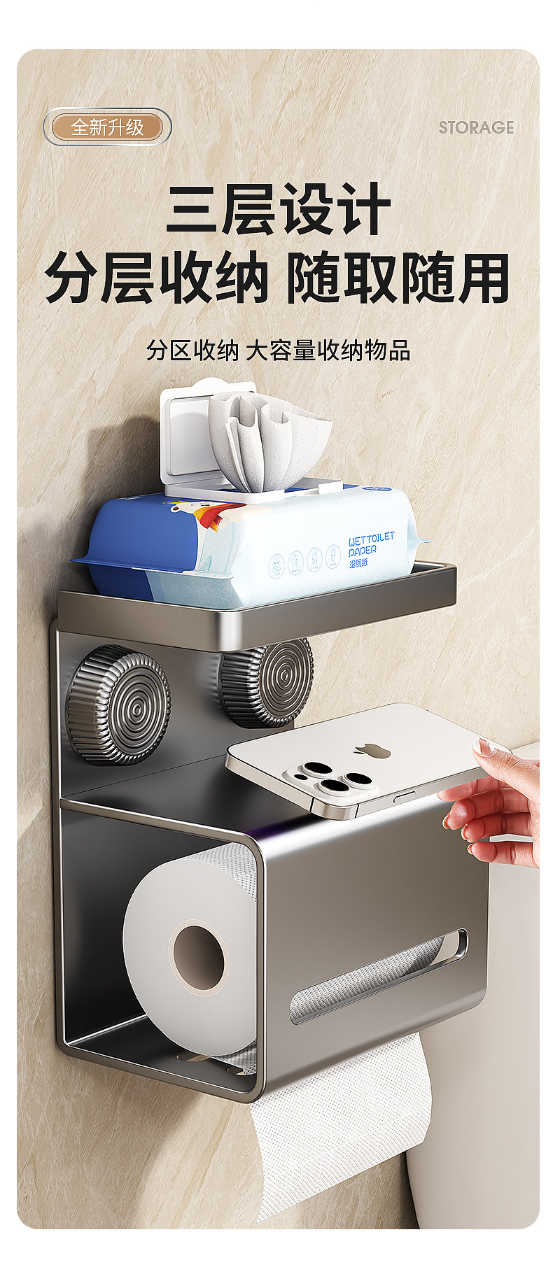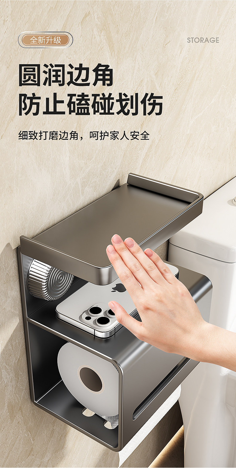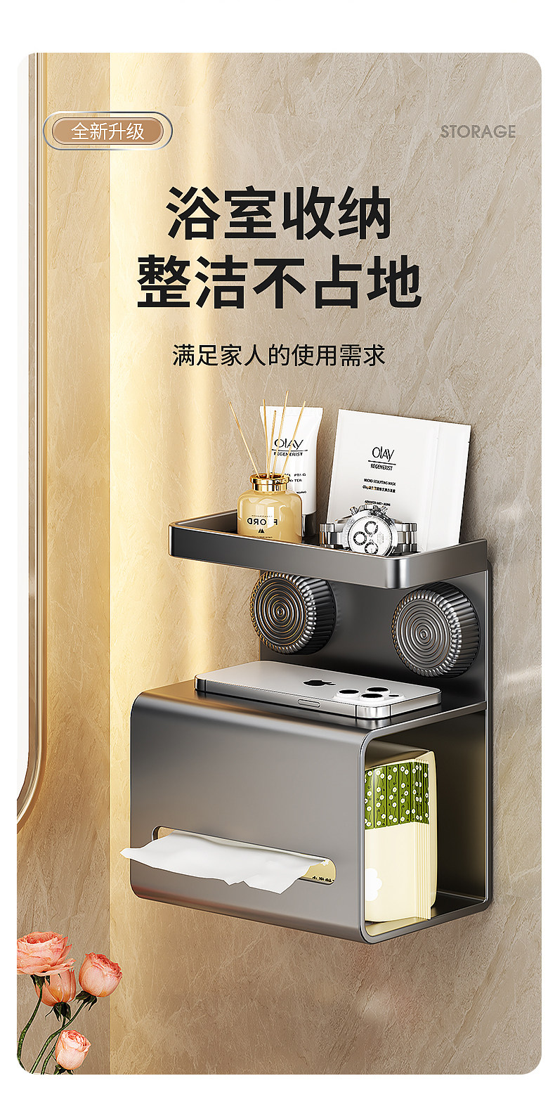 Bathroom Punch-Free Tissue Box Toilet Wall-Mounted Suction Cup Waterproof Tissue Box Roll Paper Storage Rack