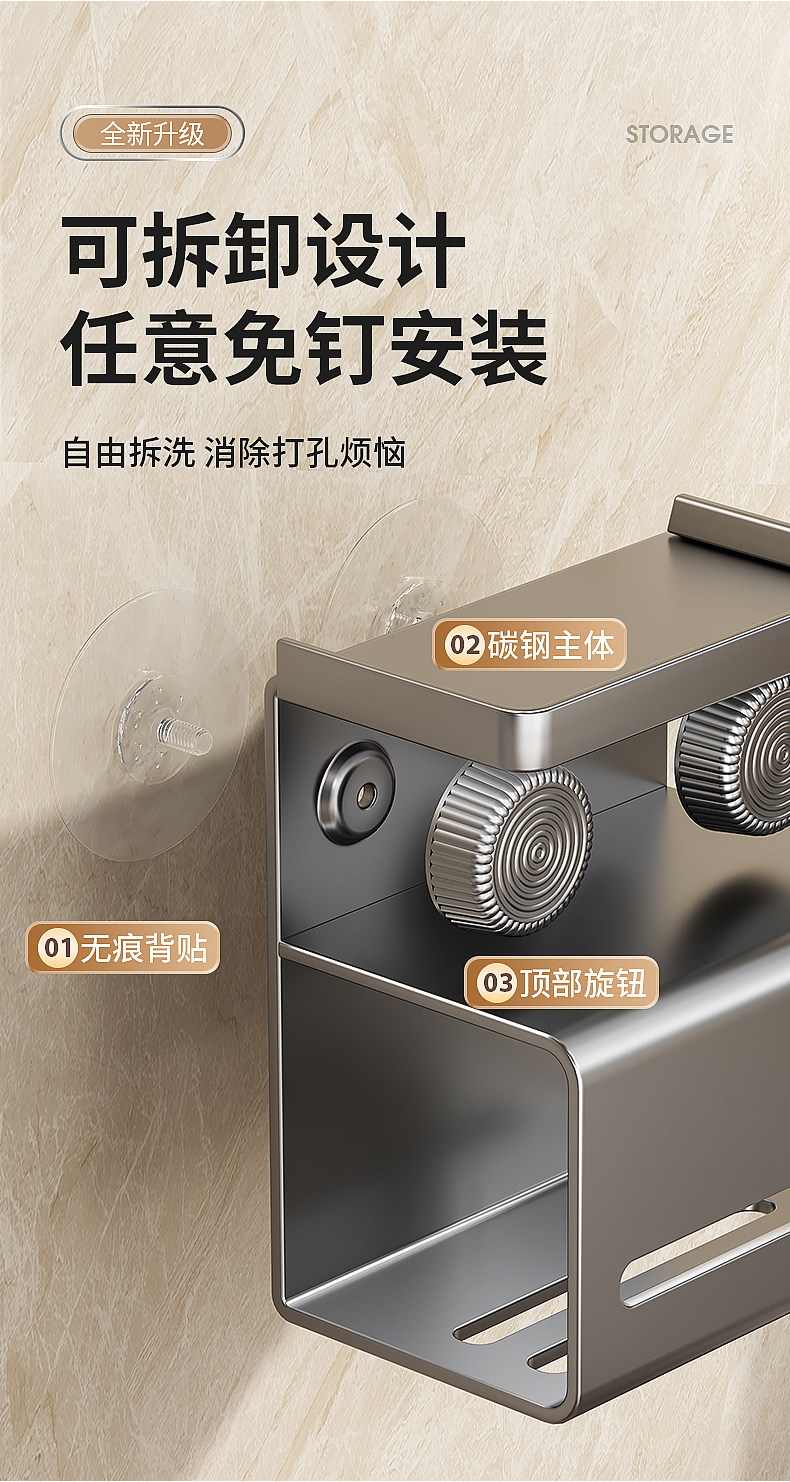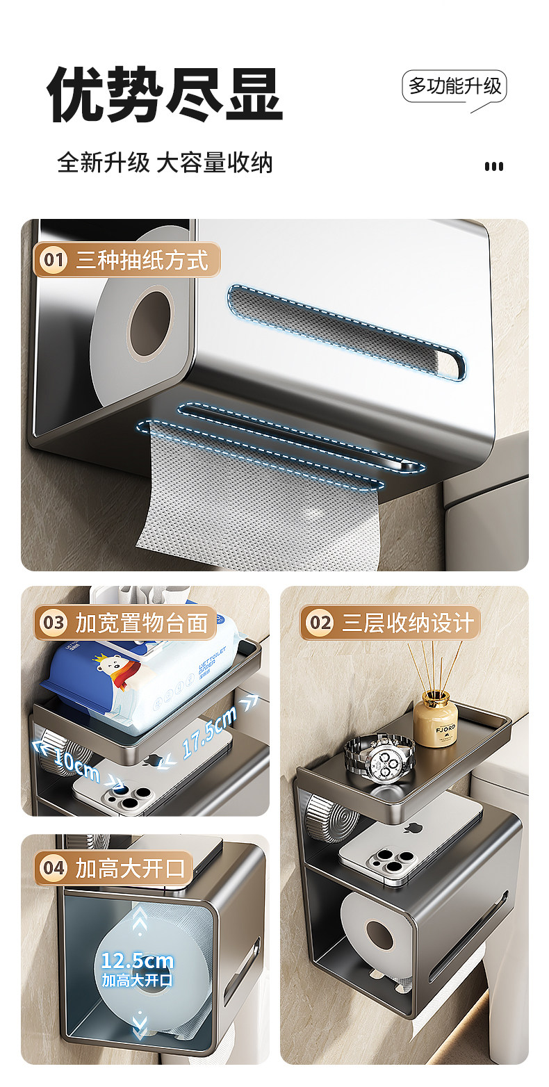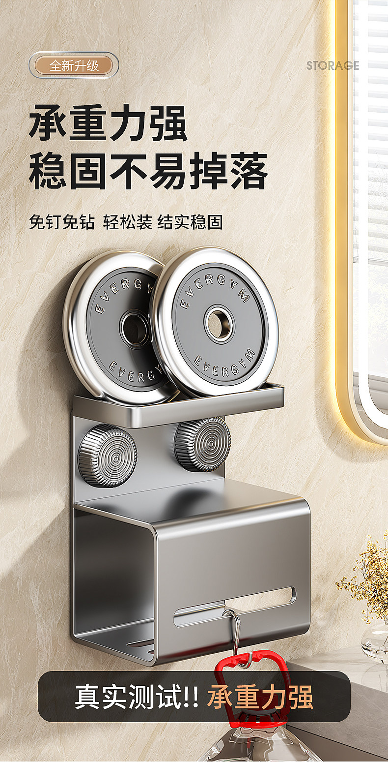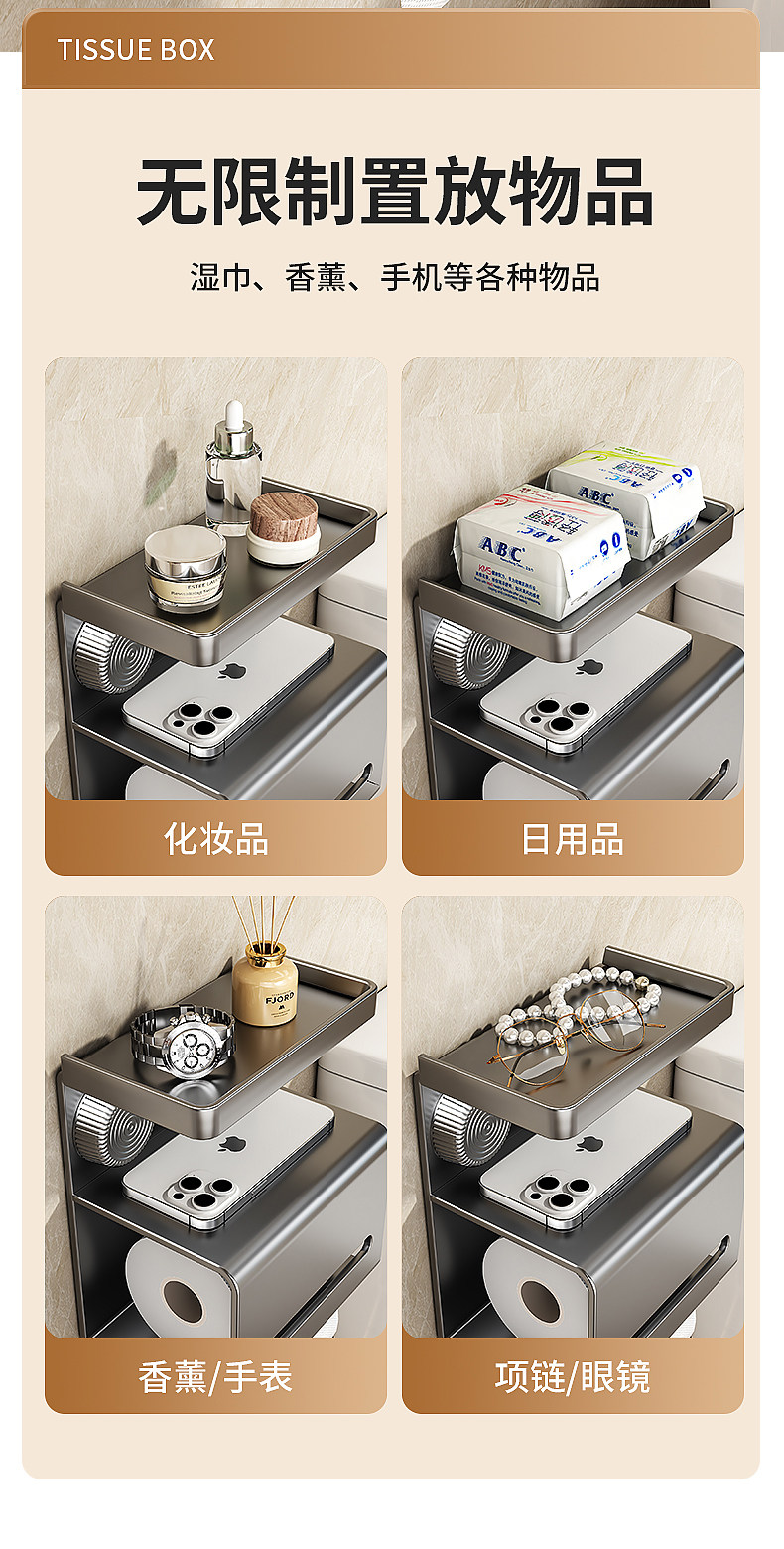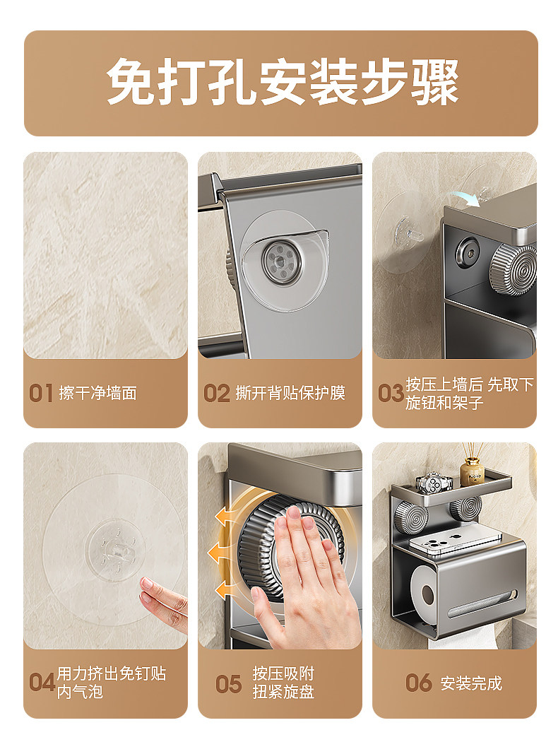 Bathroom Punch-Free Tissue Box Toilet Wall-Mounted Suction Cup Waterproof Tissue Box Roll Paper Storage Rack