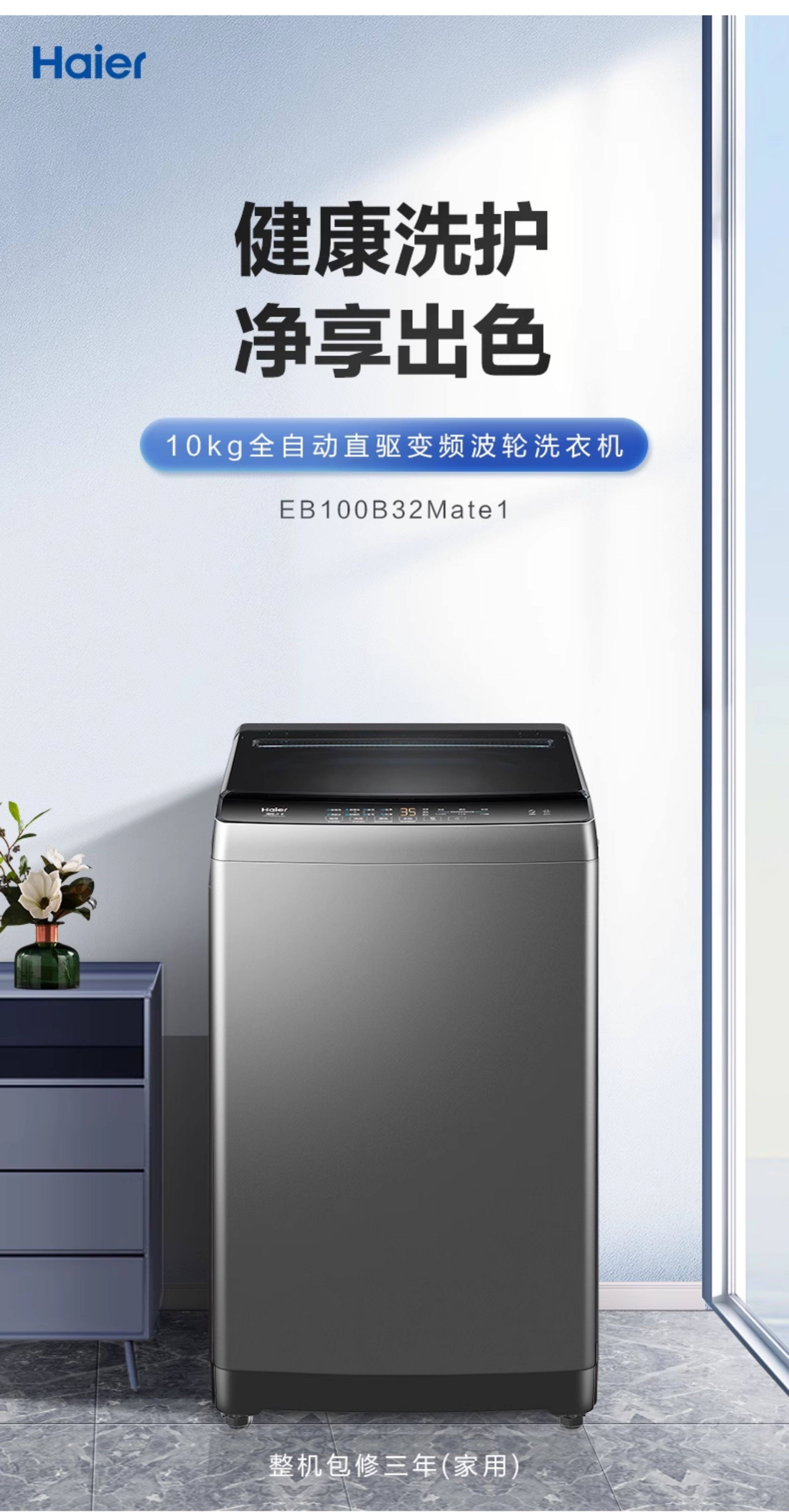 Haier Washing Machine for Home Use, Fully Automatic, 10kg Pulsator Washing and Drying B32 Official Flagship Store