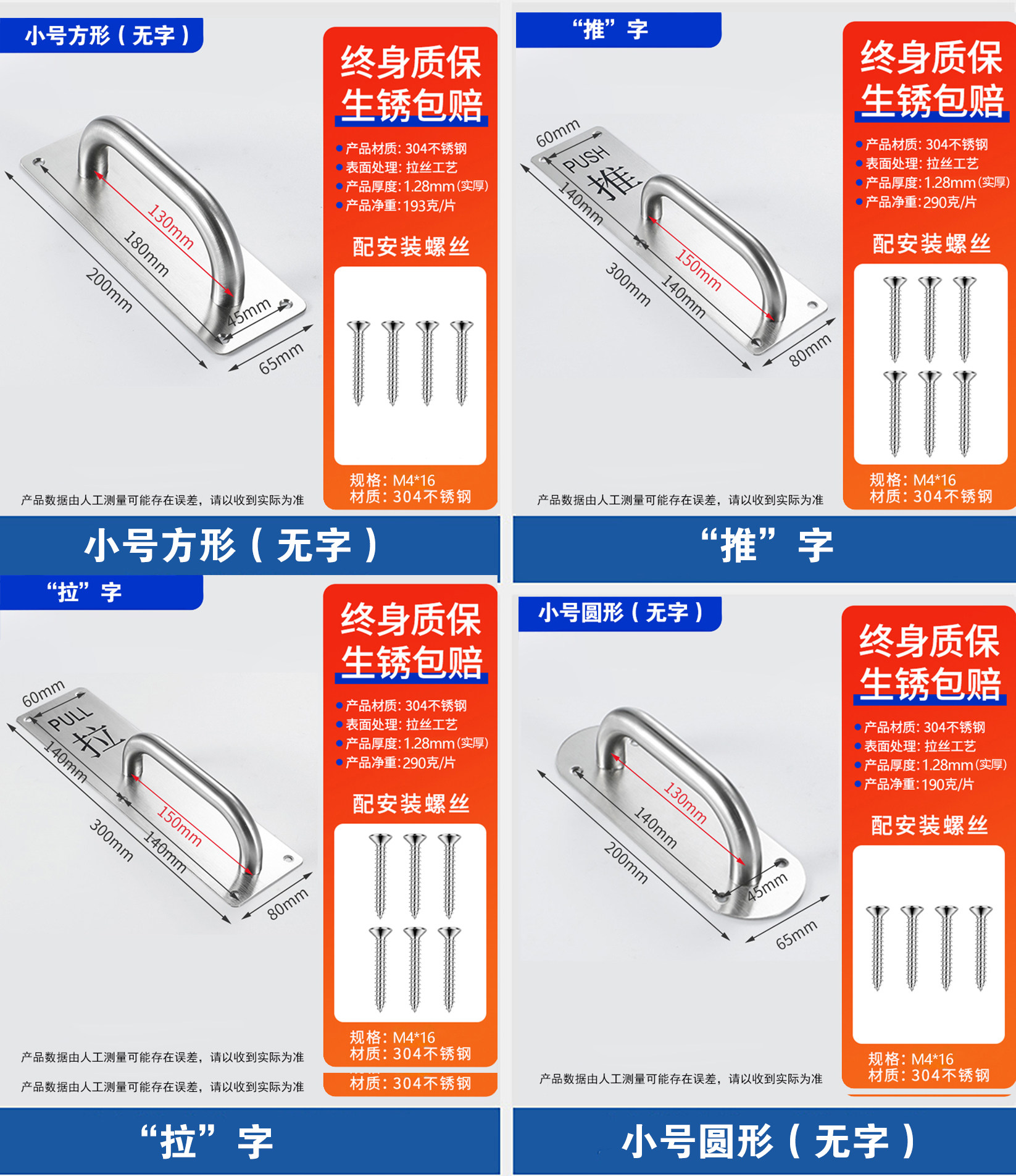 | Color Classification | â Only Sell Authentic 304 Stainless SteelâDeformation/Rust Compensation Guaranteedâ ,304 Stainless Steelâ€Small Square (No Words),304 Stainless Steelâ€Large Square (No Words),304 Stainless Steelâ€Small Round Shape (No Words),304 Stainless Steel †Large Round Shape (No Words),304 Stainless Steelâ€"Pull" Word,304 Stainless Steelâ€"Push" Word,304 Stainless Steelâ€"Push" Word Without Handle |