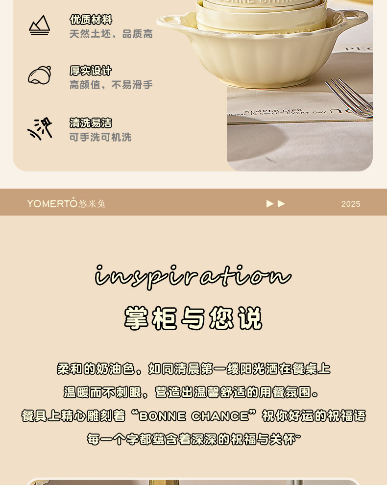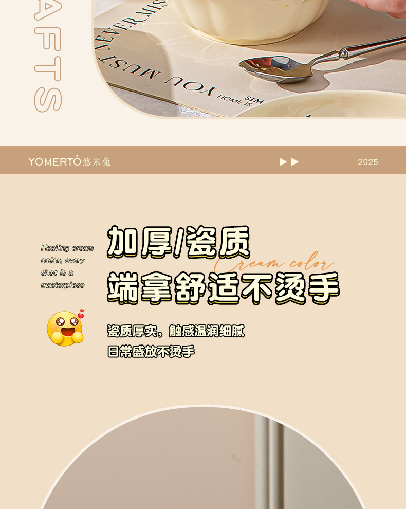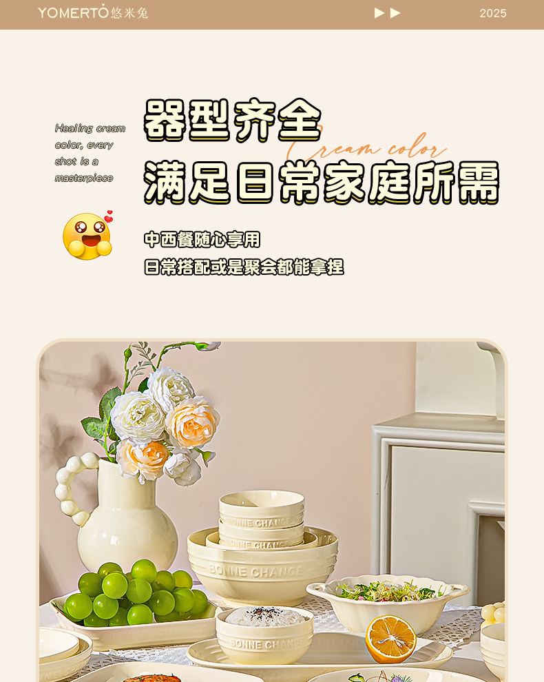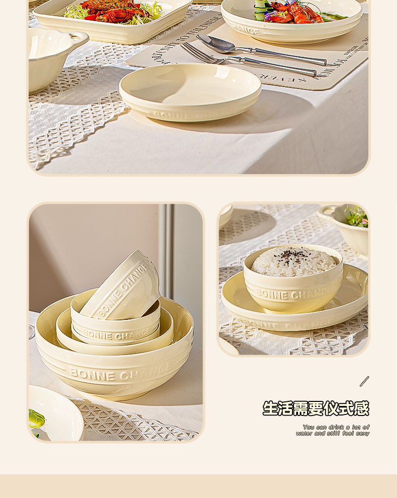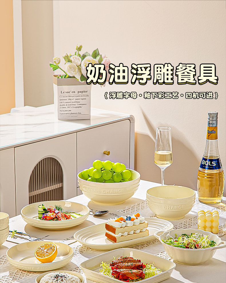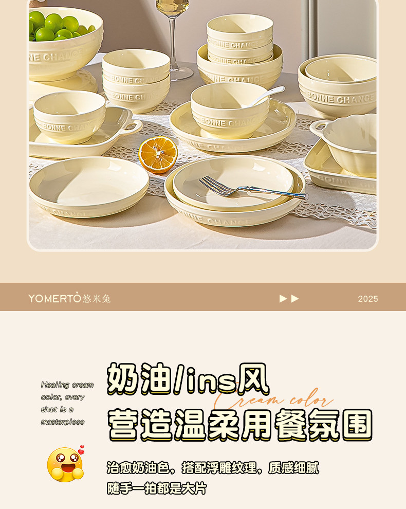 Cream-Style Tableware Set Bowls for Home Use 2026 New High-Value Bowls, Plates, and Chopsticks Housewarming Bowl and Plate Set Household Tableware