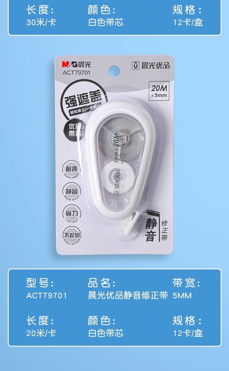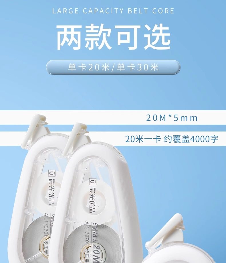 Morning Light Silent and Durable Correction Tape for Students, Large Capacity, Economical Pack, 30m, Premium Quality, Japanese Style, High Aesthetic Correction Tape, Strong Coverage, Special Correction Tape for Elementary and Middle School Students