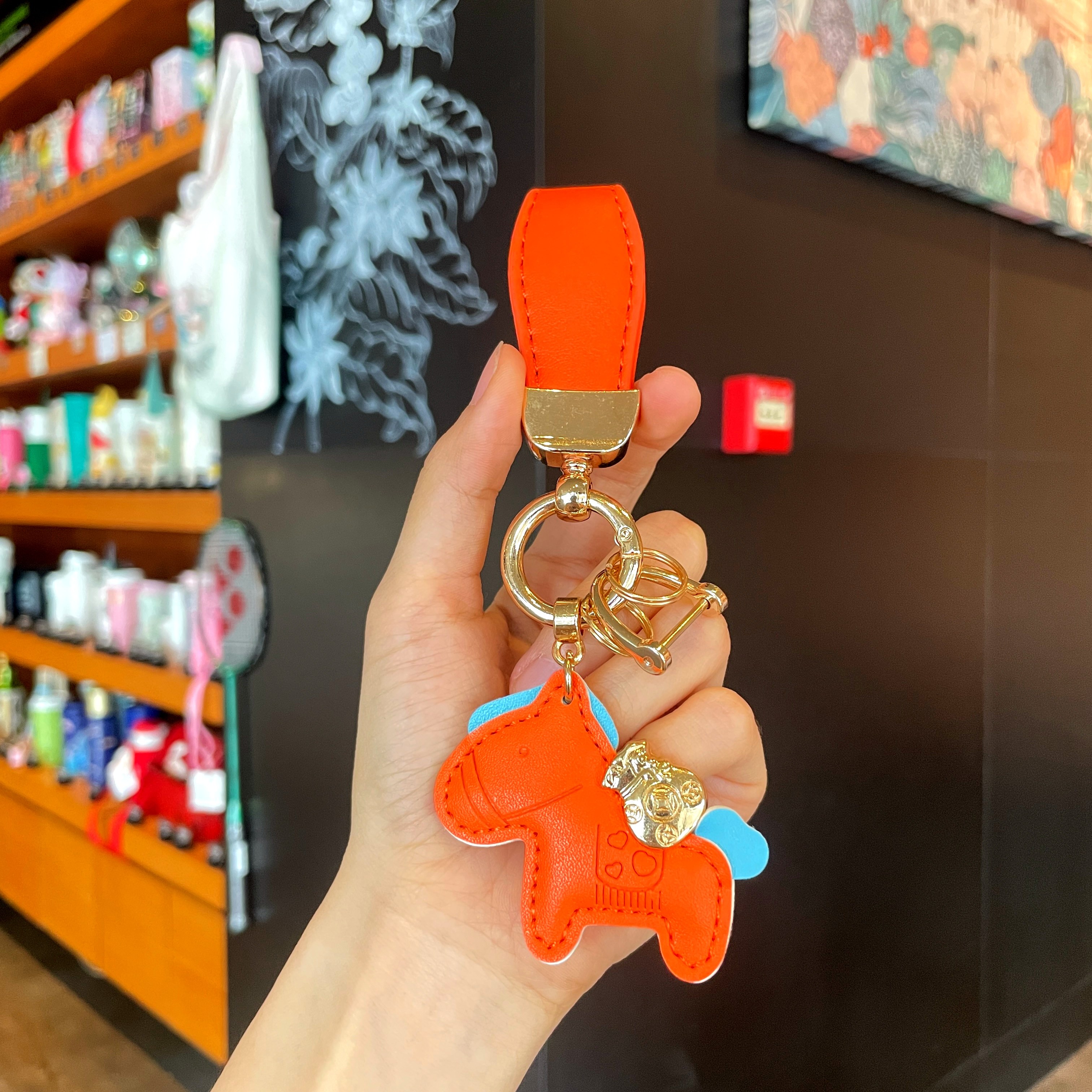 Creative Instant Wealth Keychain Pendant Car Keychain Wrist Strap Cartoon Leather Pony Bag Pendant Gift