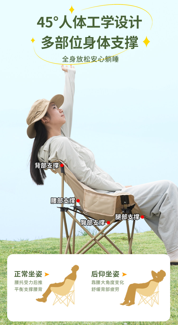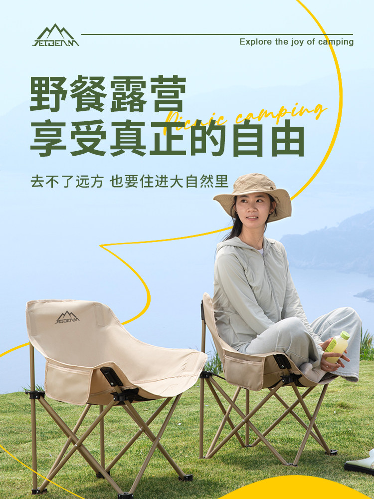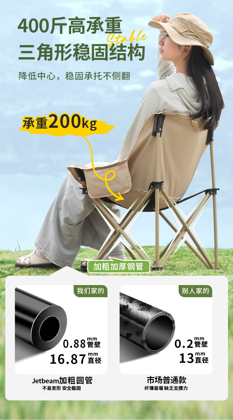 Jetbeam Camping Chair Outdoor Folding Moon Chair Portable Fishing Stool Beach Chair Picnic Table Chair