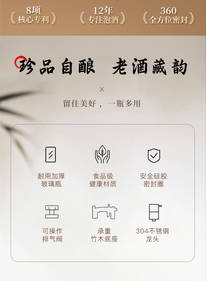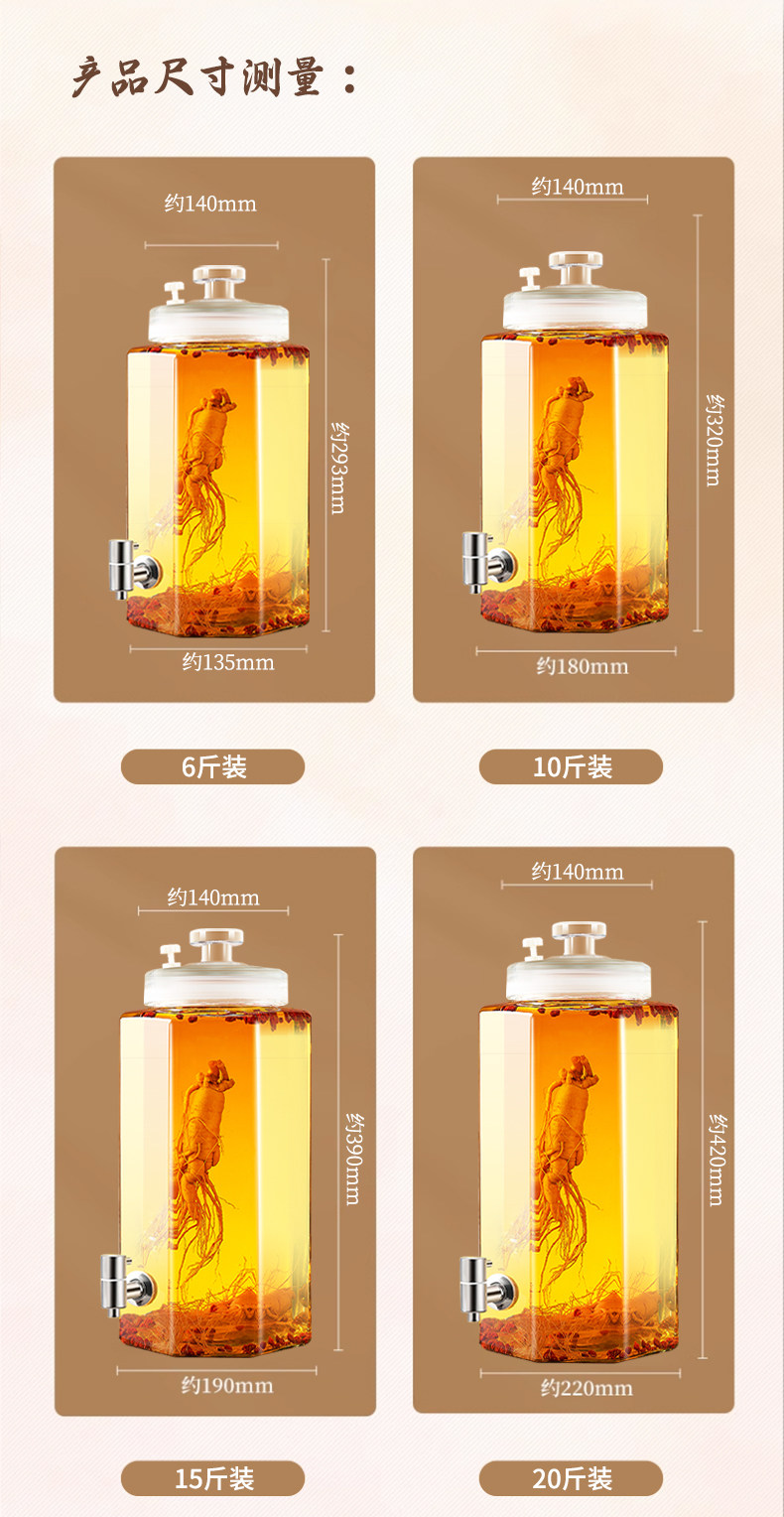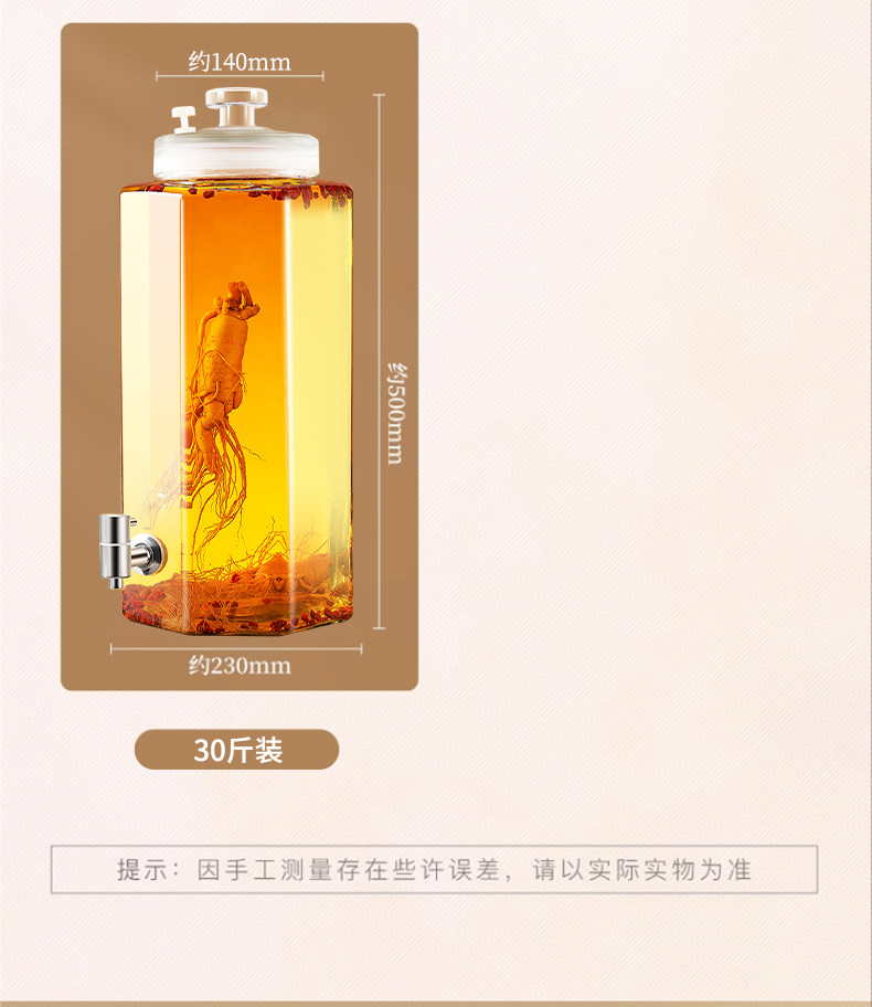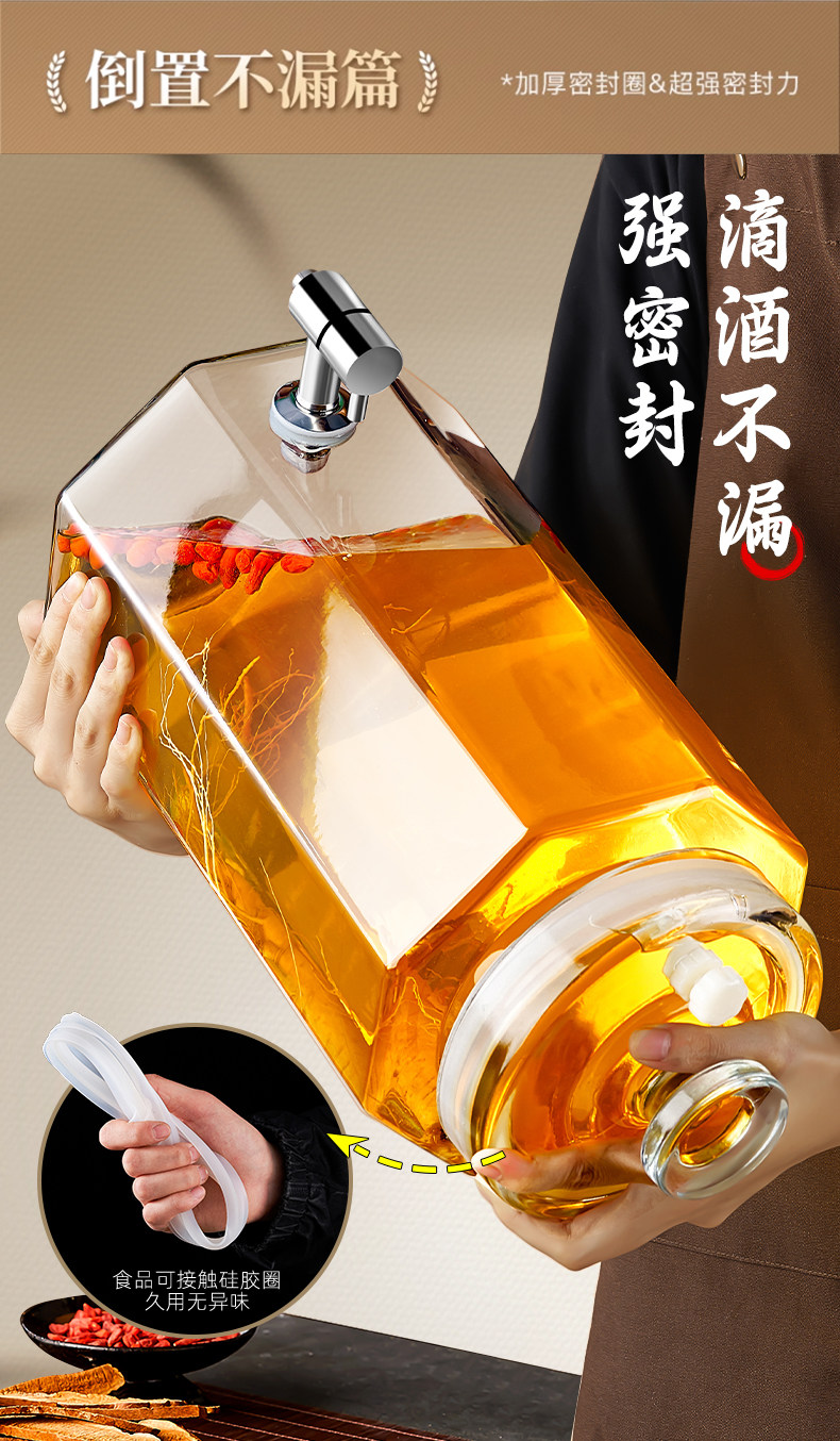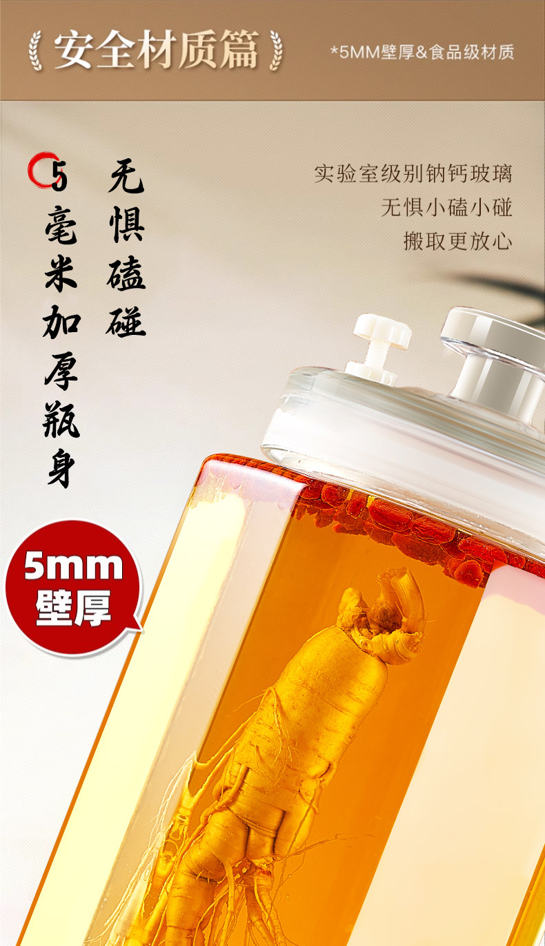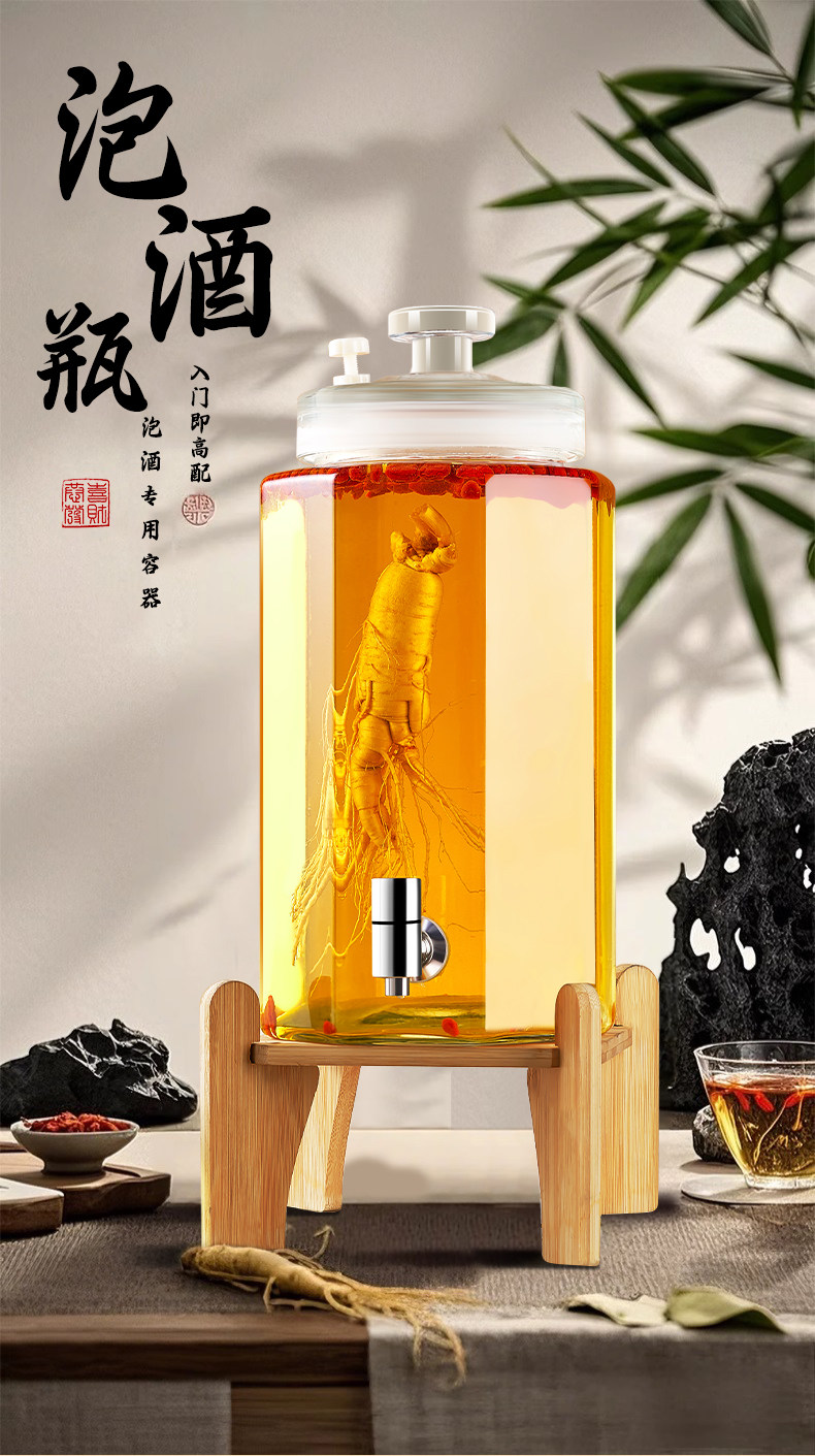 Special Wine Bottle for Soaking in Alcohol, Glass Bottle Container, High-End Thickened Sealed Wine Jar, Long-Term Wine Storage, Ginseng Medicinal Wine Jar, Wine Barrel