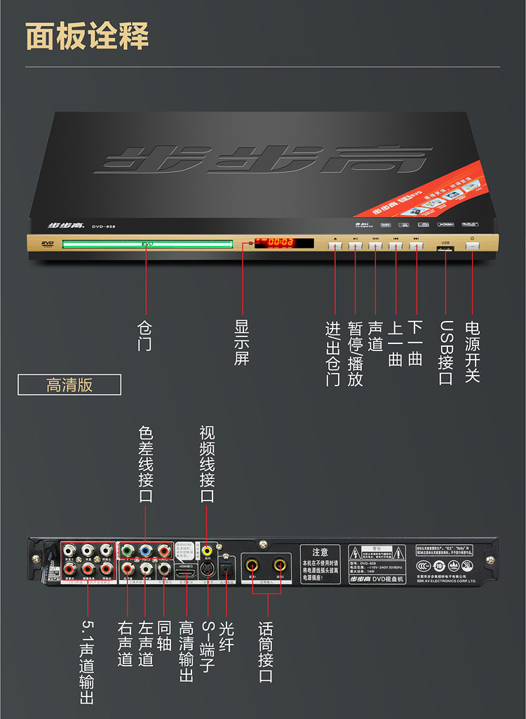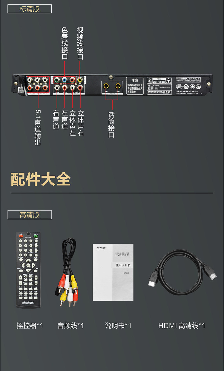 New Bbk Dvd Player High-Definition Evd Disc Player Home Vcd Disc Player Cd Player Mp3 Music