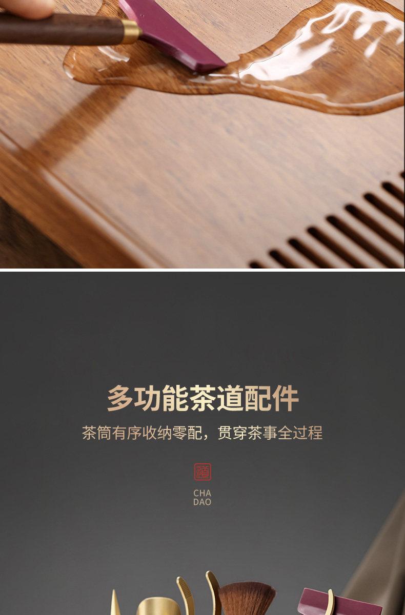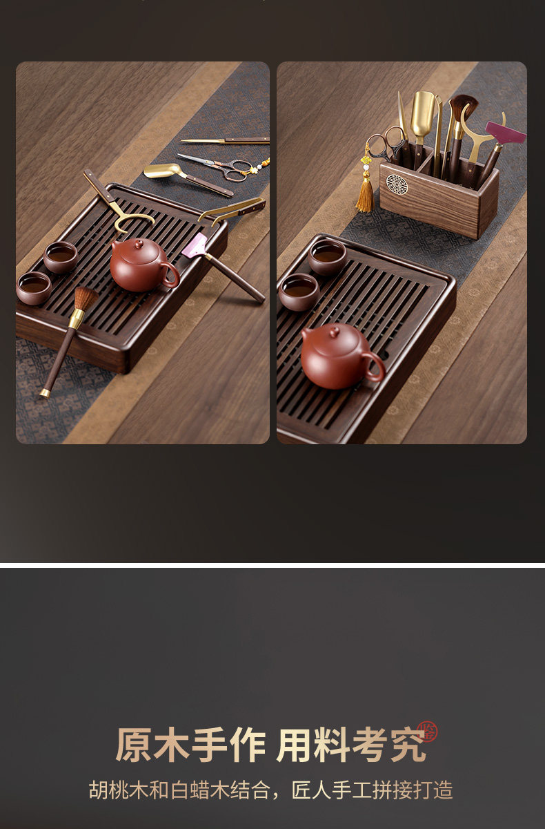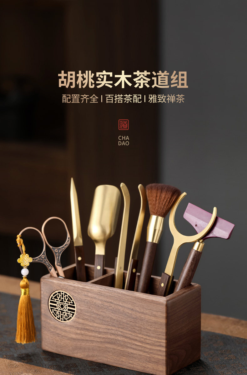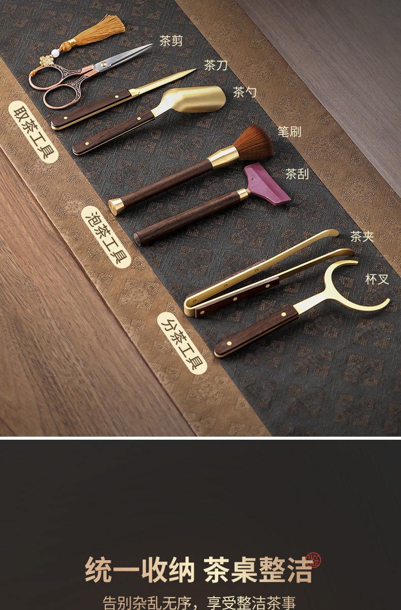 Tea Set Accessories, Six-Piece Tea Ceremony Supplies Set, High-End Tea Knife, Tea Scissors, Solid Wood Tea Table, Special Set for Tea Brewing