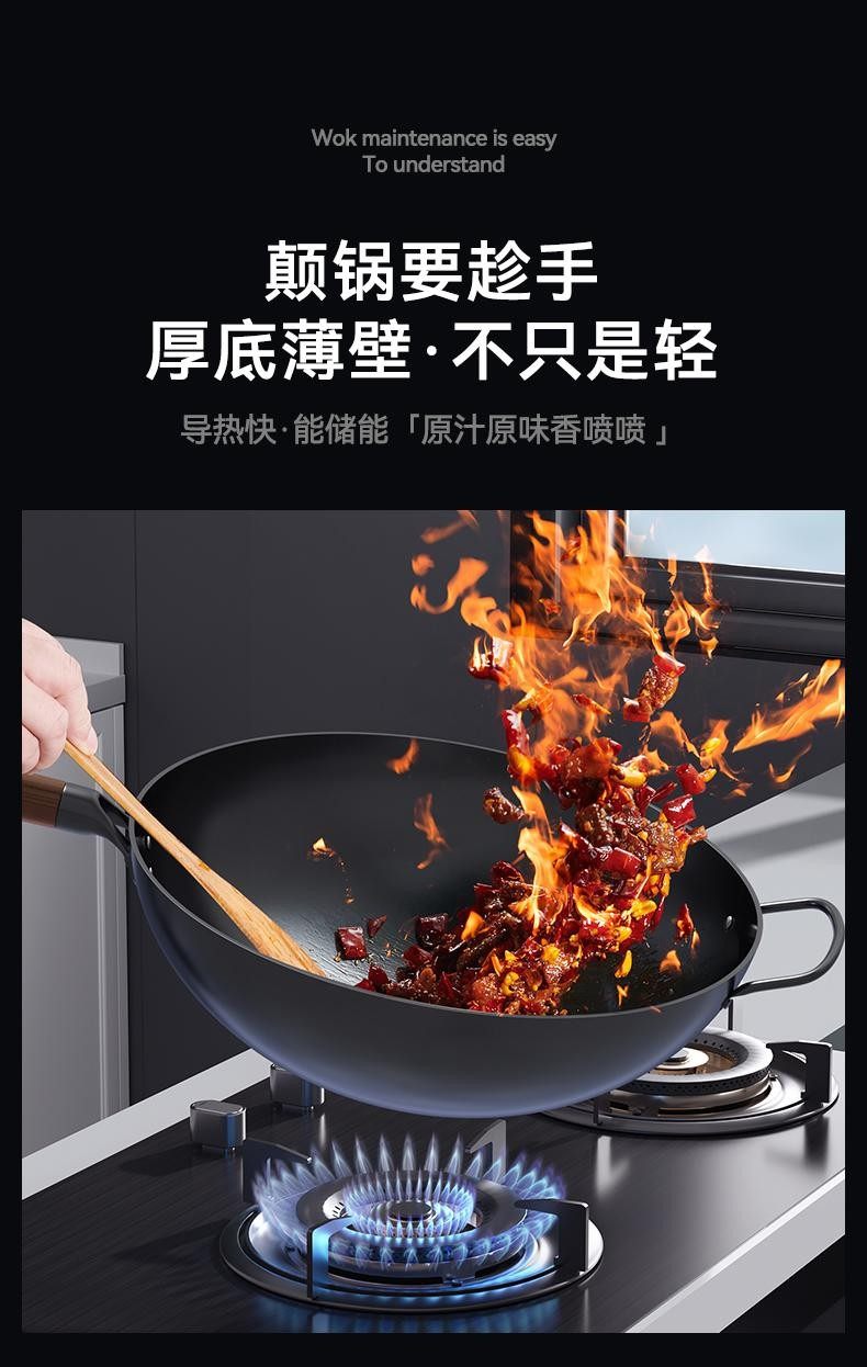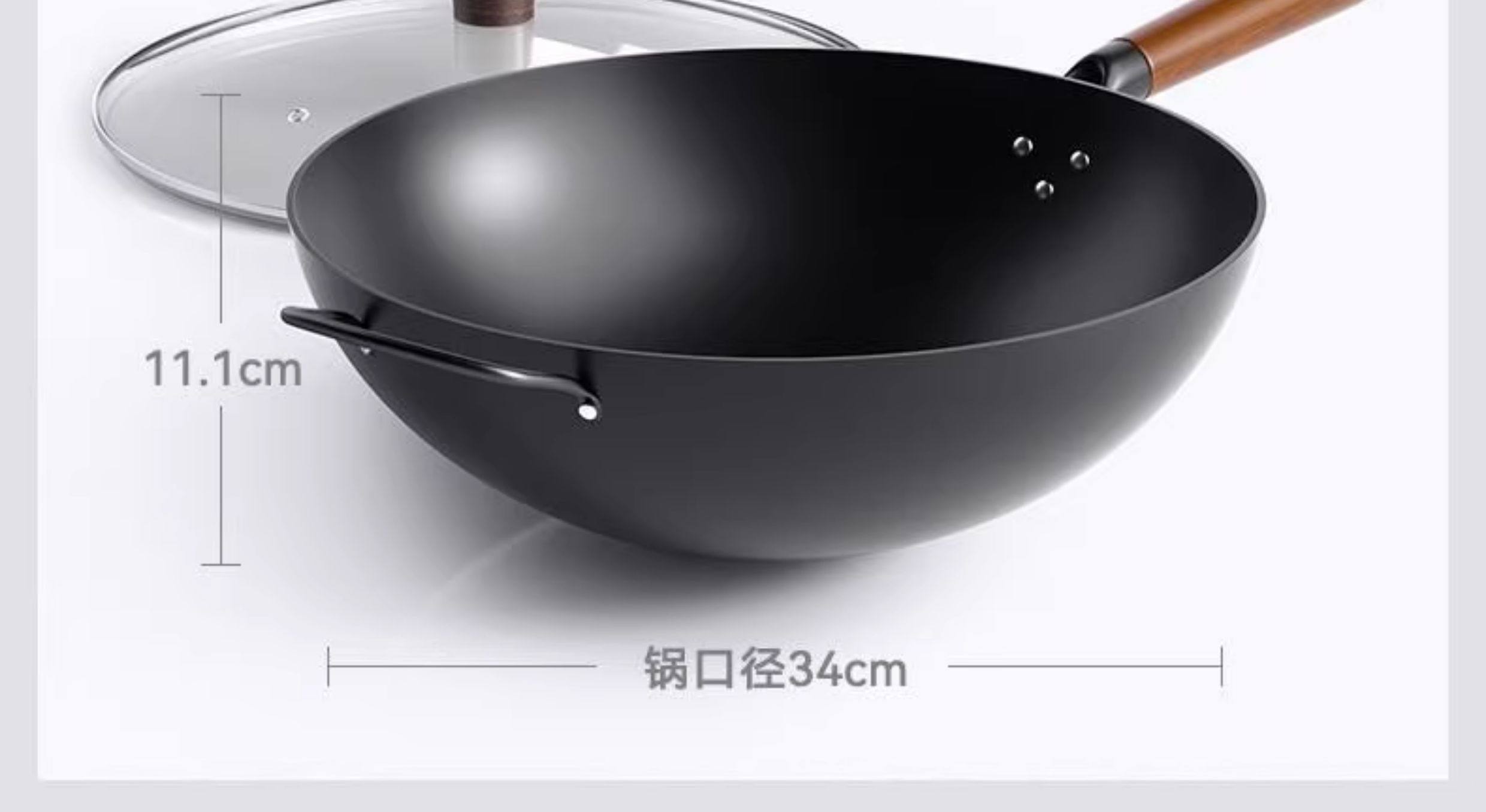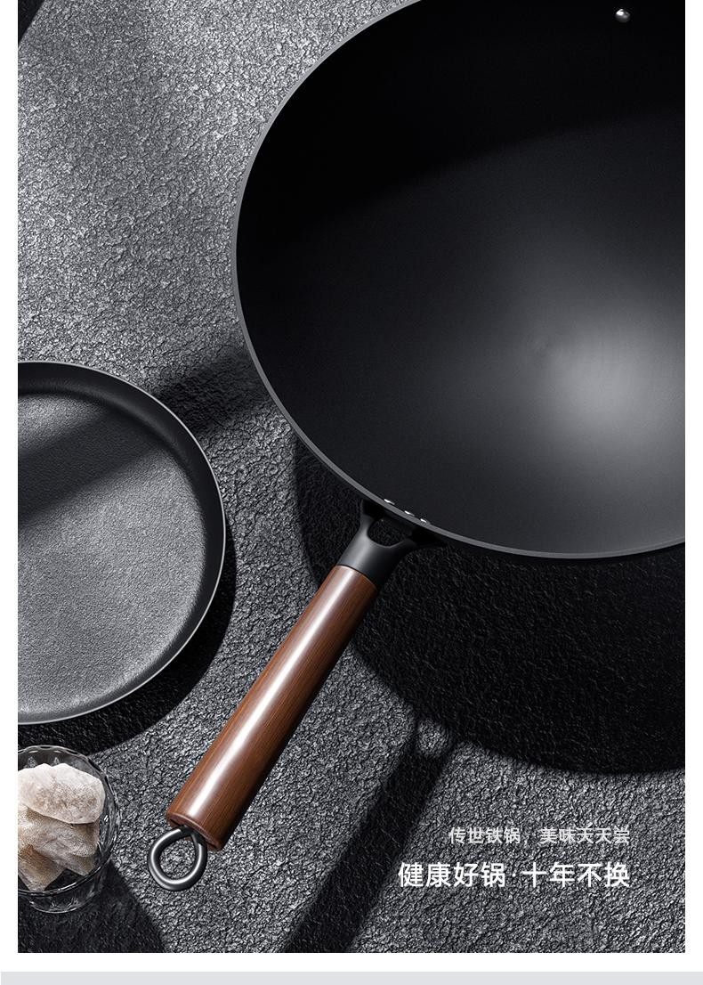 Fengdi Traditional Old-Fashioned Iron Pot for Home Use, Non-Stick, No Coating, Deepened Wok, Flat Bottom, Round Bottom, Suitable for Gas Stoves and Induction Cookers