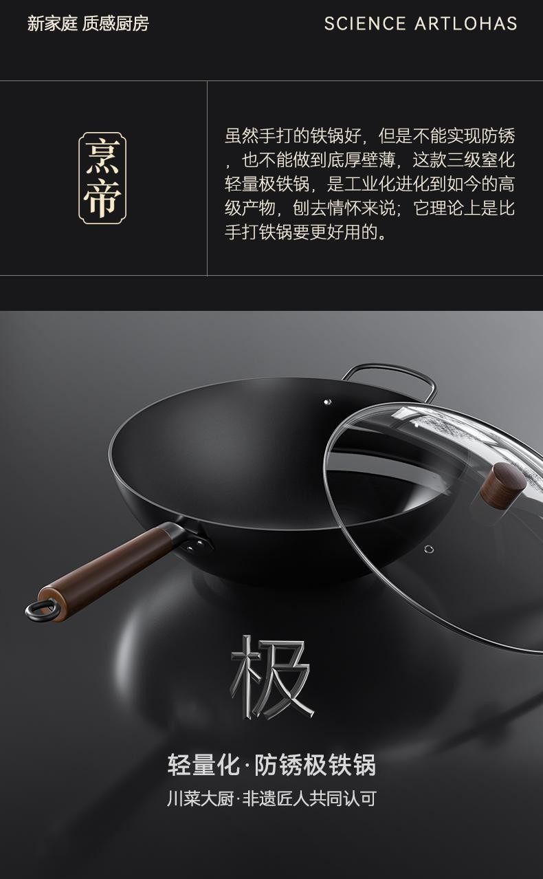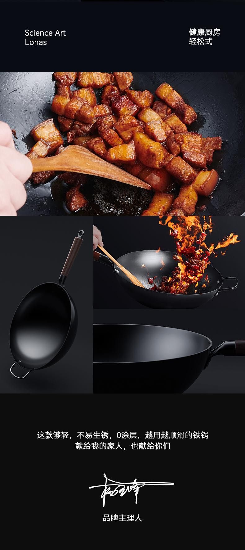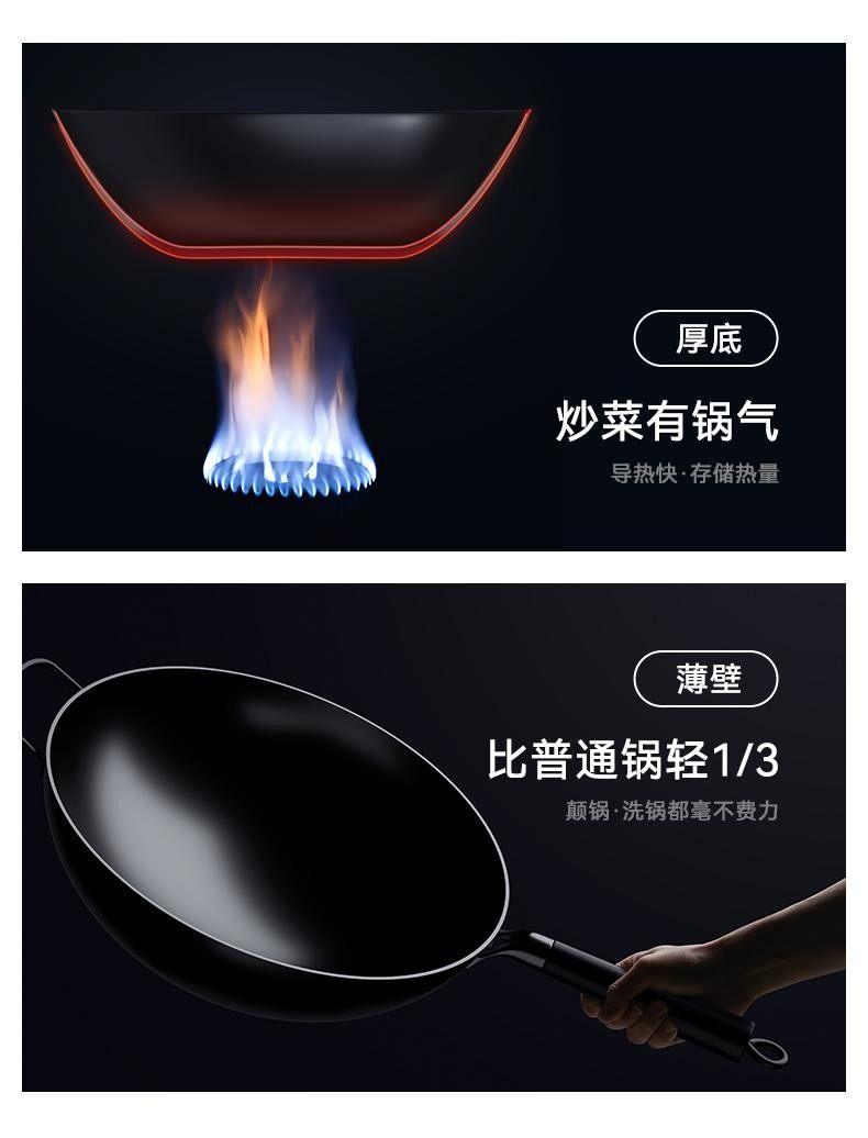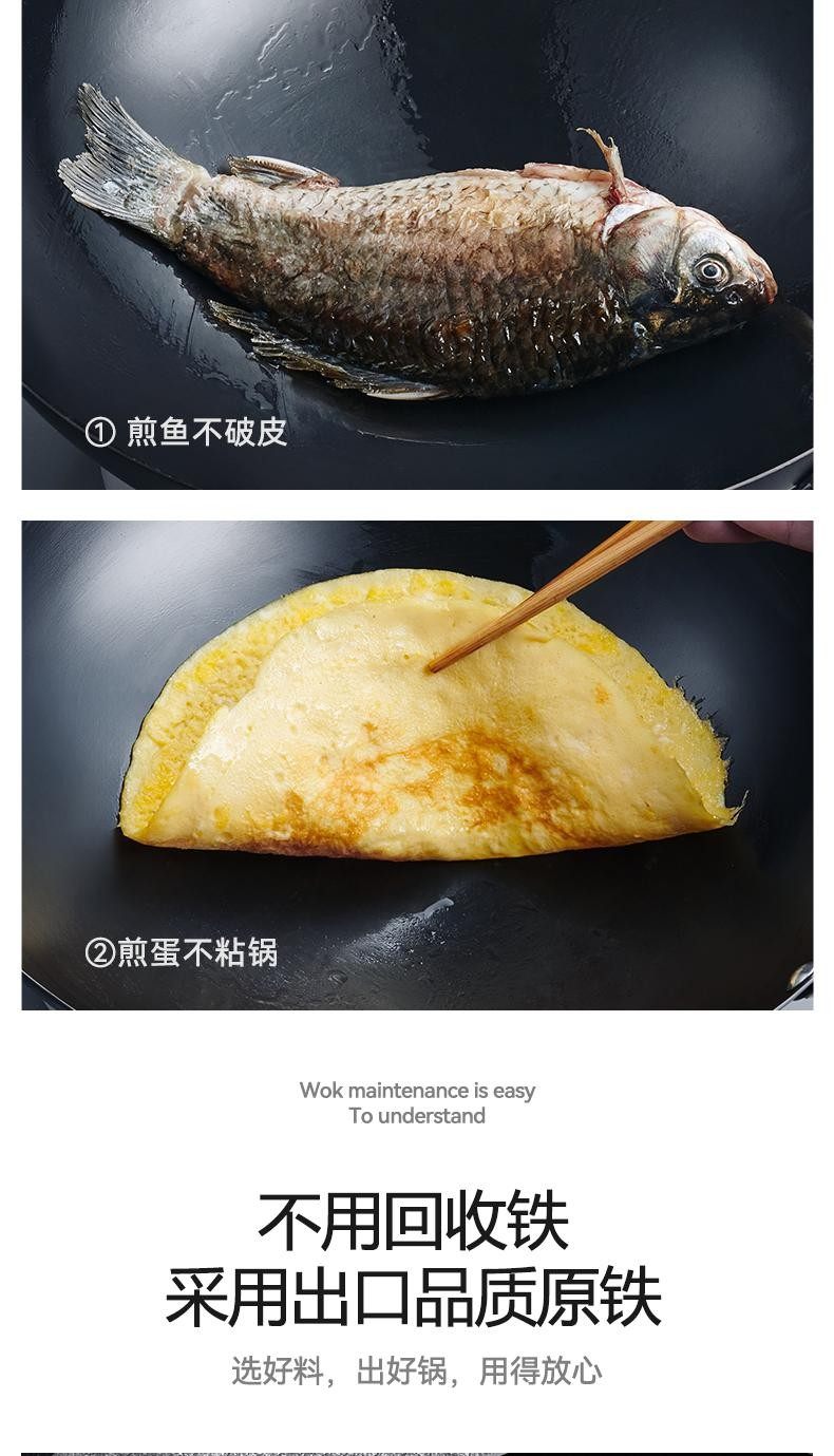 Fengdi Traditional Old-Fashioned Iron Pot for Home Use, Non-Stick, No Coating, Deepened Wok, Flat Bottom, Round Bottom, Suitable for Gas Stoves and Induction Cookers