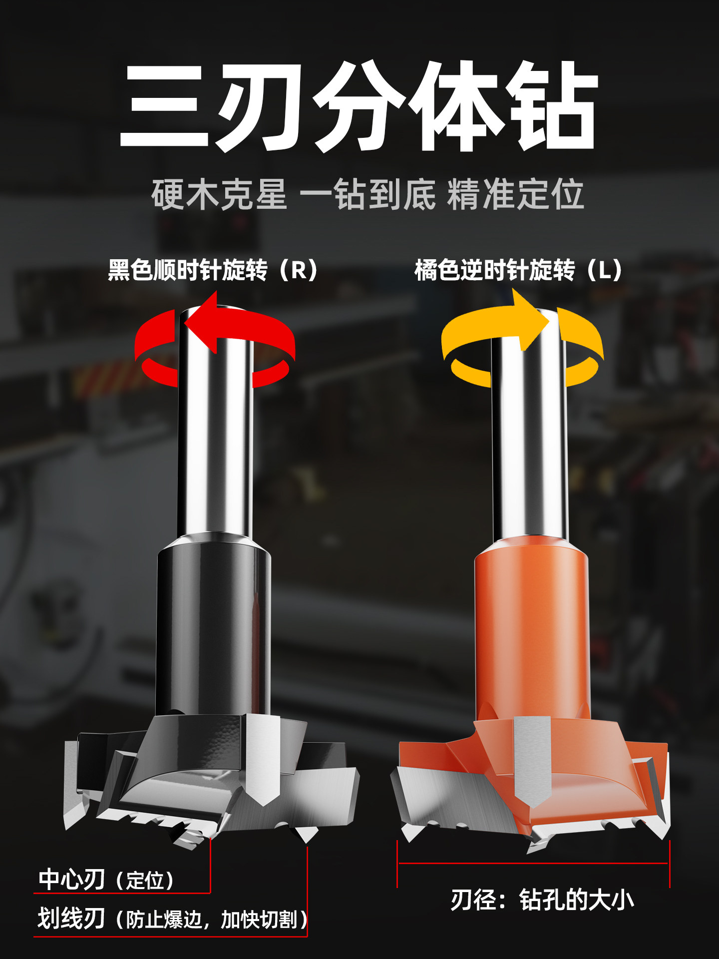 Lansheng Three-Edged Woodworking Special Hole Opener Hinge Wooden Door Wardrobe Window Hinge Drill 35 Hole Expander Split Drill Bit