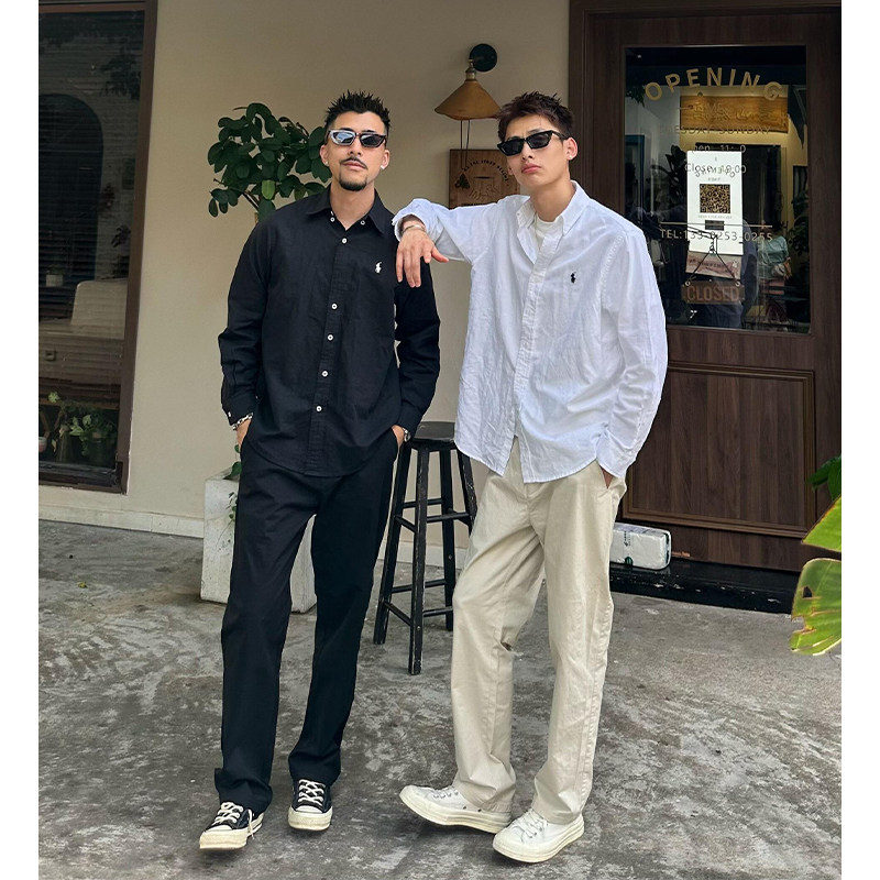 Black Ramie Sun Protection Shirt for Men, Long-Sleeved Summer Old Money Style Relaxed Casual Shirt, Breathable Thin Jacket