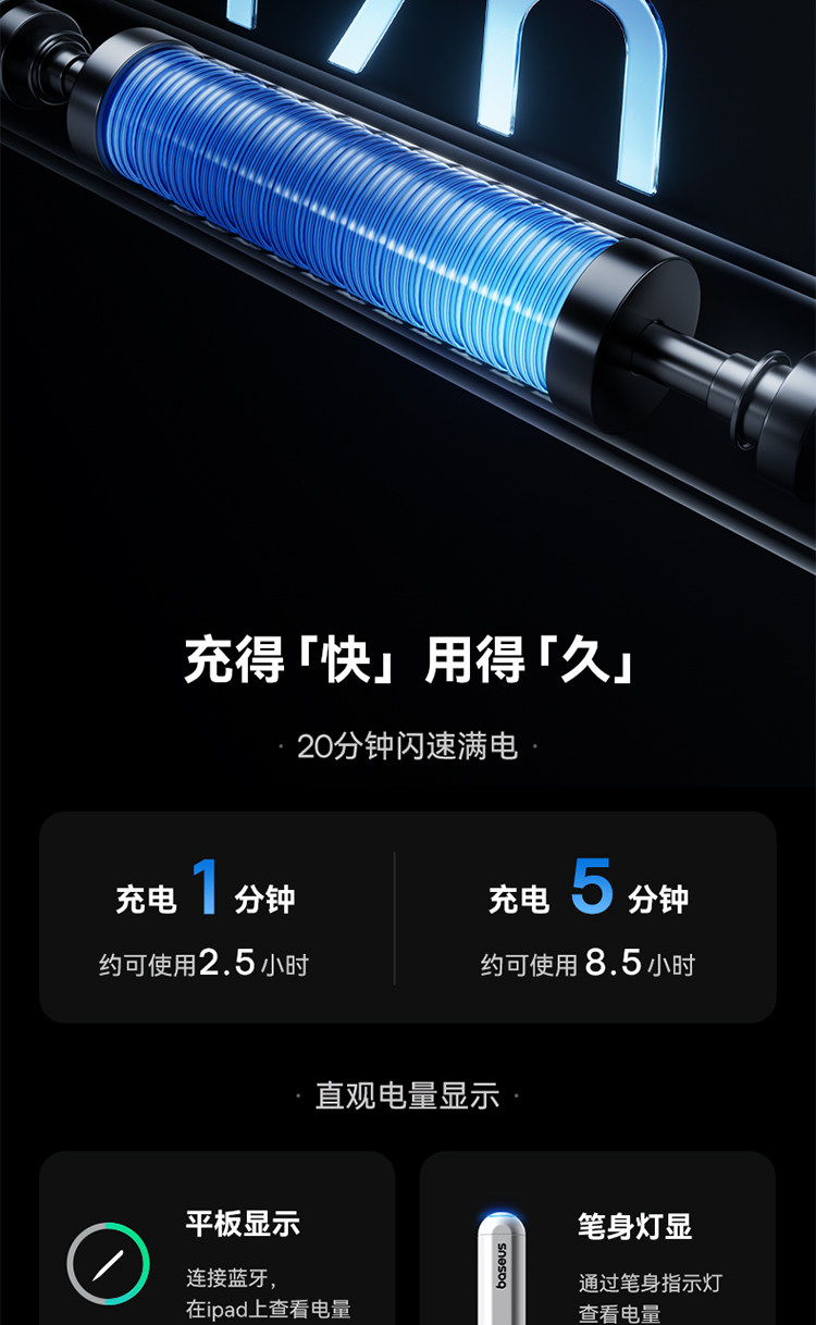 [2026 New Upgrade] Baseus Apple Pencil Capacitive Pen Stylus Compatible with Apple iPad Touch Pen Tablet Touch Screen Pen Ipencil Second Generation Pro/Air7/11 Universal