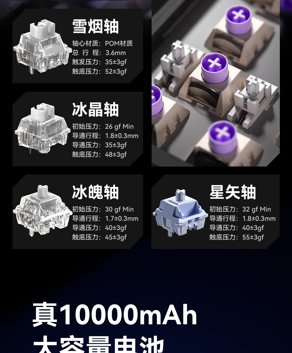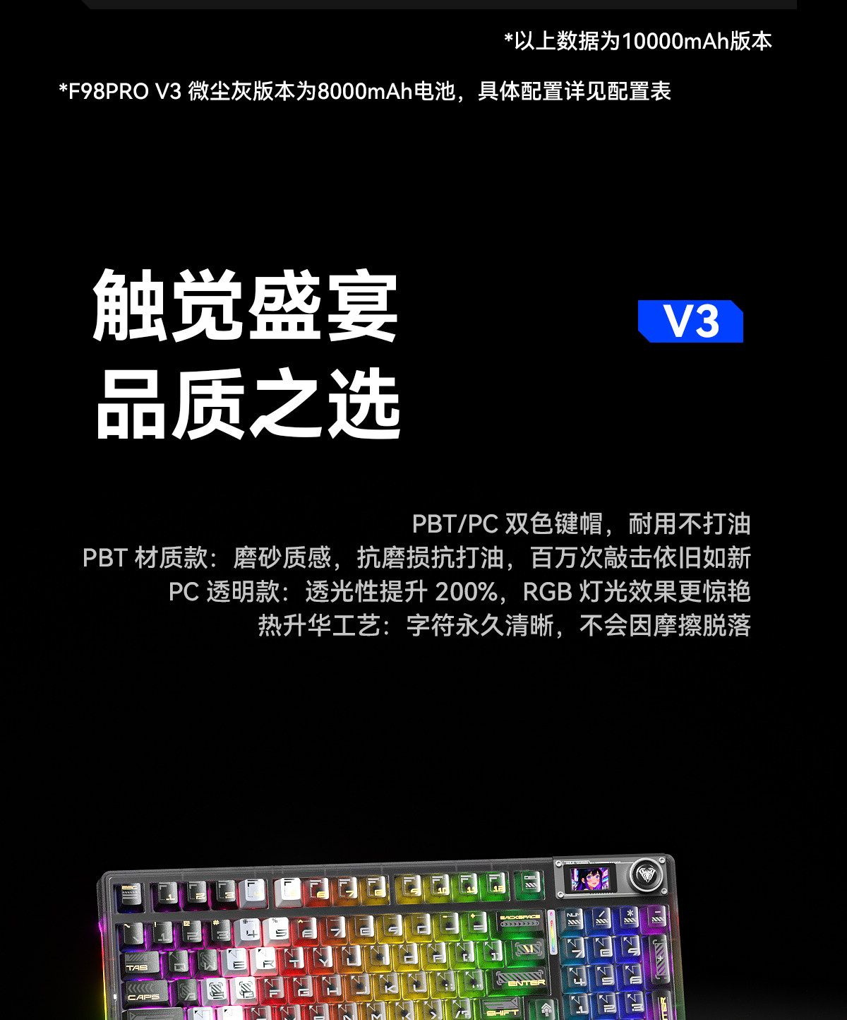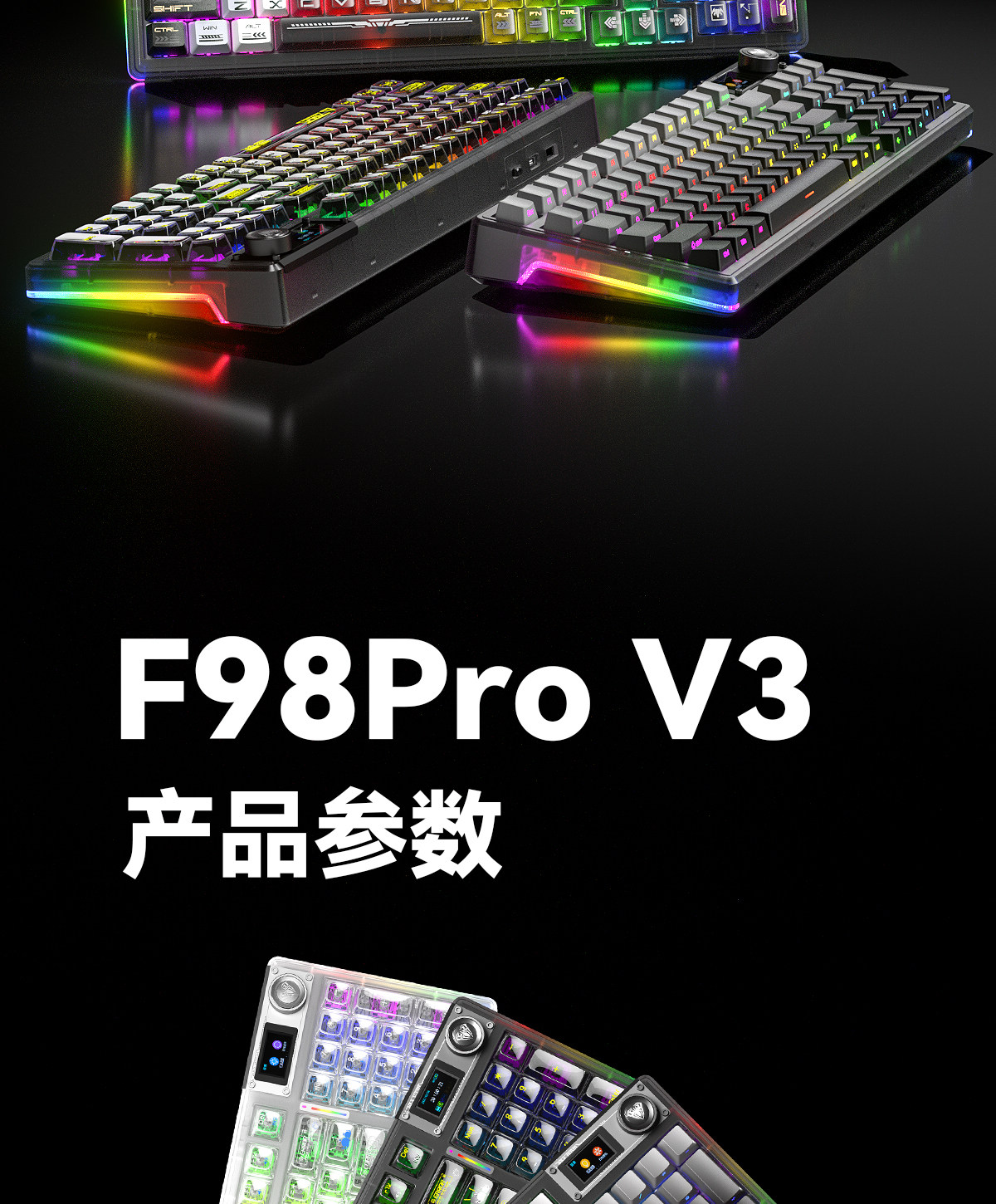 | Color Classification | 【F98Prov3 Micro Dust Gray】- Star Axis (Linear Switch) 8000Mah,【F98Prov3 - White Translucent】Ice Crystal Switch (Linear Switch),【F98Prov3 - White Translucent】Ice Soul Switch (Clicky Switch),【F98Prov3 - Black Translucent】Ice Crystal Switch (Linear Switch),【F98Prov3 - Black Translucent】Ice Soul Switch (Clicky Switch),【F98Prov3 - Iridescent Pink Mist】Snow White Switch,【F98Prov3 - Iridescent Pink Mist】Meteor Ice Cream Switch,【F2098Pro Tech Gray】- Smart Axis (Linear Switch),【F2098Pro Sea Salt Orange】- Smart Axis (Linear Switch),[F98Prov3-White Transparent] 10000 Mah,【F98Pro - Jet Black】Transparent Edition - Ice Crystal Switch (Linear Switch),【F98Pro - Black Translucent】Transparent Version - Ice Soul Switch (Clicky Switch),【F98Pro - Pink Sheer】Transparent Version - Ice Soul Switch (Clicky Switch),【F98Pro - White Translucent】Transparent Version - Ice Soul Switch (Clicky Switch) |